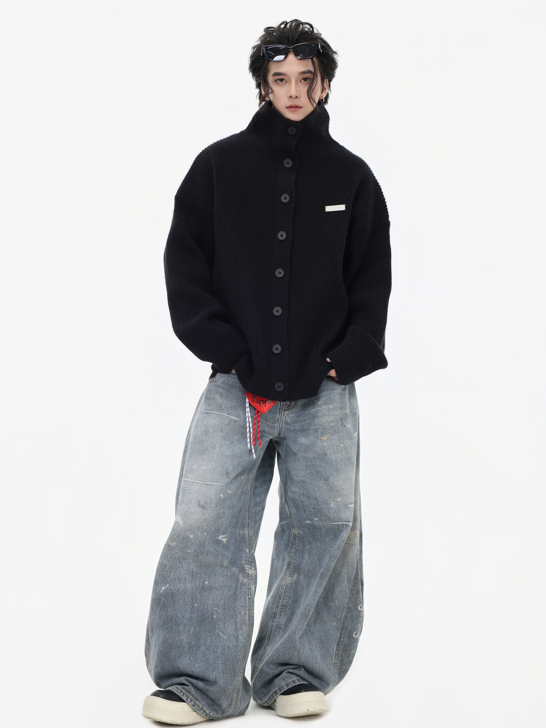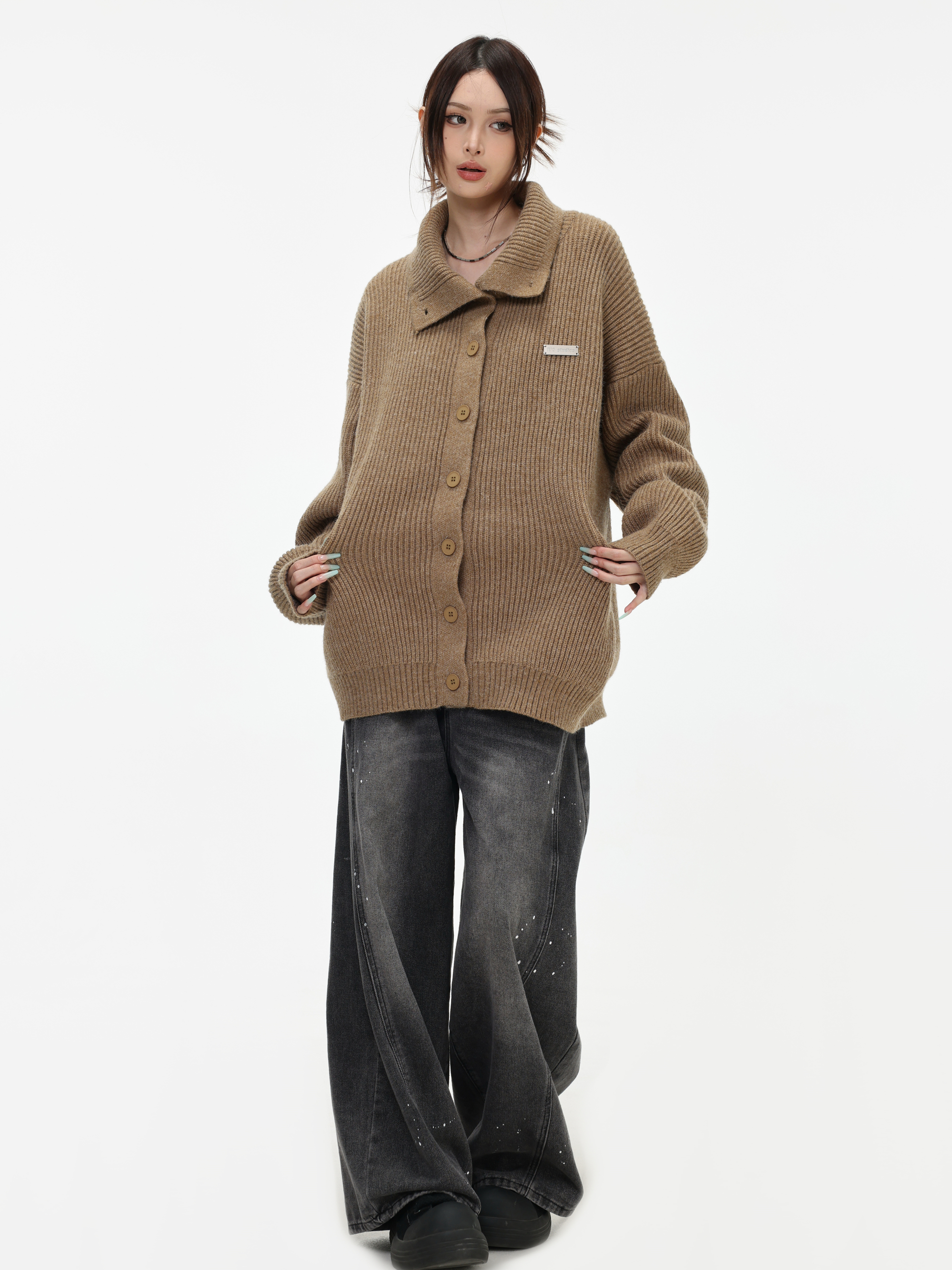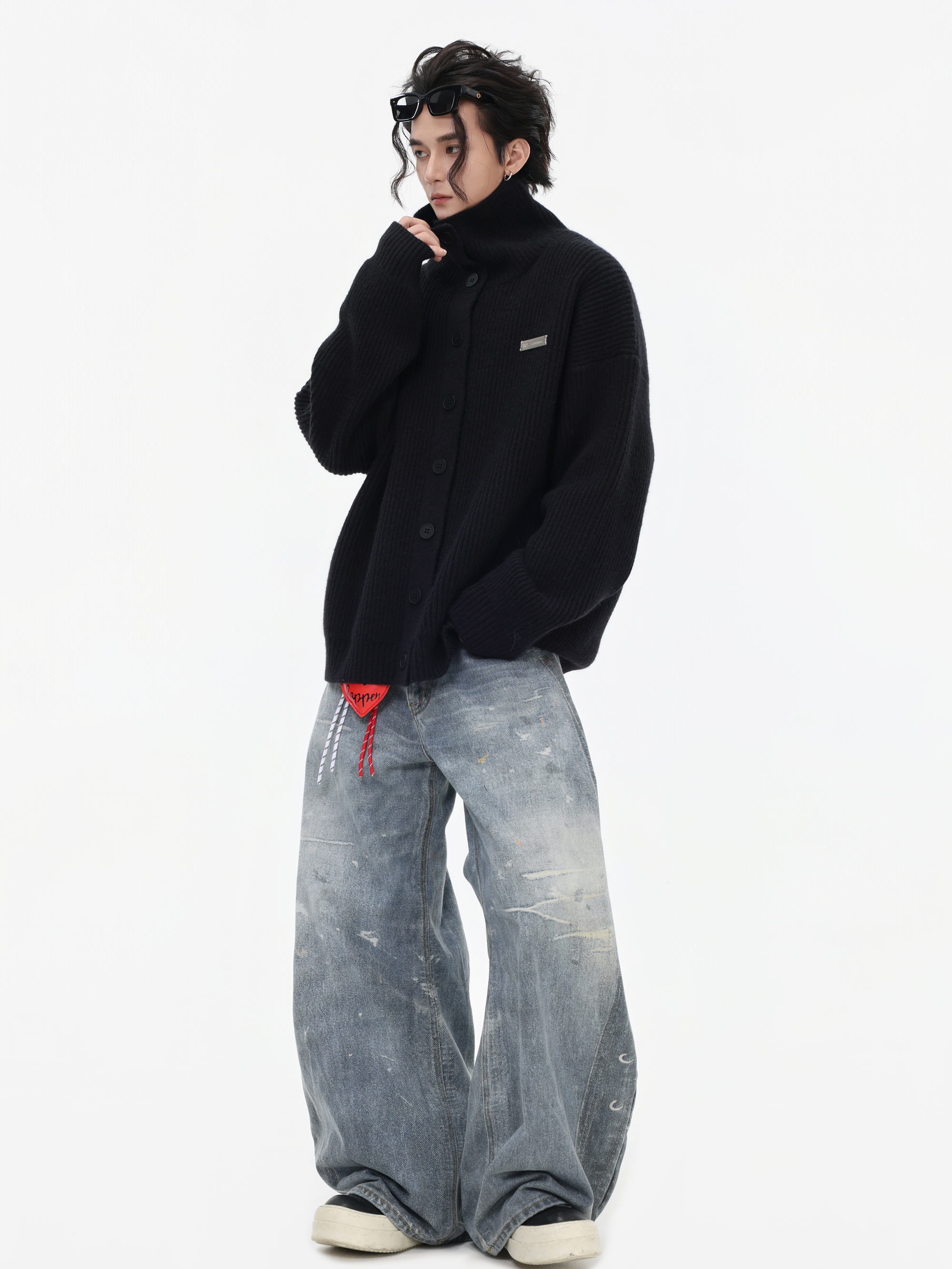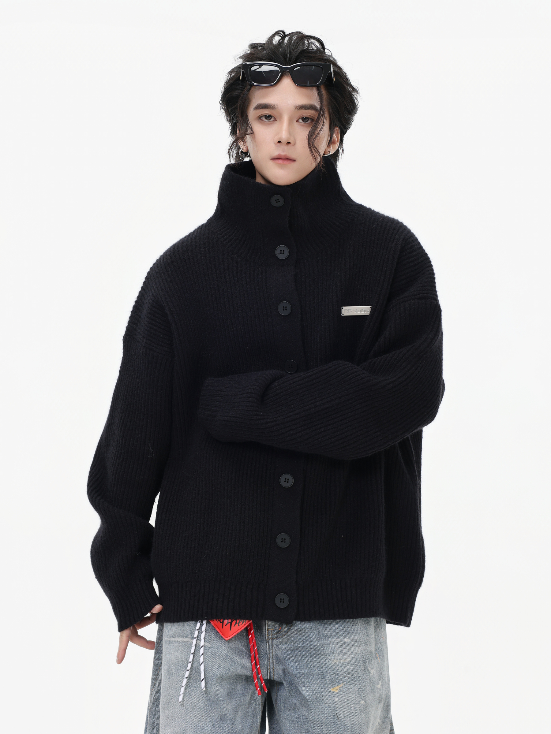 INSstudios 國潮情侶美式「粗棒針織高領毛衣」寬松開衫上衣外套