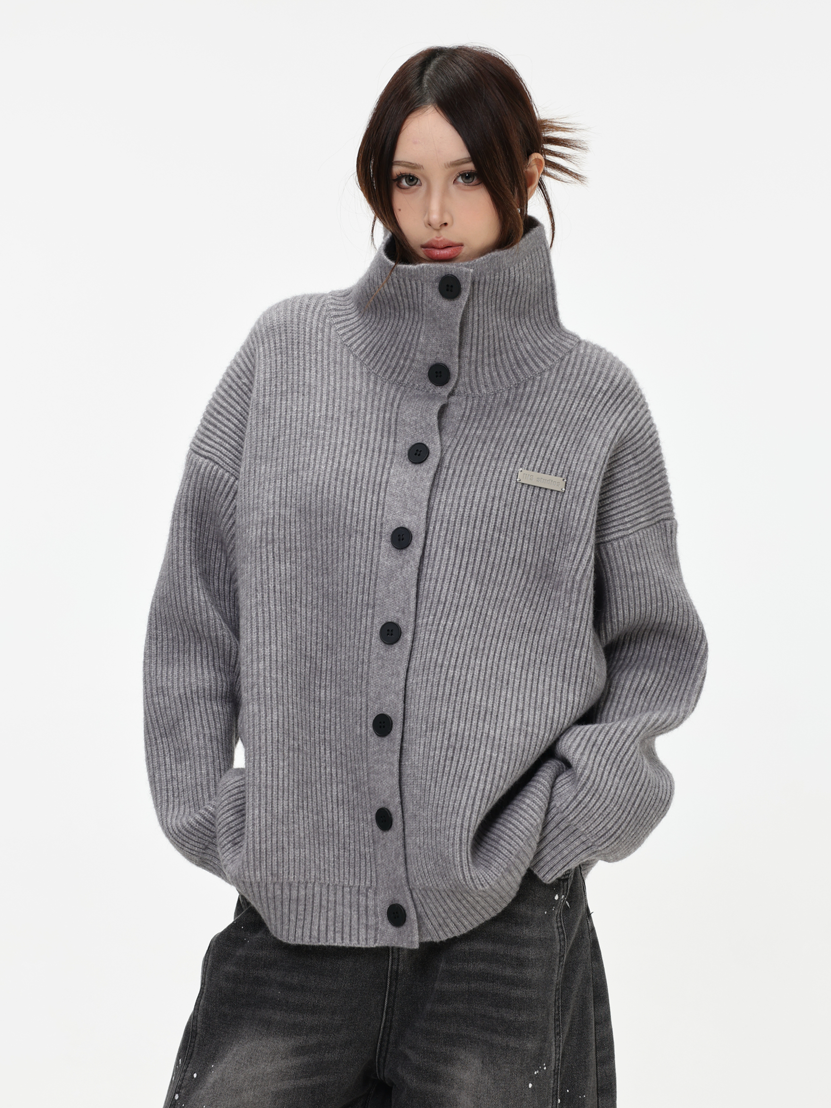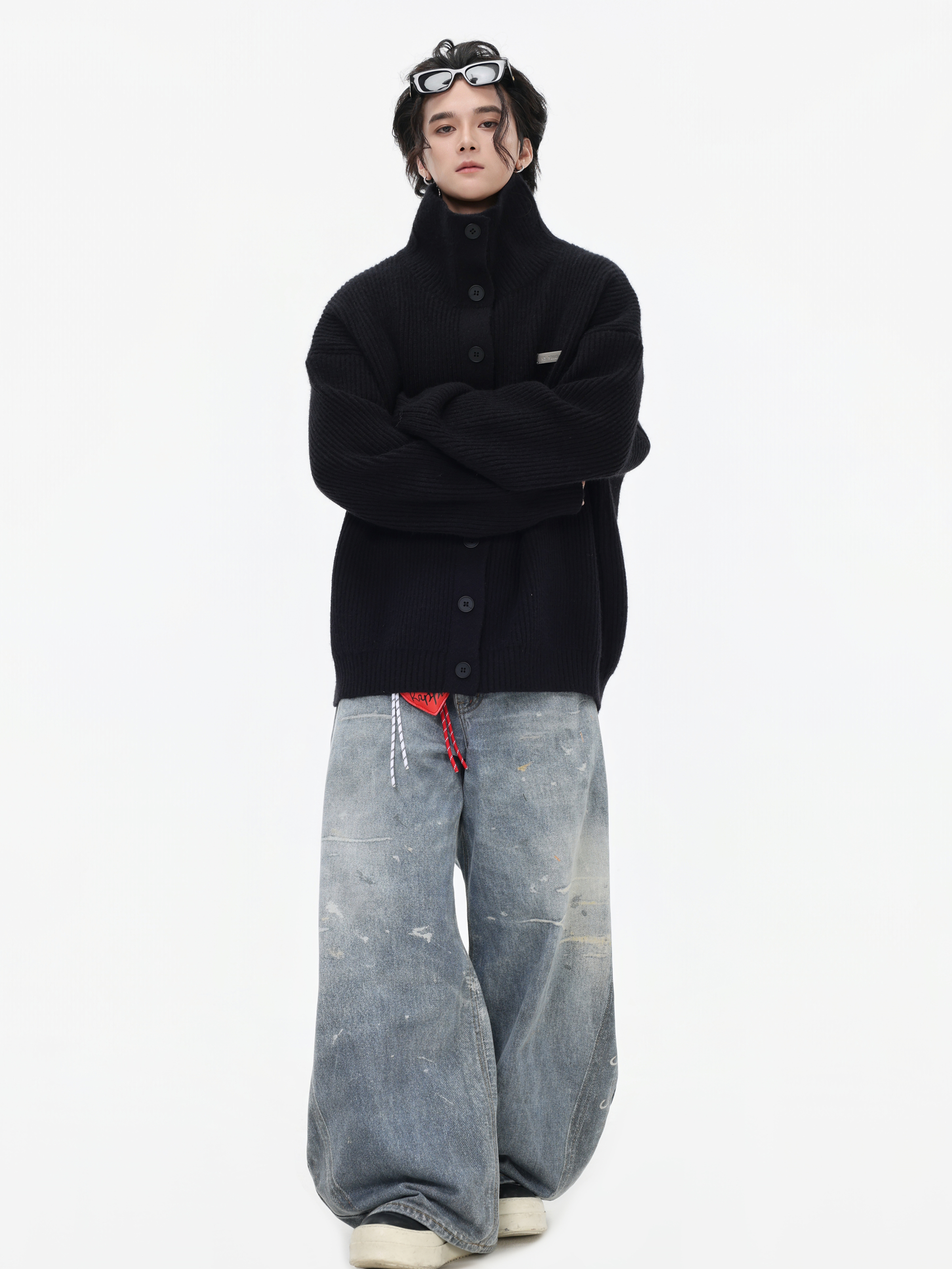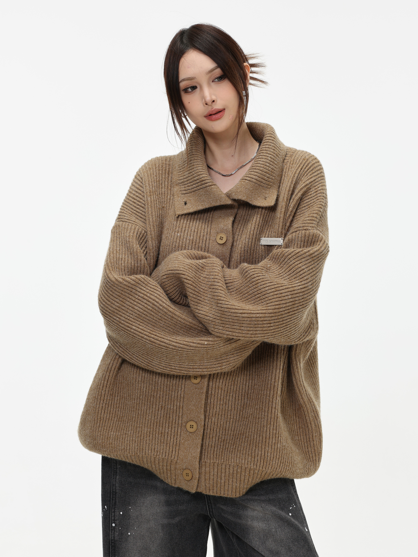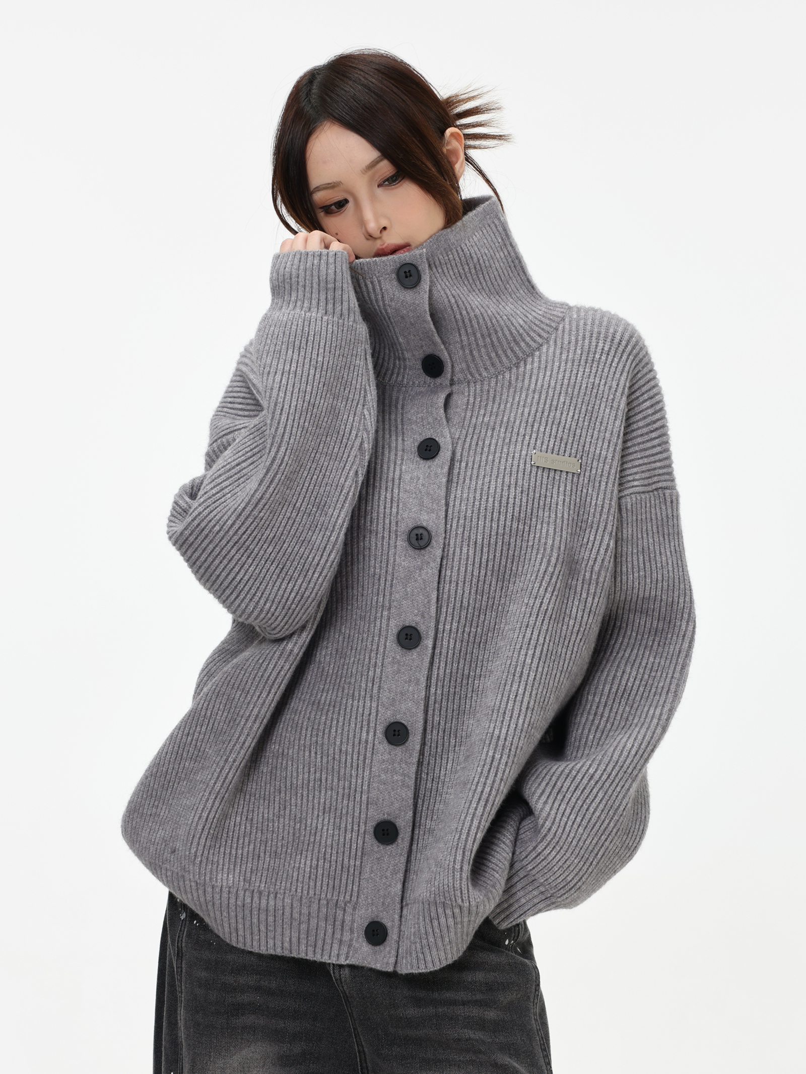 INSstudios 國潮情侶美式「粗棒針織高領毛衣」寬松開衫上衣外套