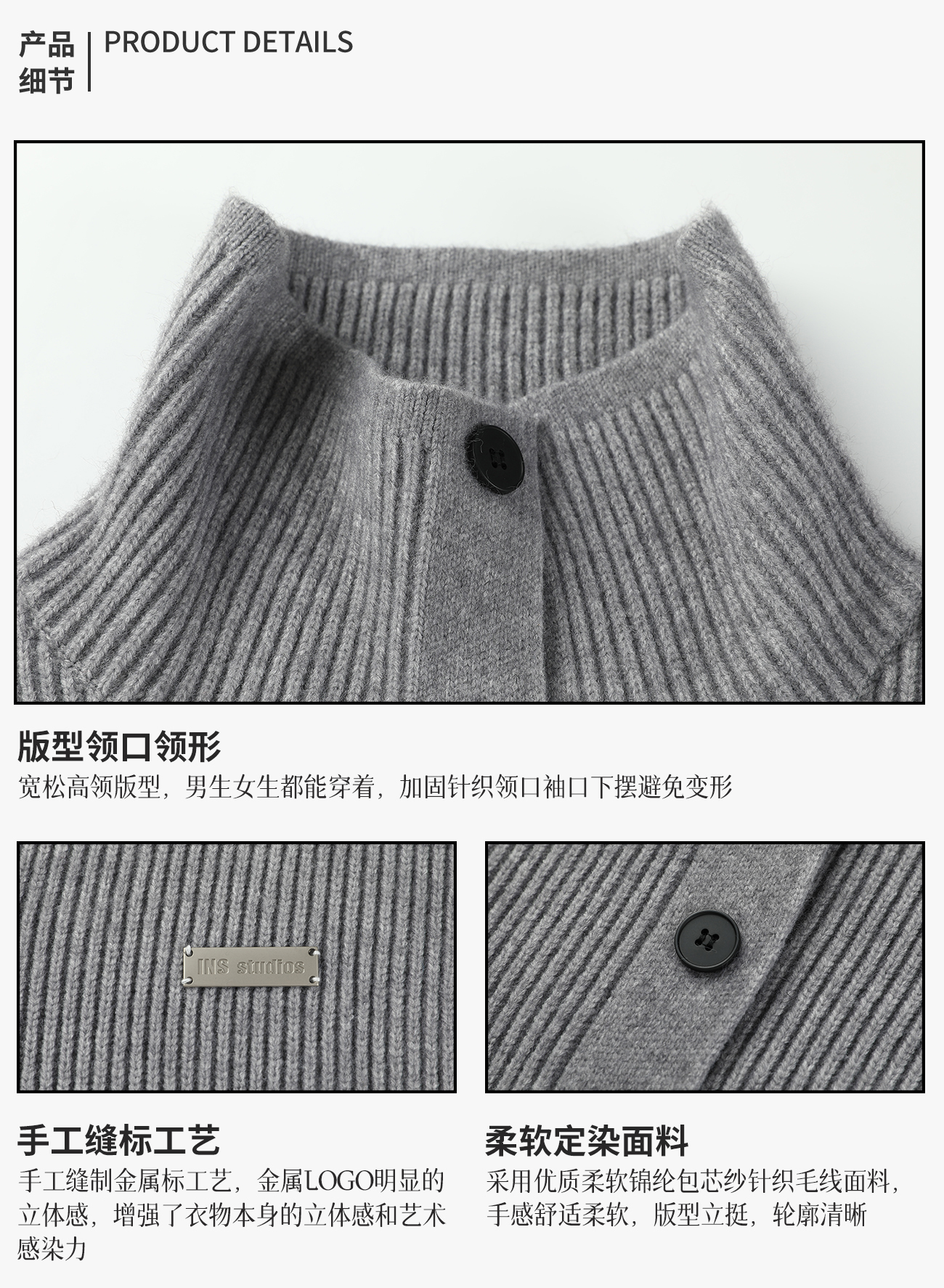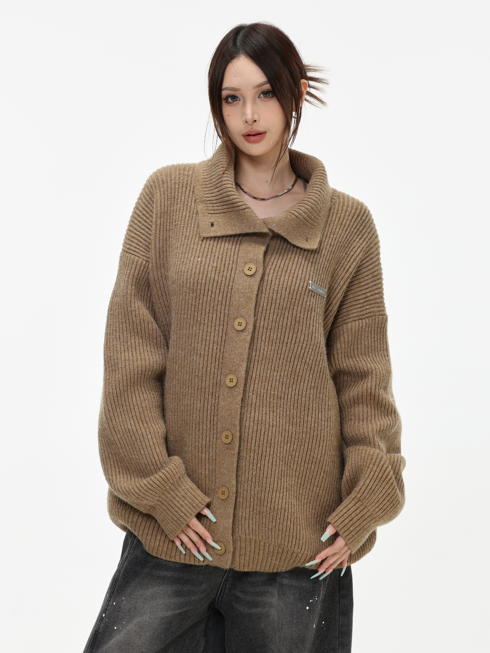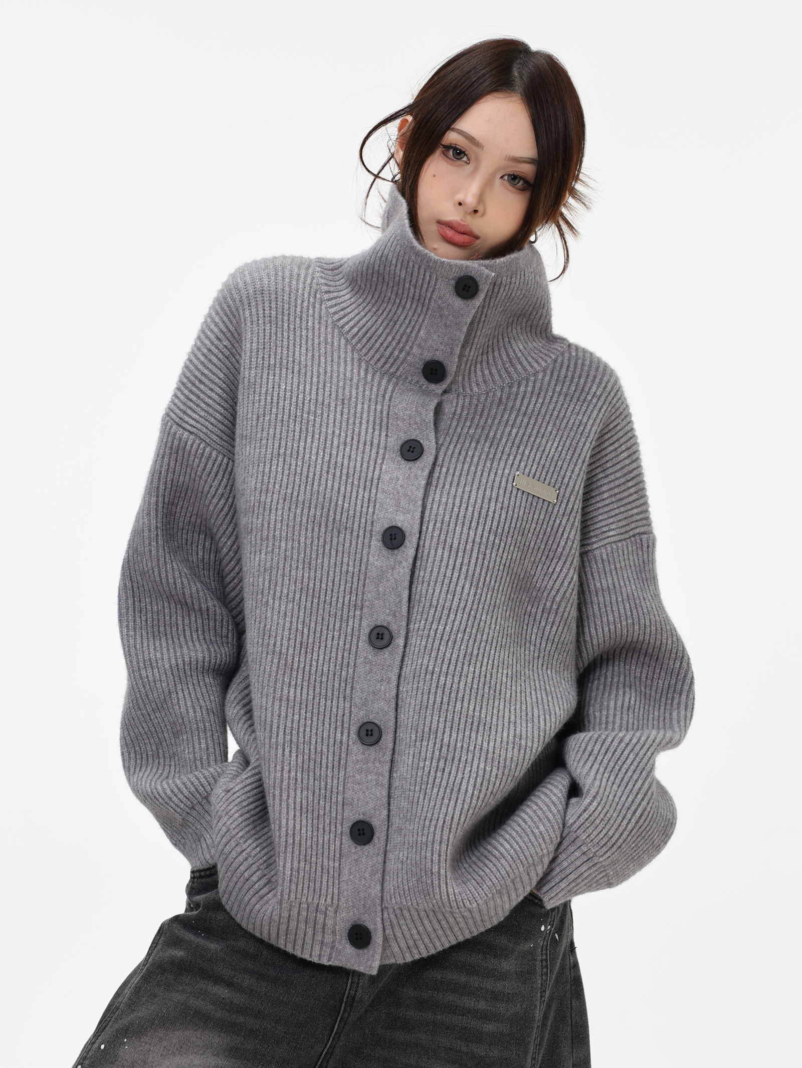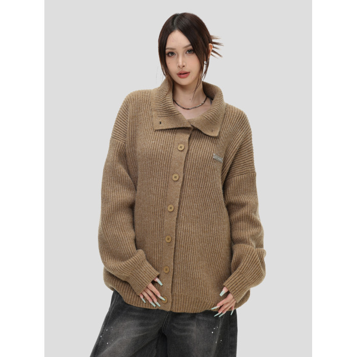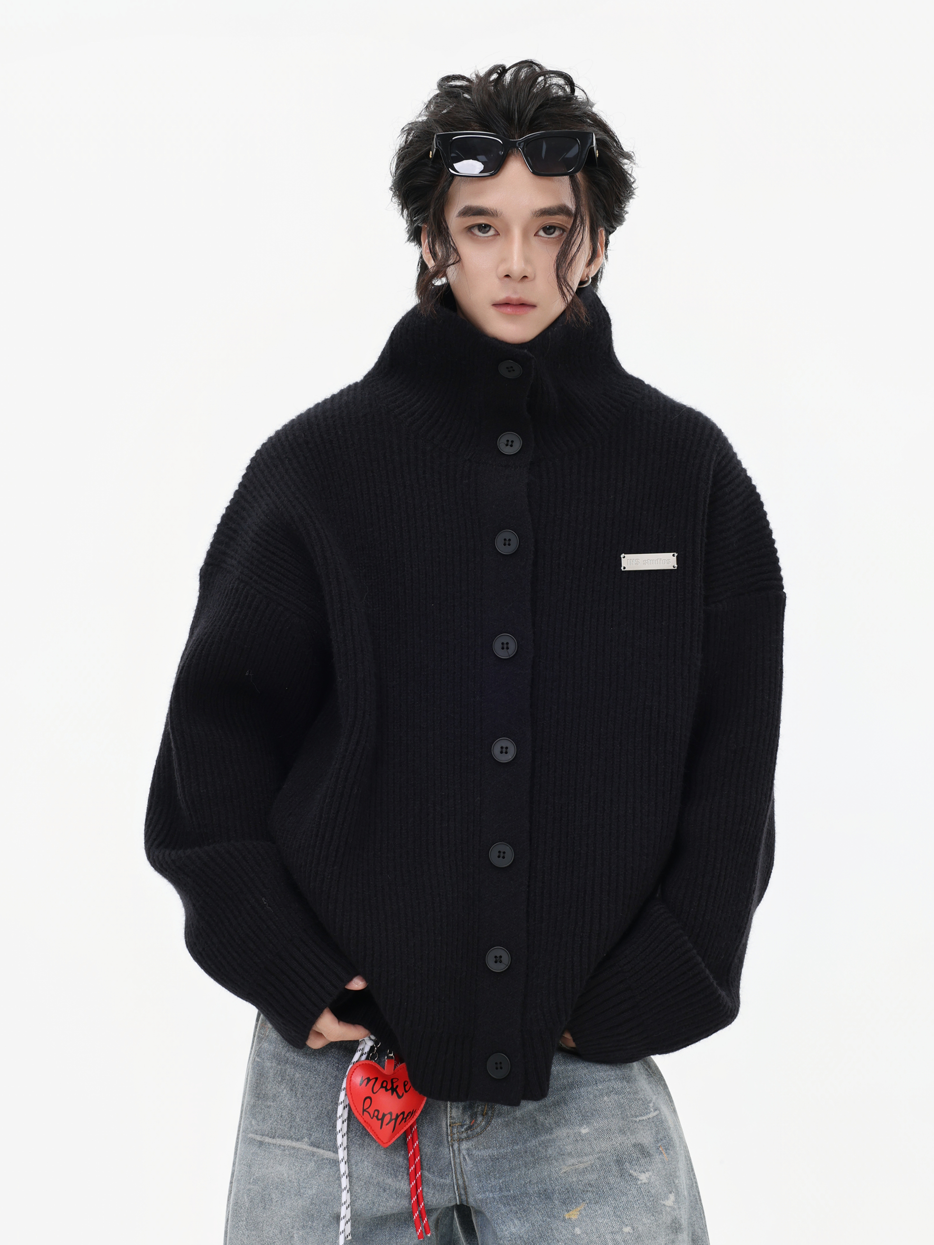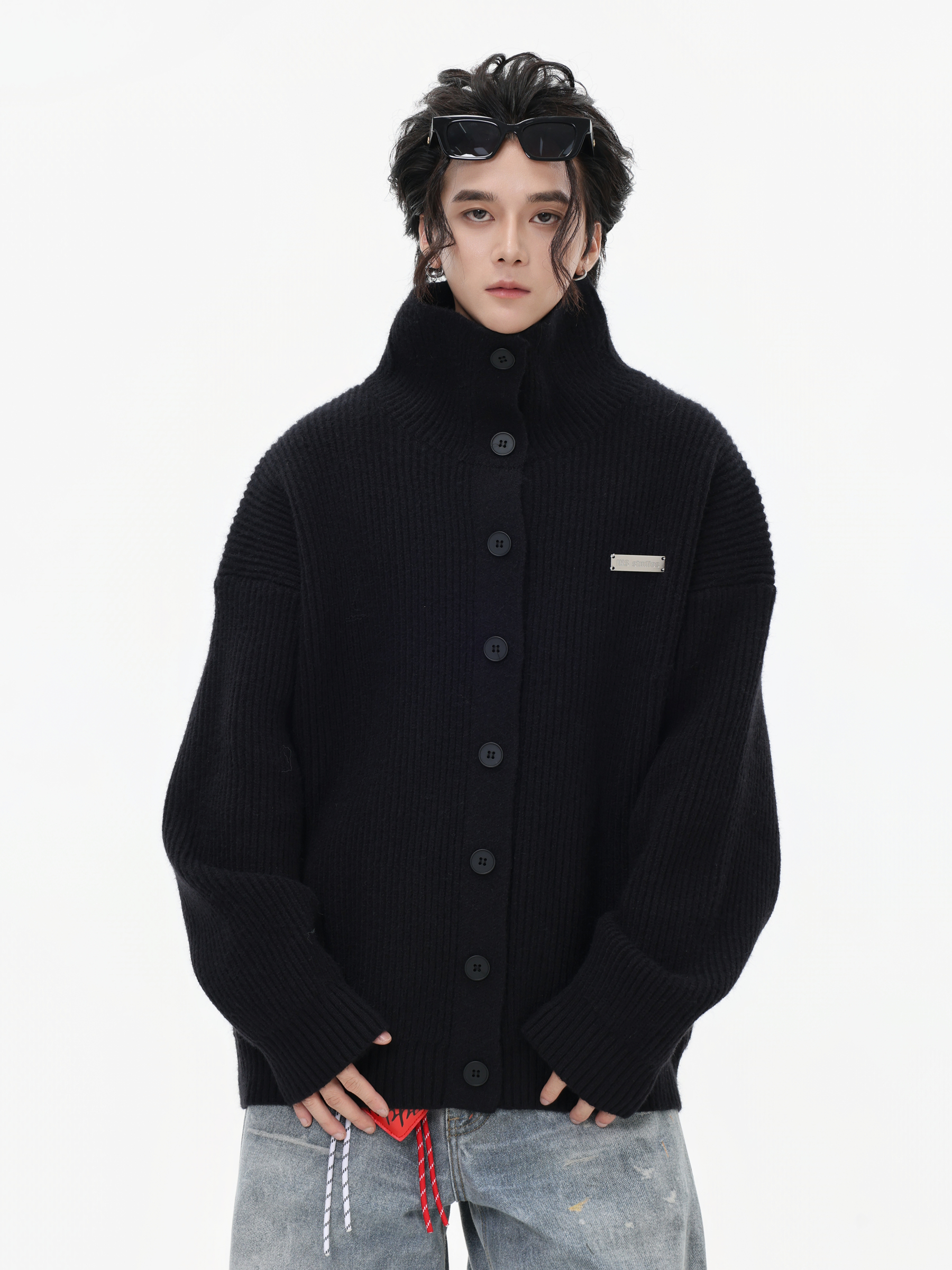 INSstudios 國潮情侶美式「粗棒針織高領毛衣」寬松開衫上衣外套