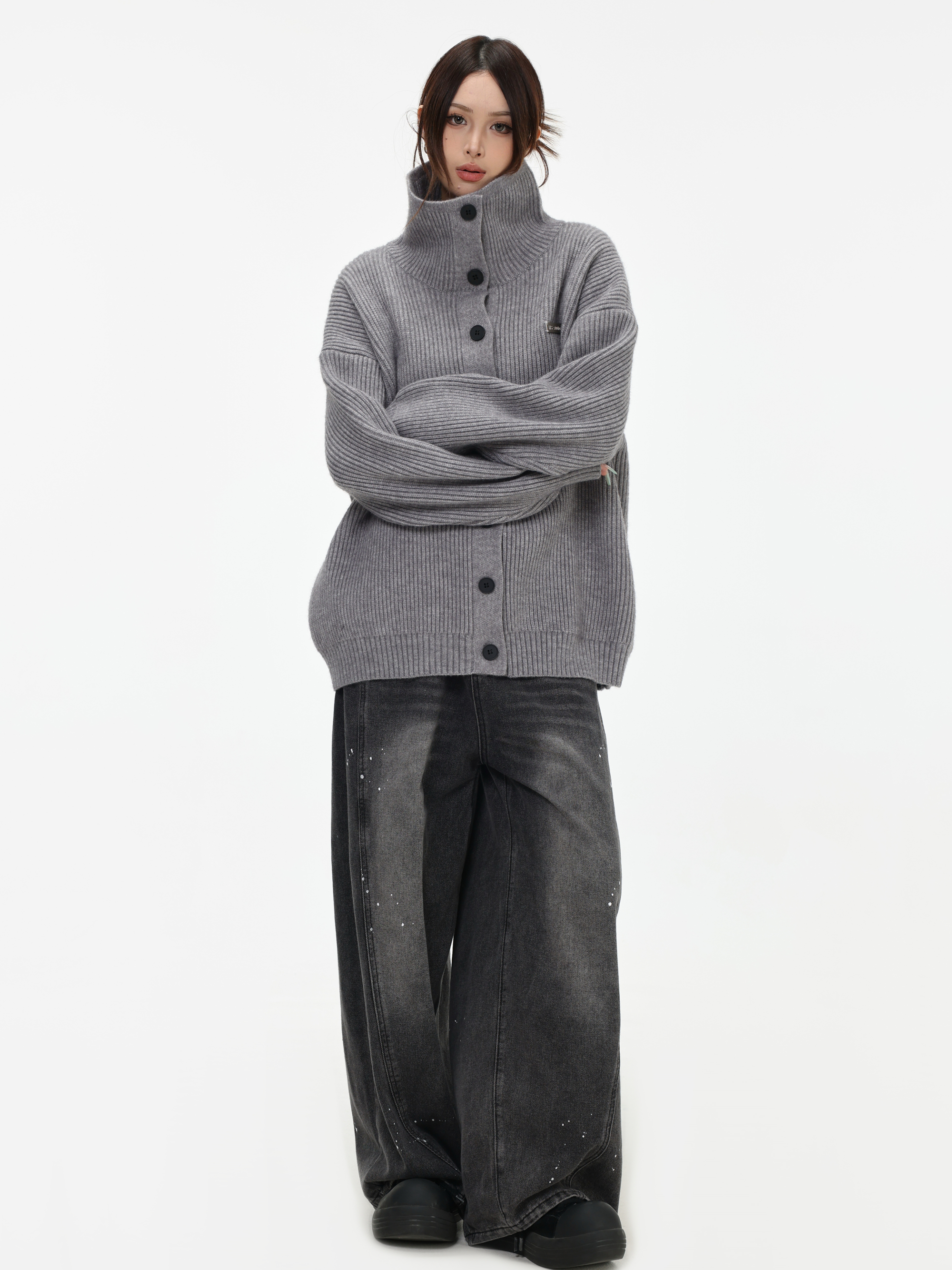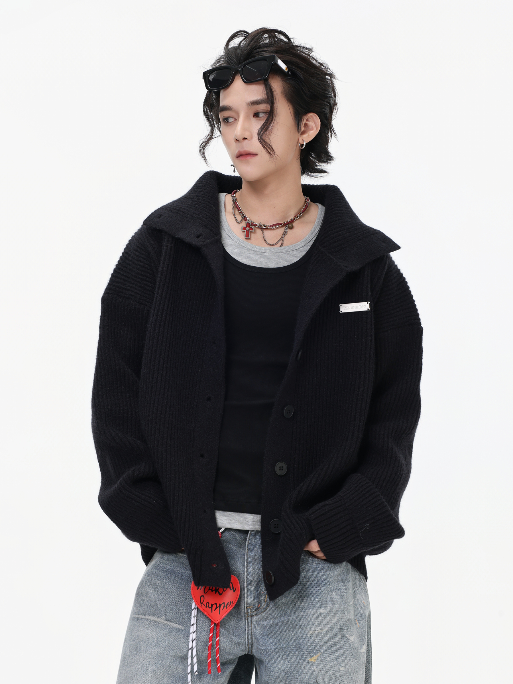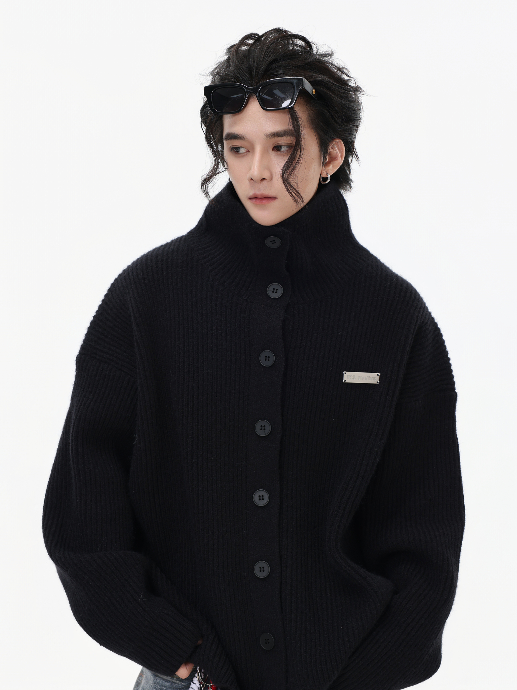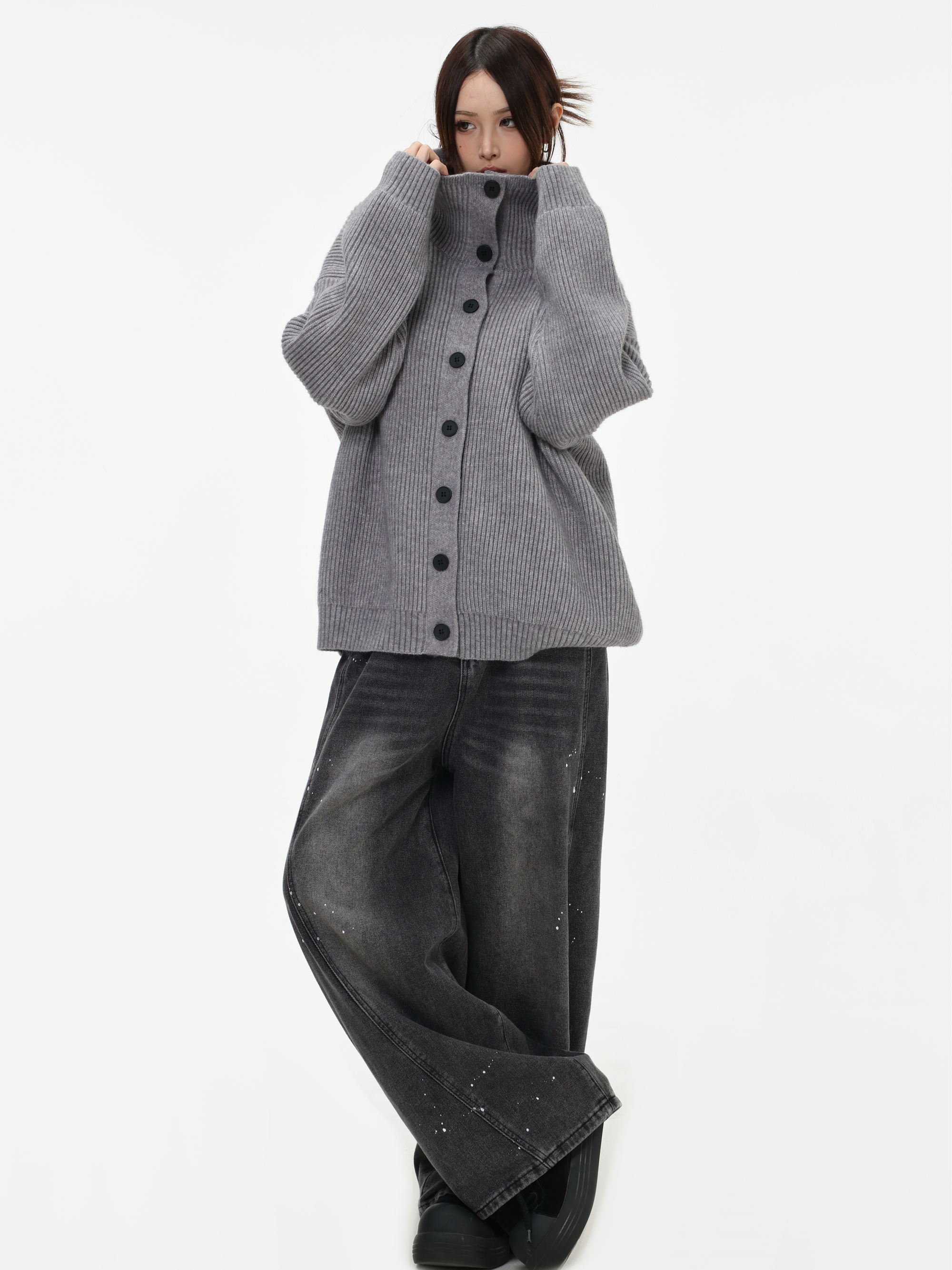 INSstudios 國潮情侶美式「粗棒針織高領毛衣」寬松開衫上衣外套