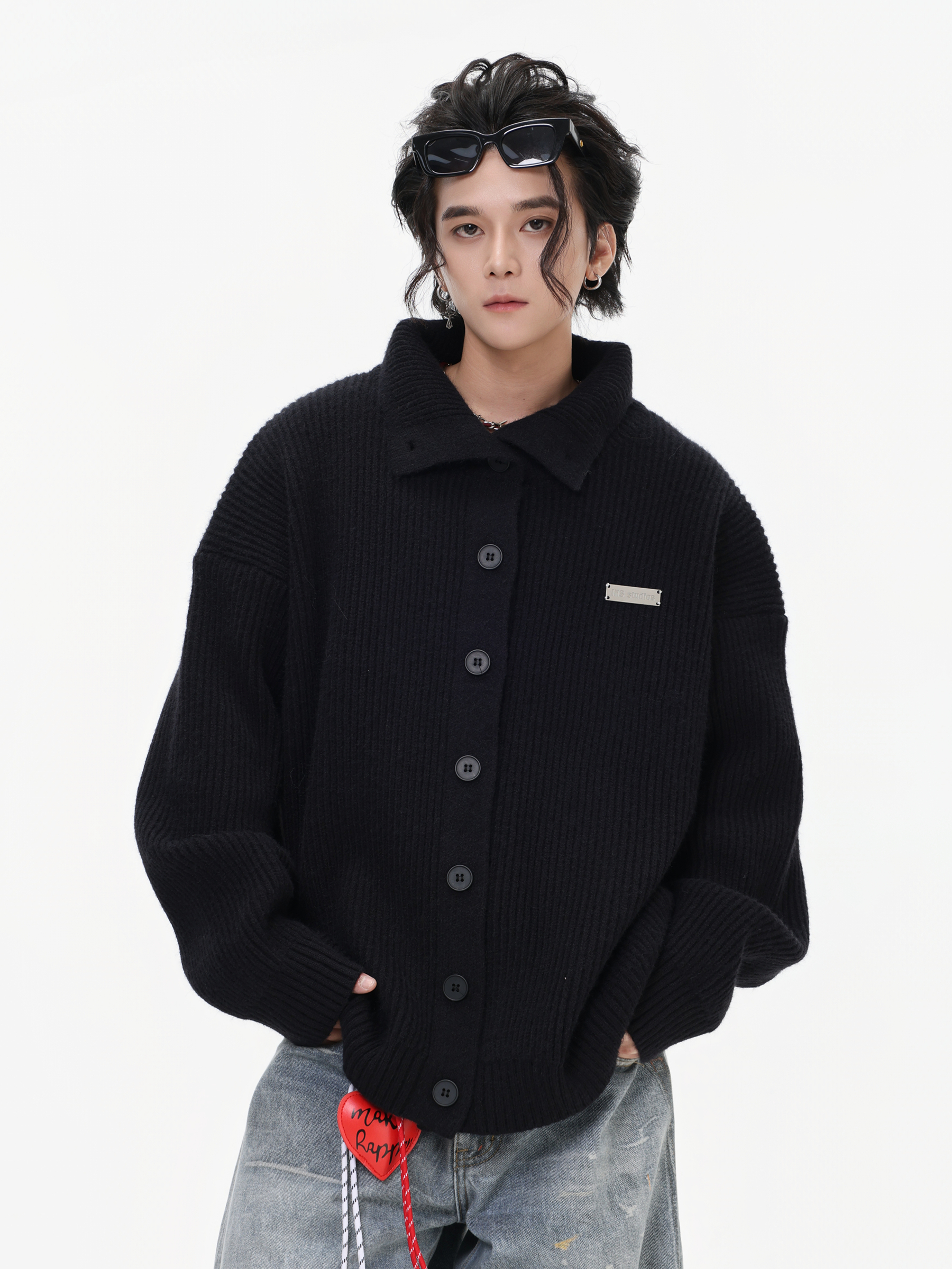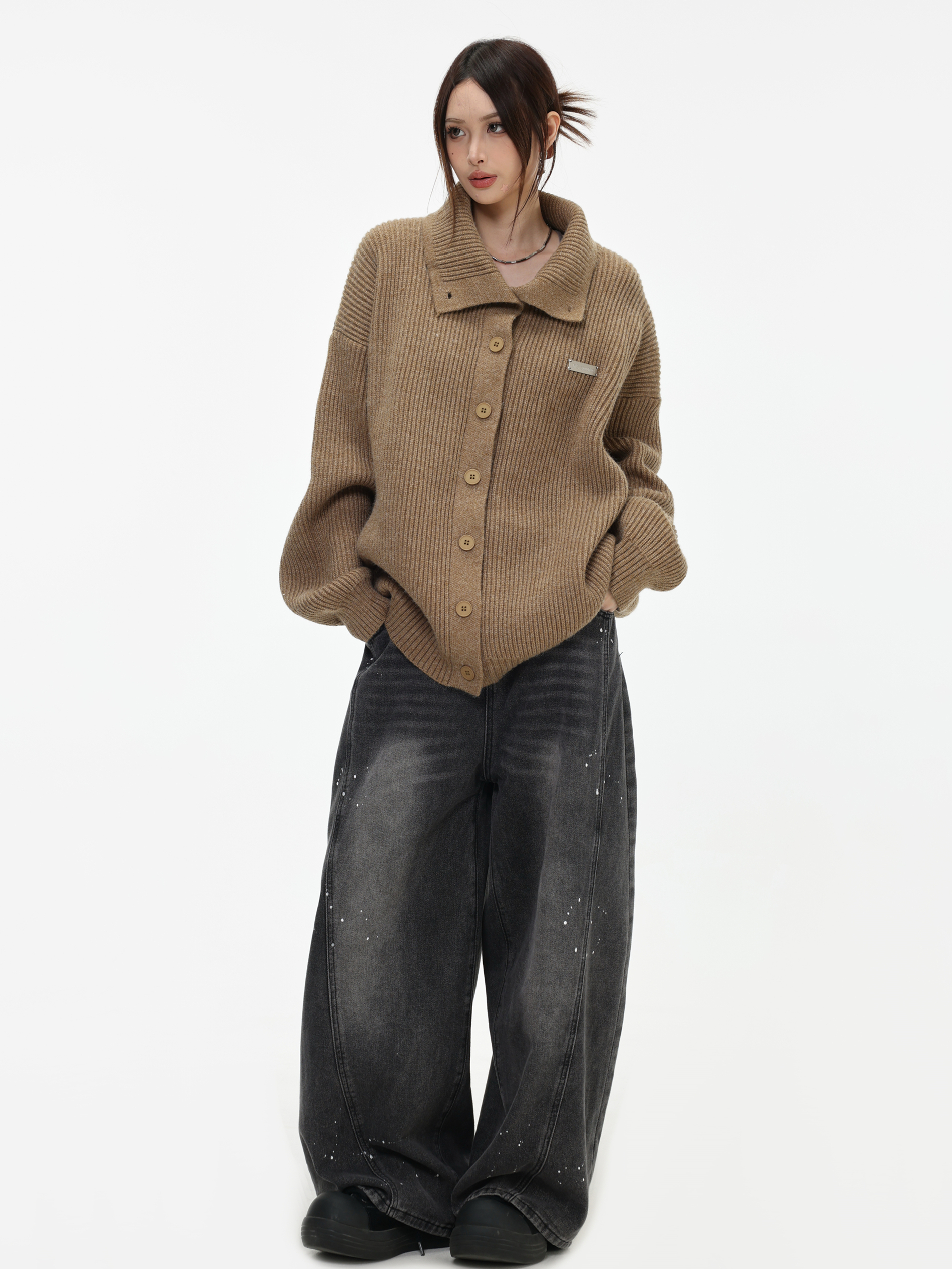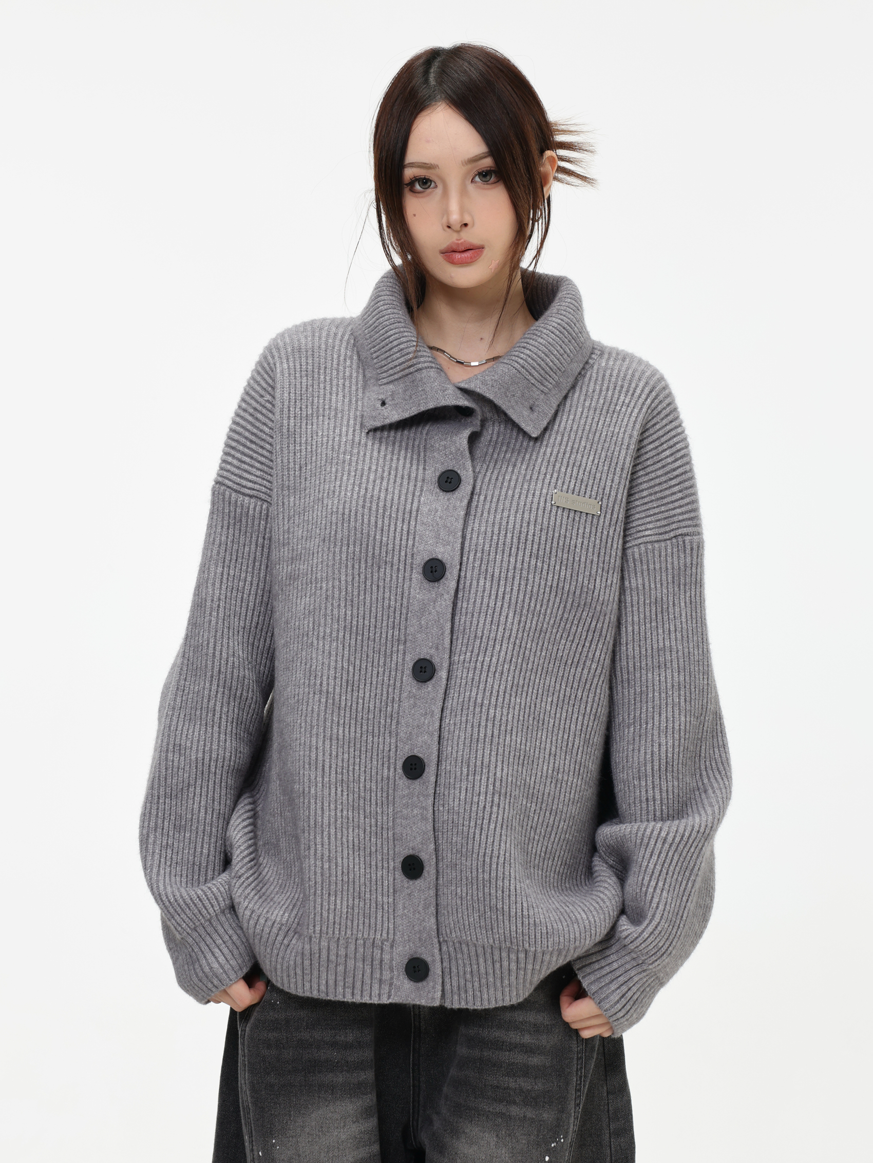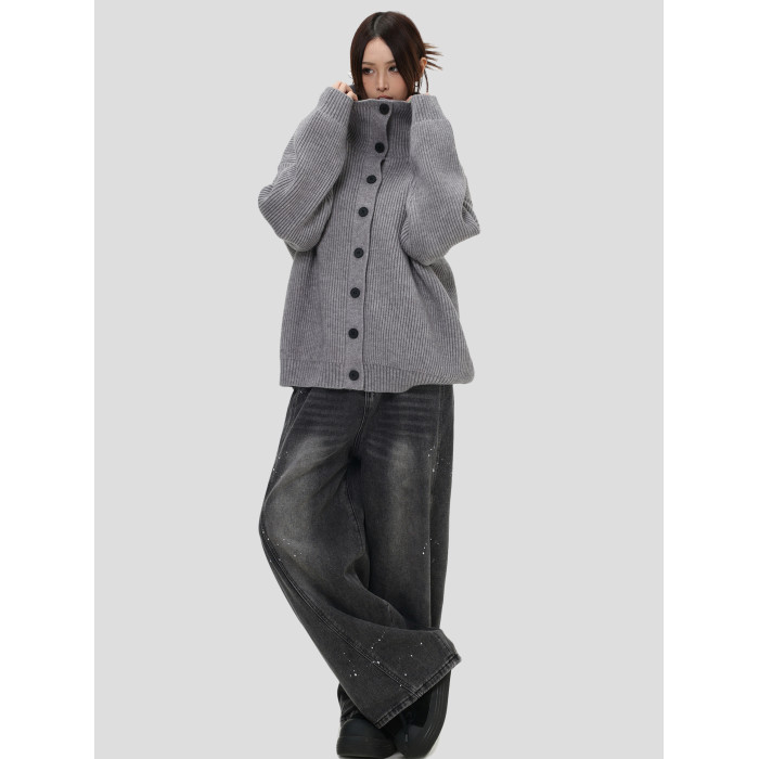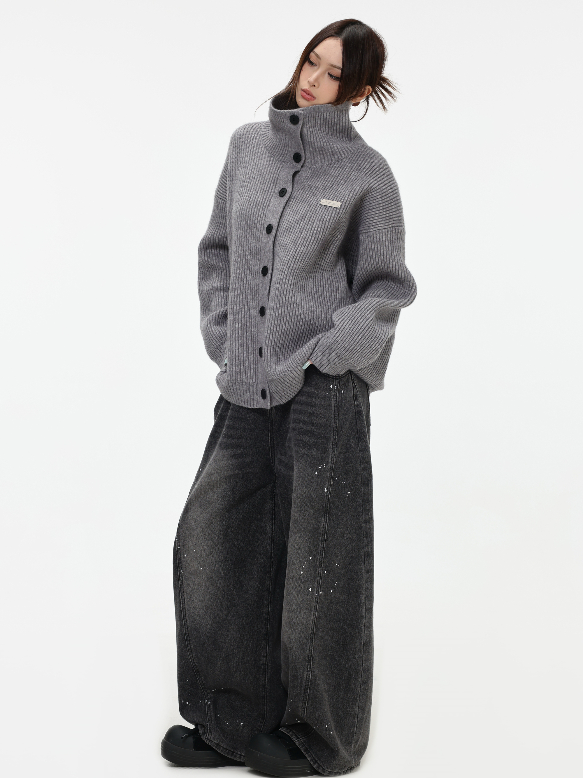 INSstudios 國潮情侶美式「粗棒針織高領毛衣」寬松開衫上衣外套