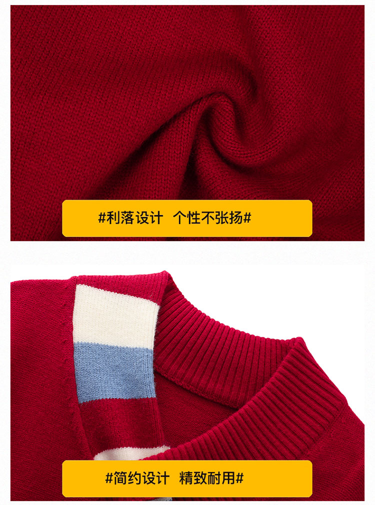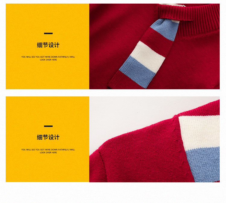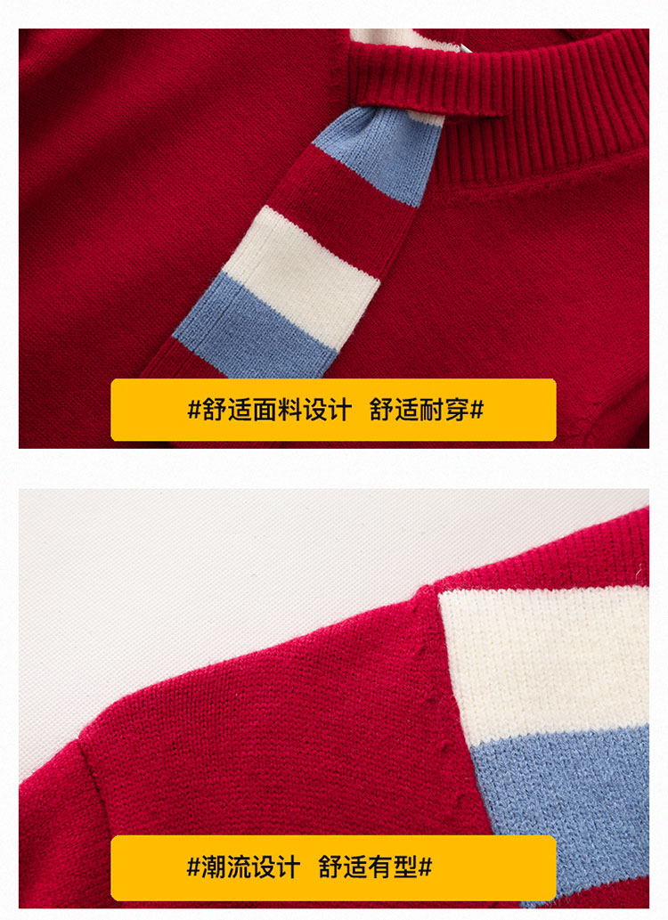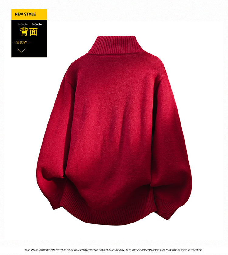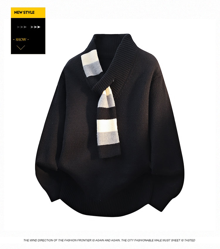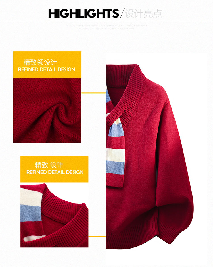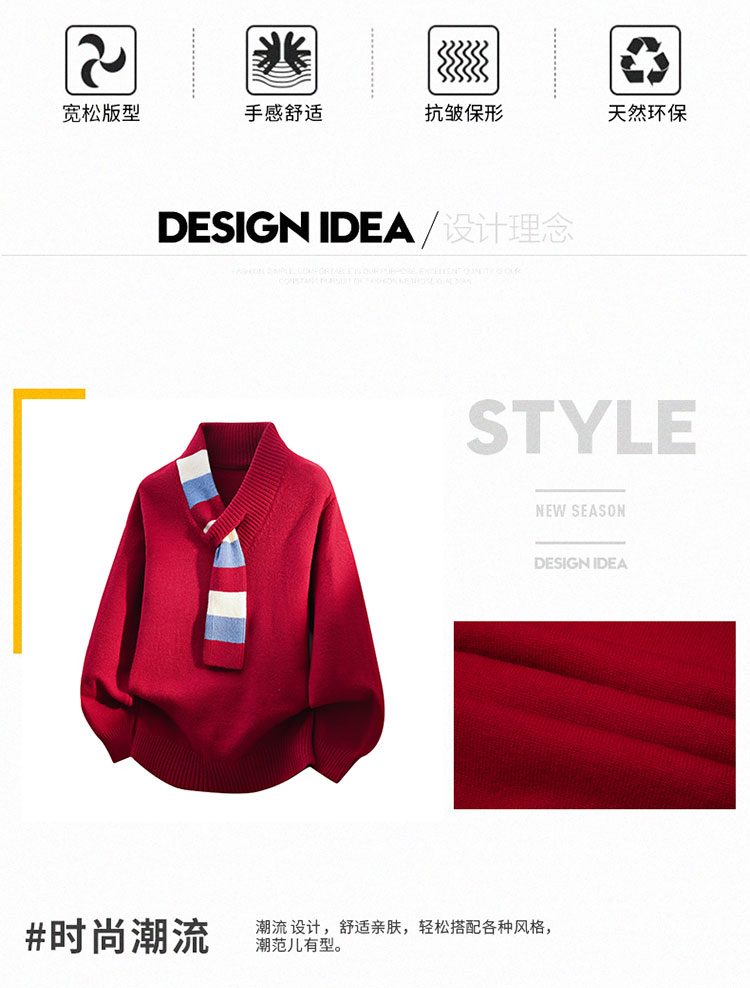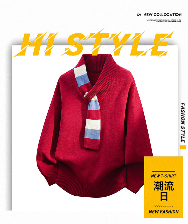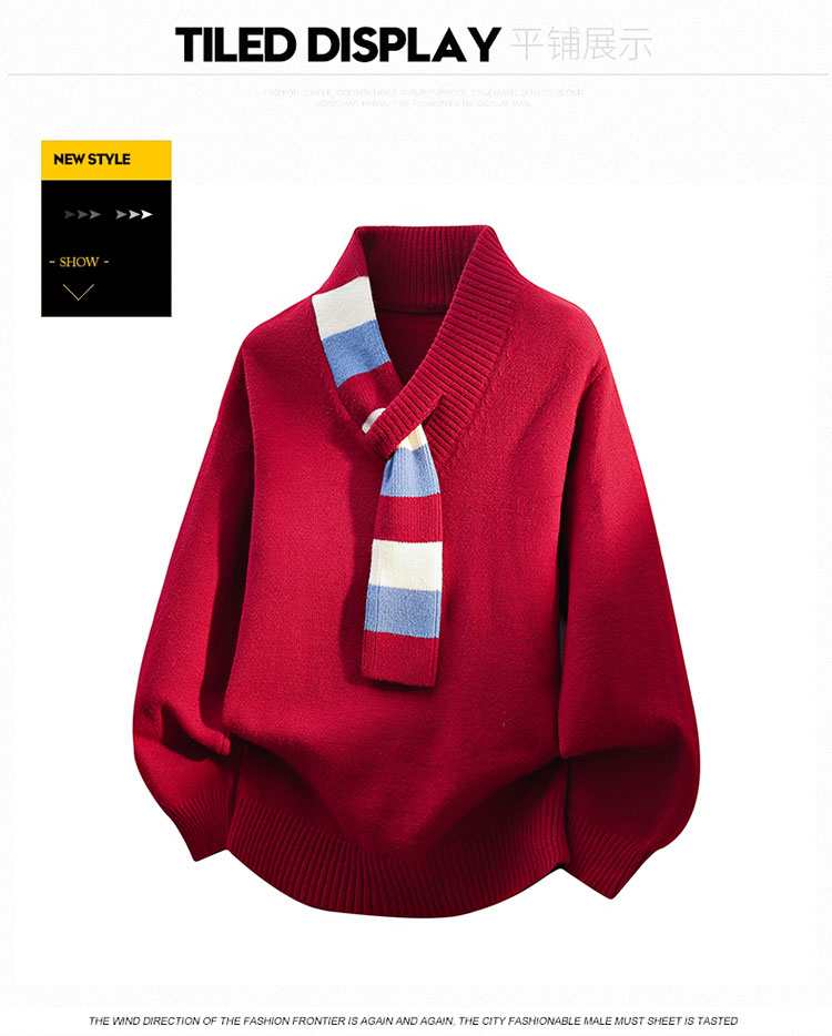 WASSUP ISSUE設計感紅色圍巾領毛衣男款秋冬季潮牌V領針織衫上衣