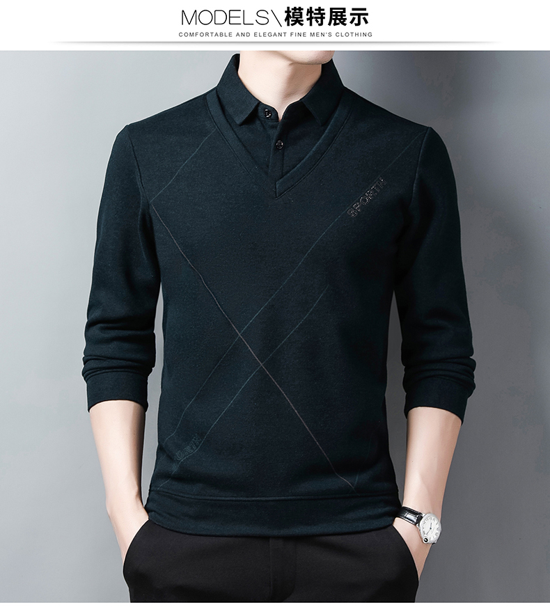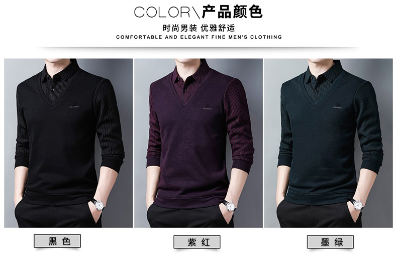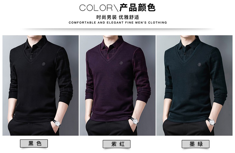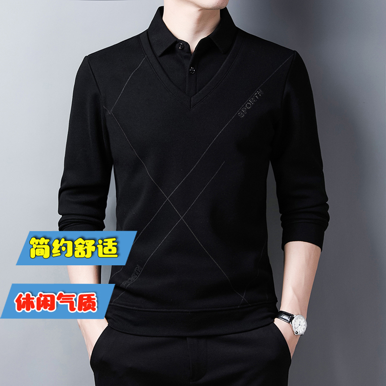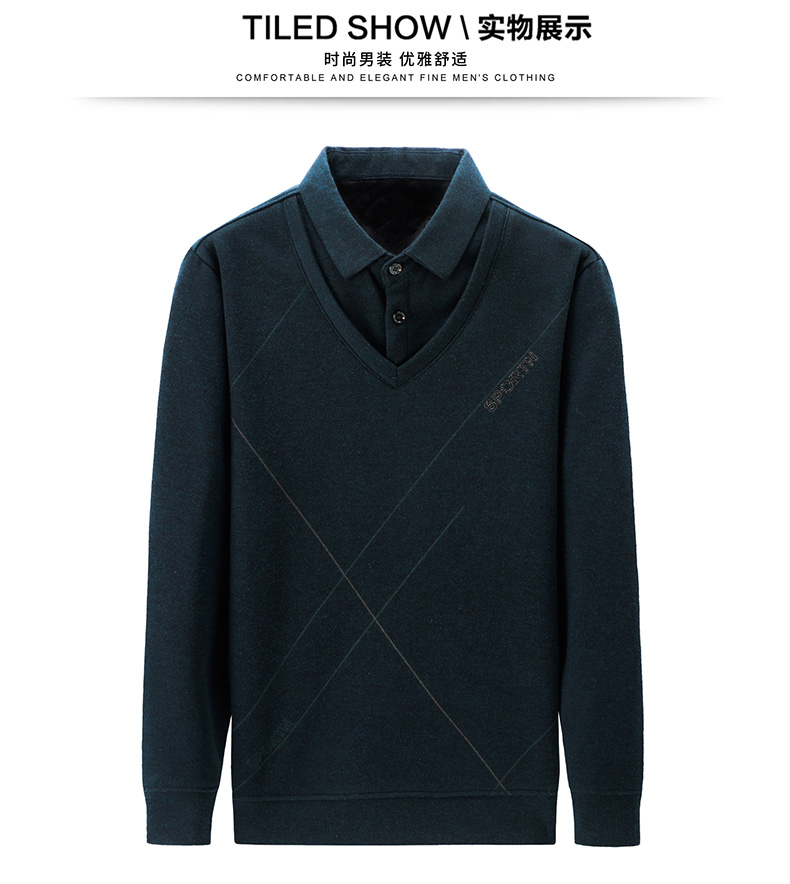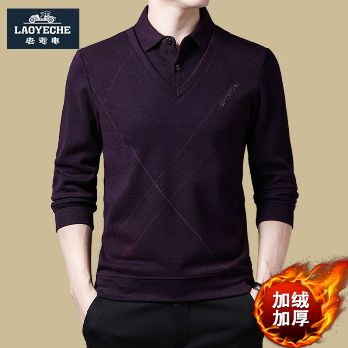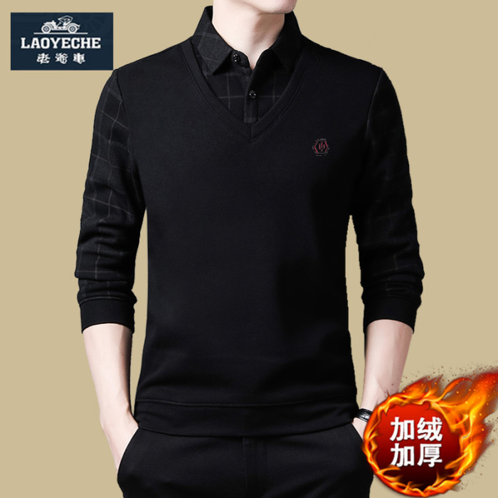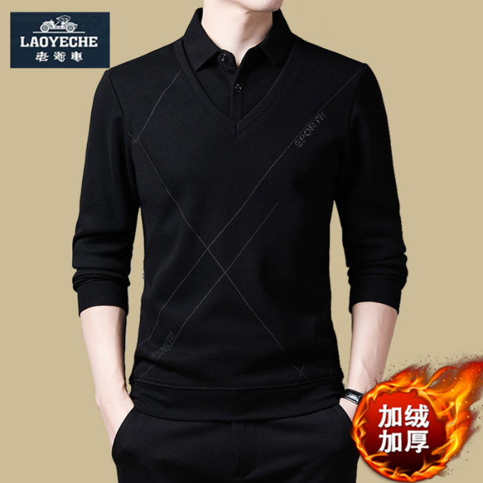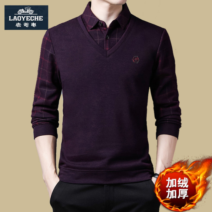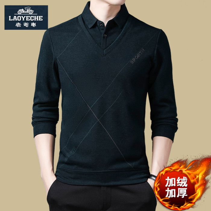 老爺車冬季毛衣爸爸裝保暖襯衫假兩件加絨加厚上衣男士t恤打底衫