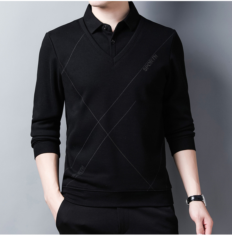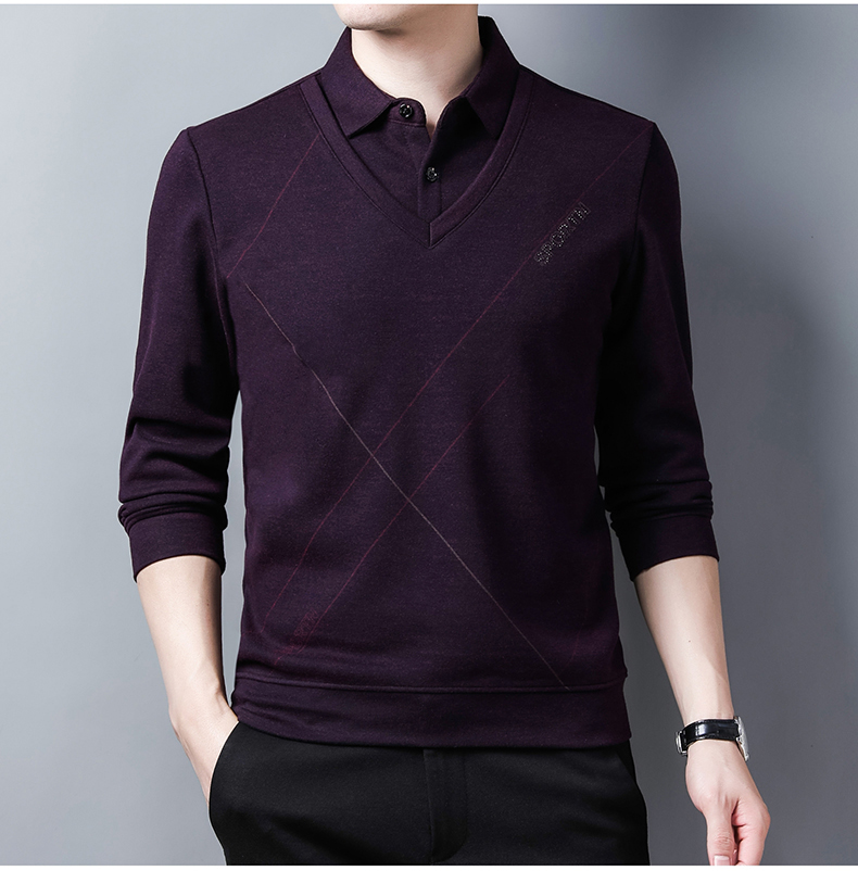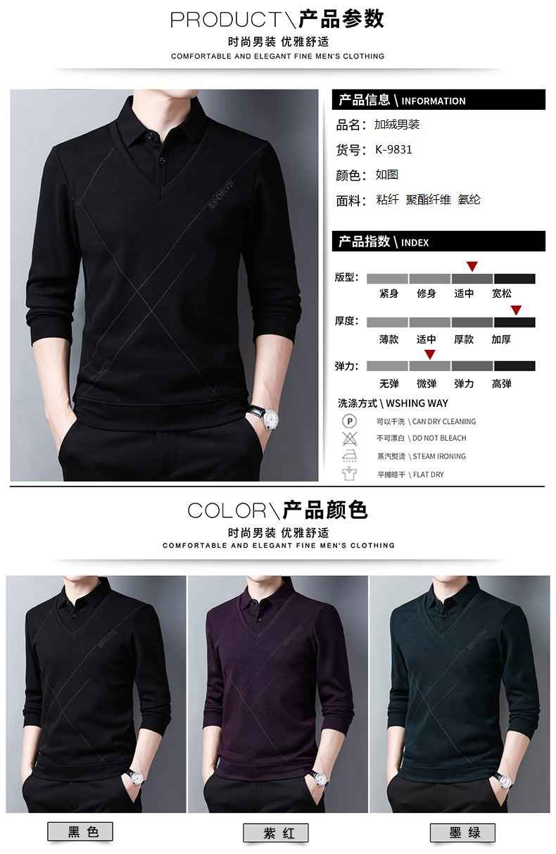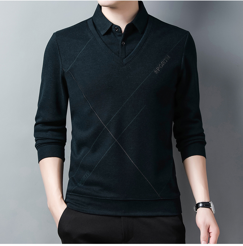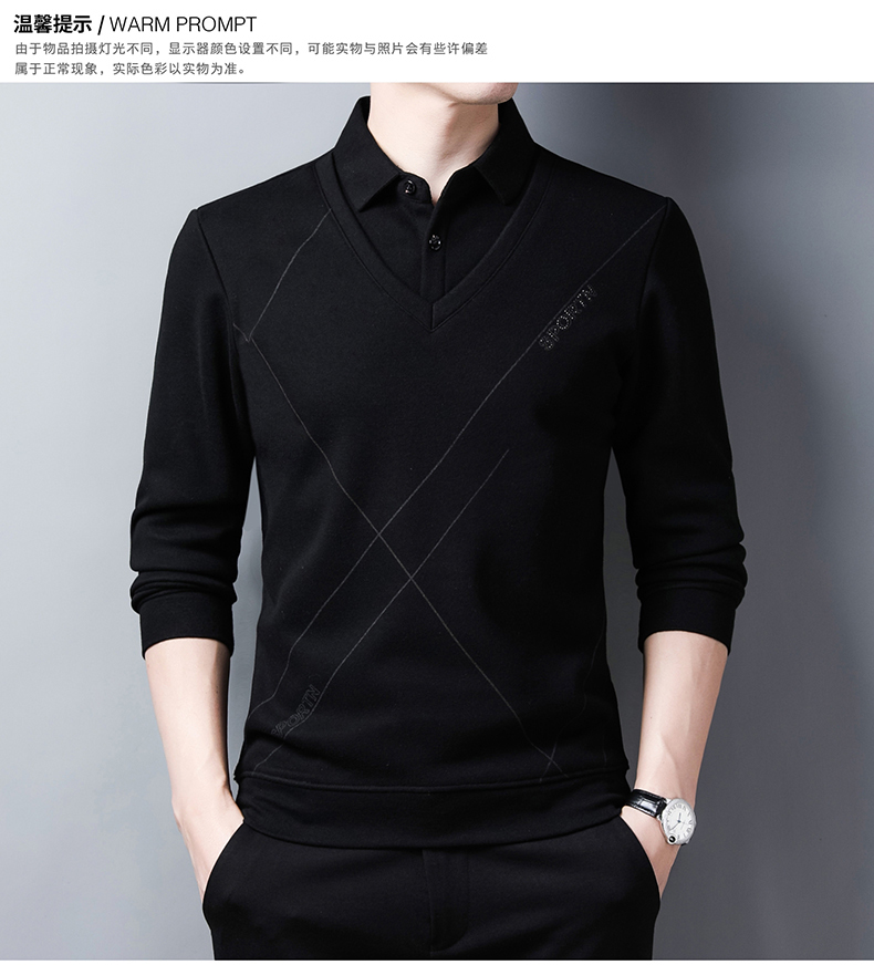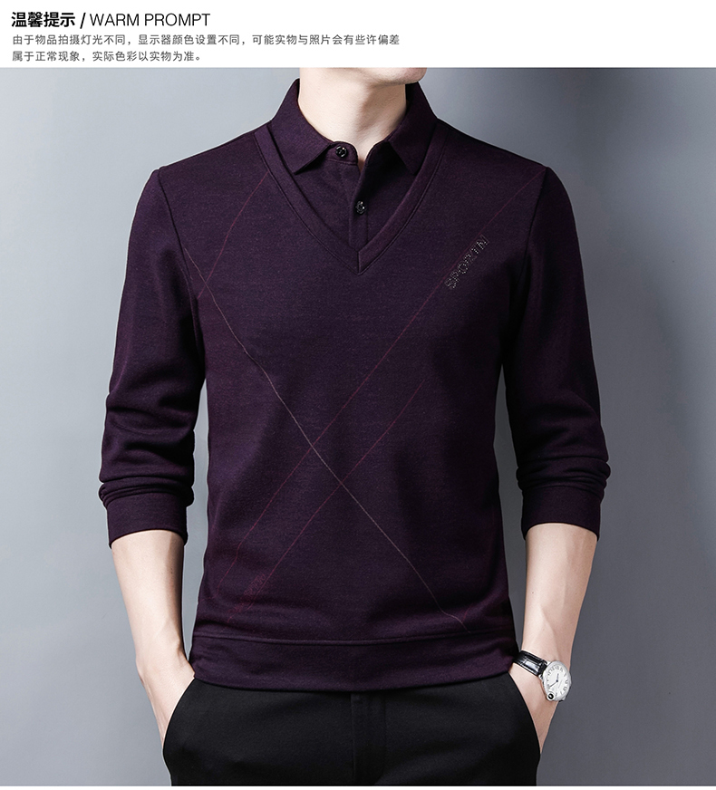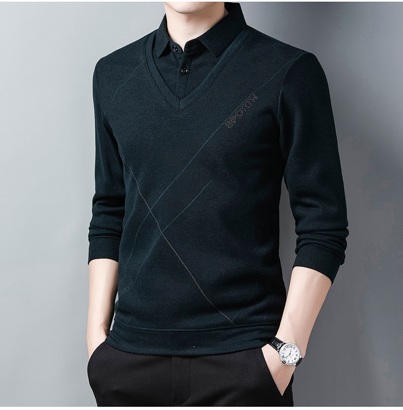 老爺車冬季毛衣爸爸裝保暖襯衫假兩件加絨加厚上衣男士t恤打底衫