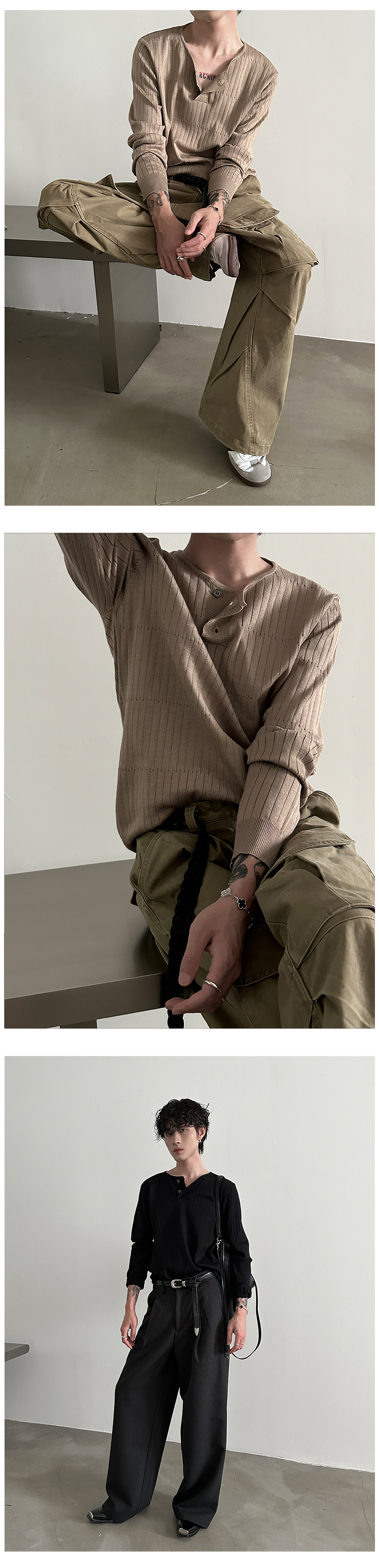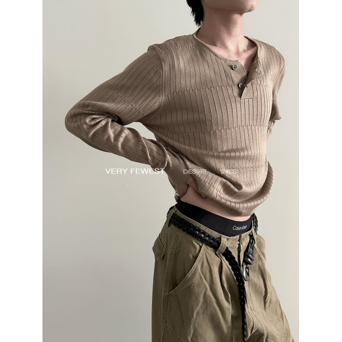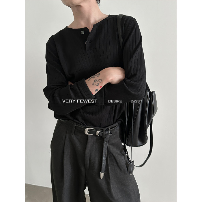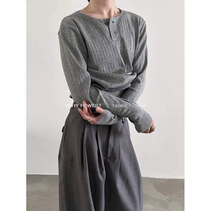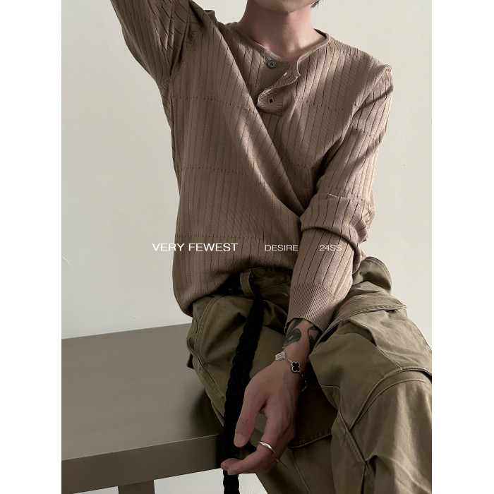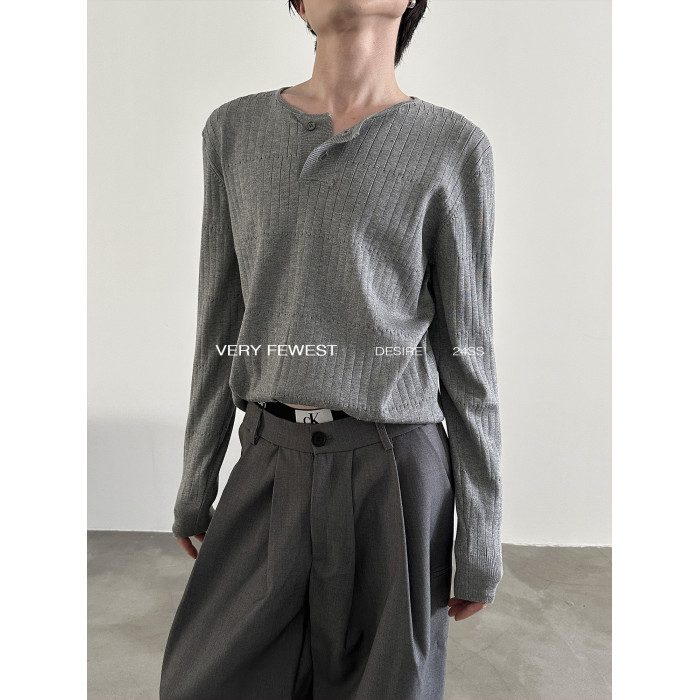 VERY FEWEST 基礎款亨利領套頭修身長袖針織衫男女款百搭打底衫