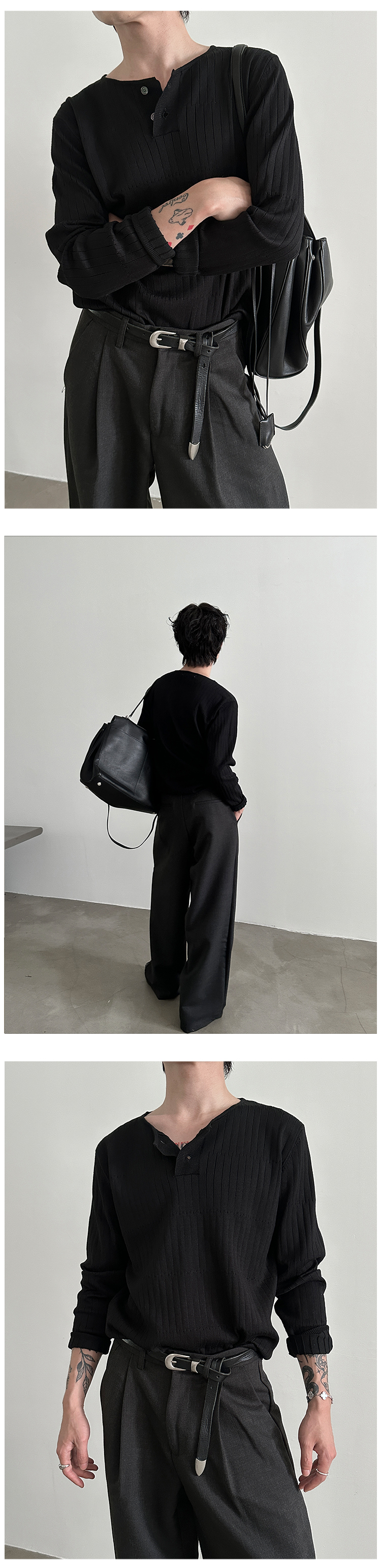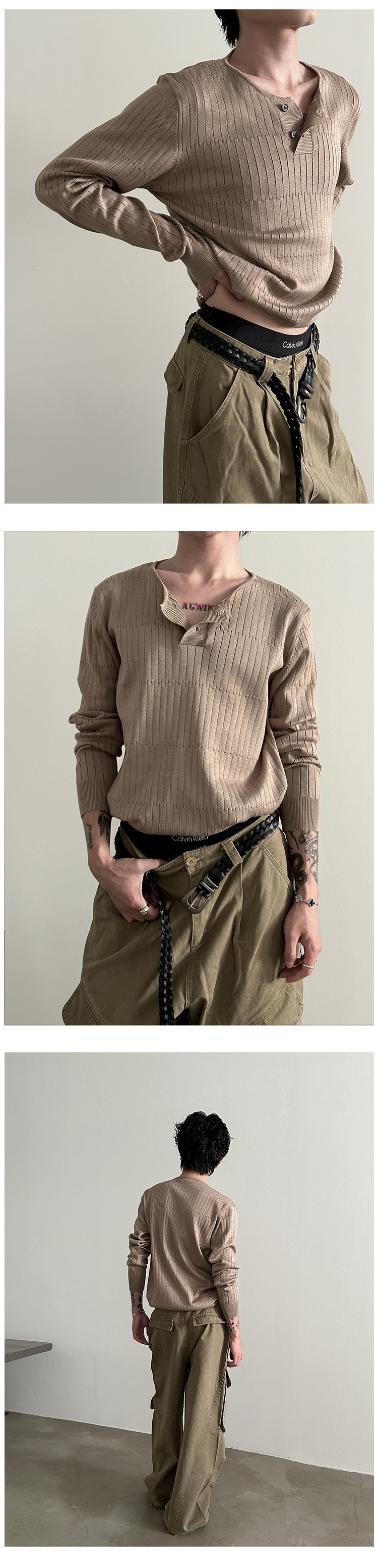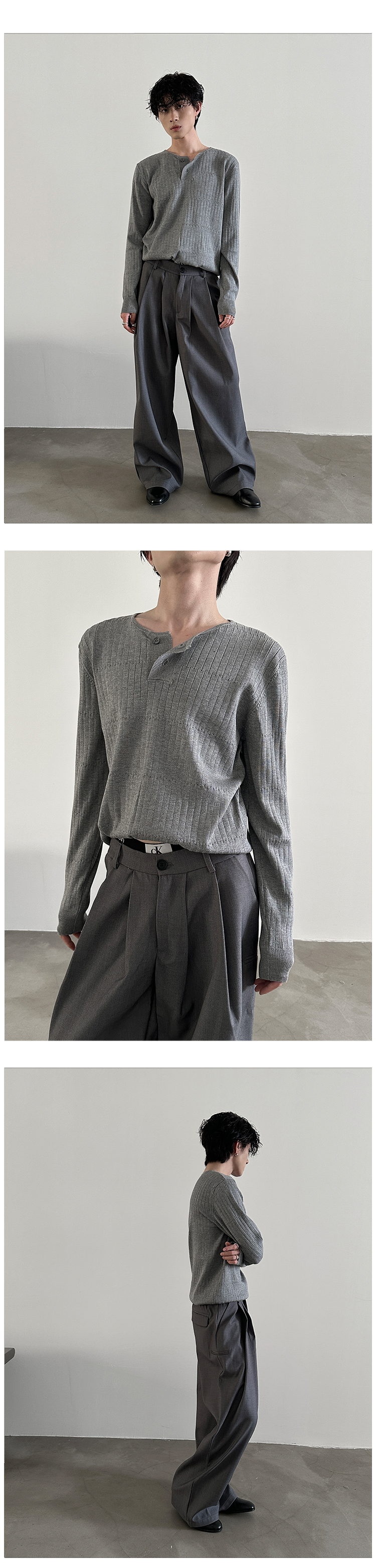 VERY FEWEST 基礎款亨利領套頭修身長袖針織衫男女款百搭打底衫