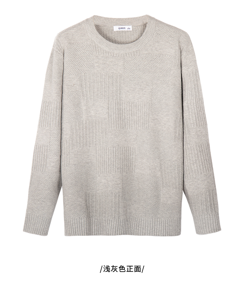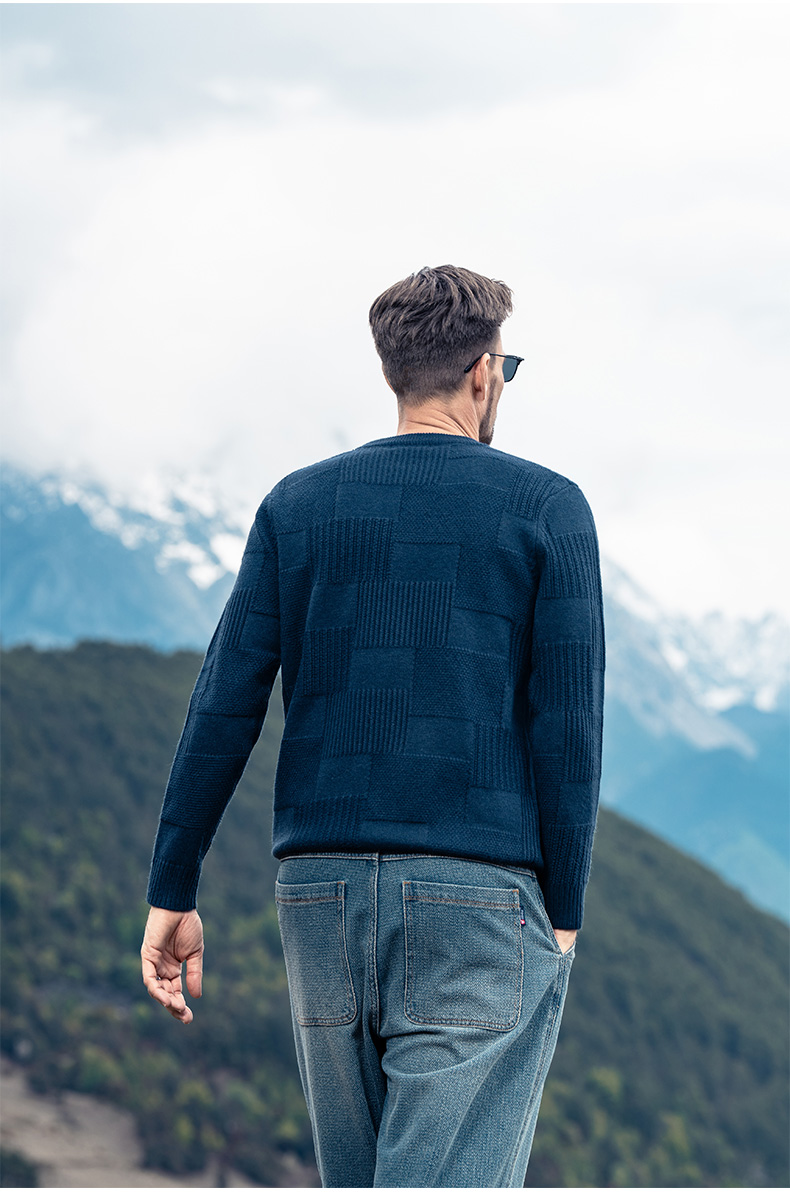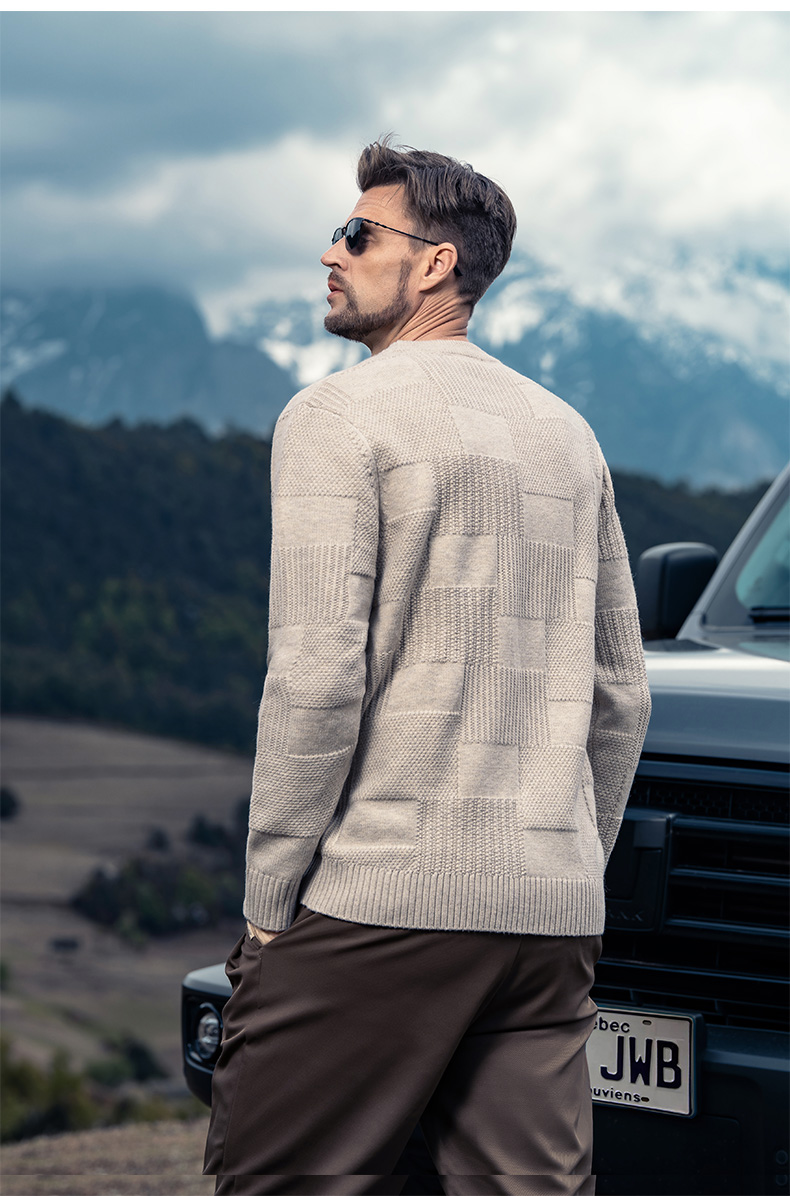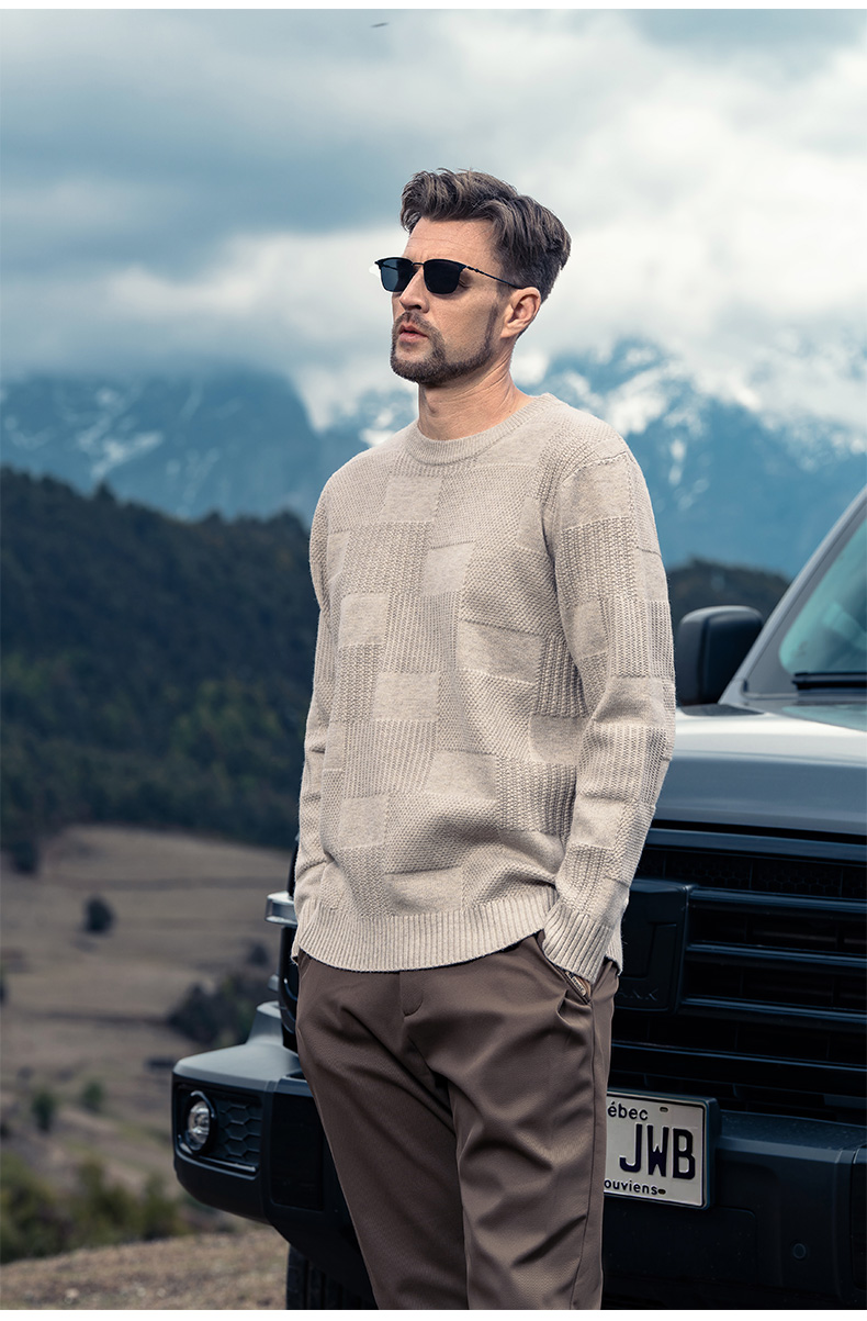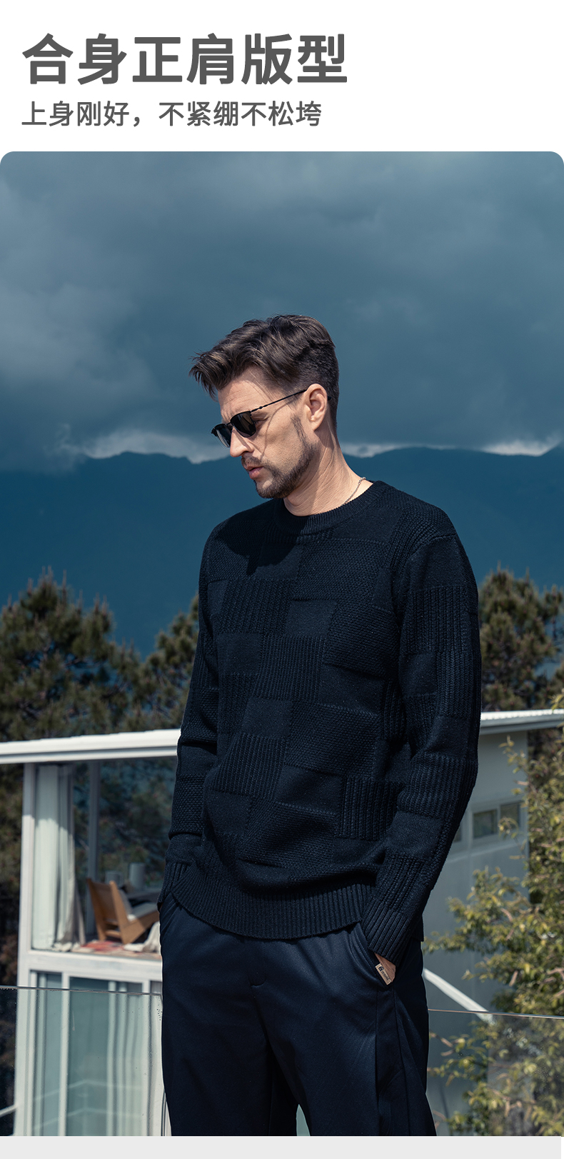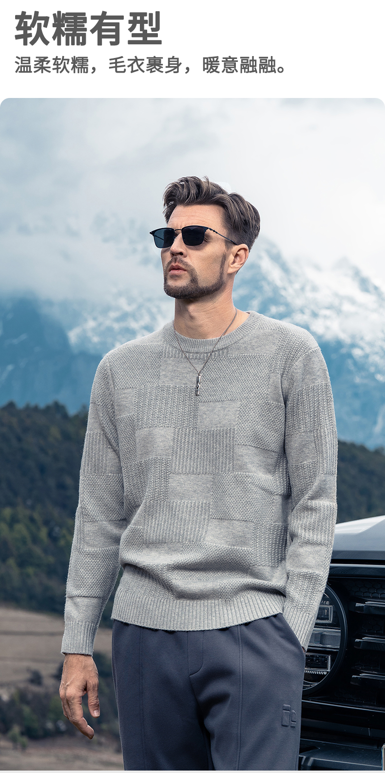 英爵倫軟糯厚實棋盤格毛衣男秋冬圓領套頭針織衫男士內搭打底上衣