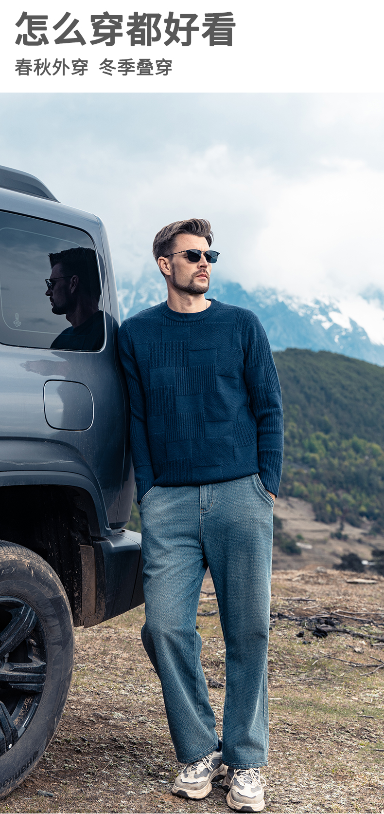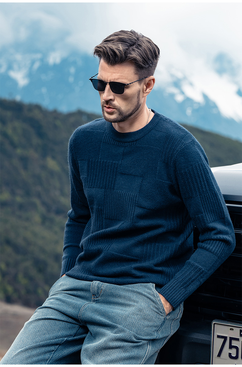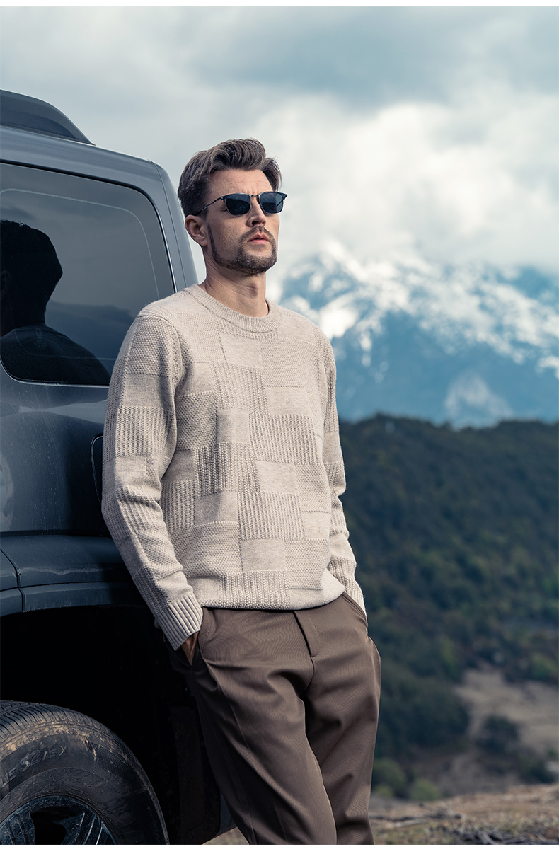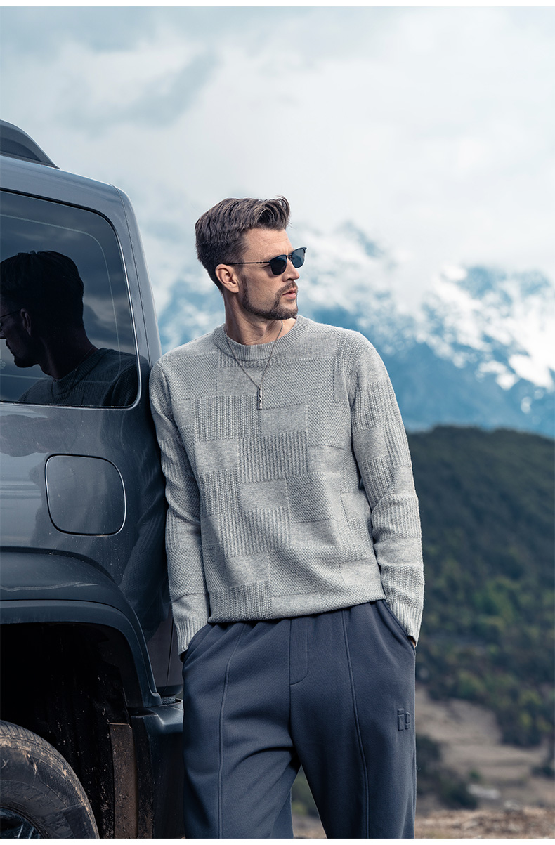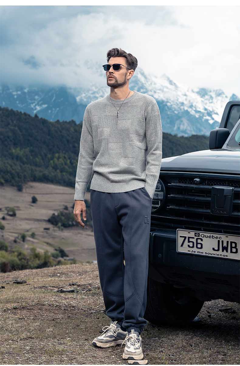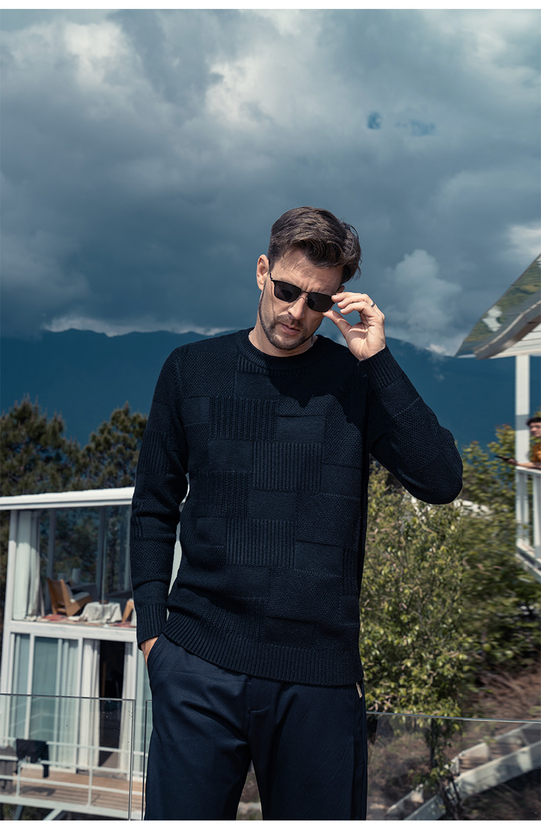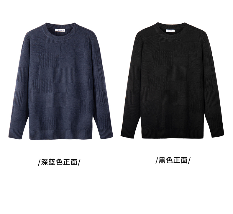 英爵倫軟糯厚實棋盤格毛衣男秋冬圓領套頭針織衫男士內搭打底上衣