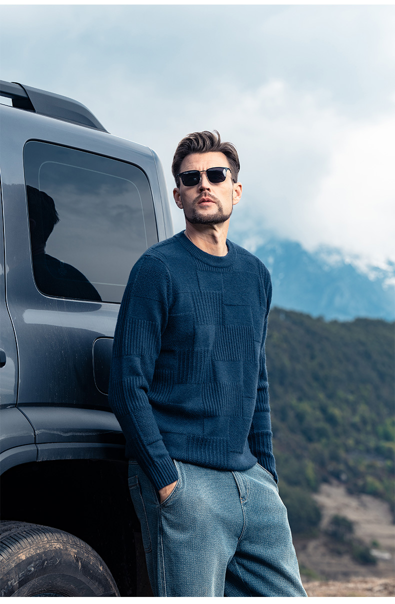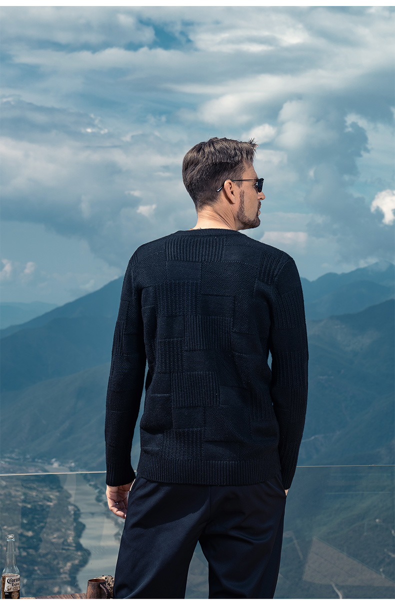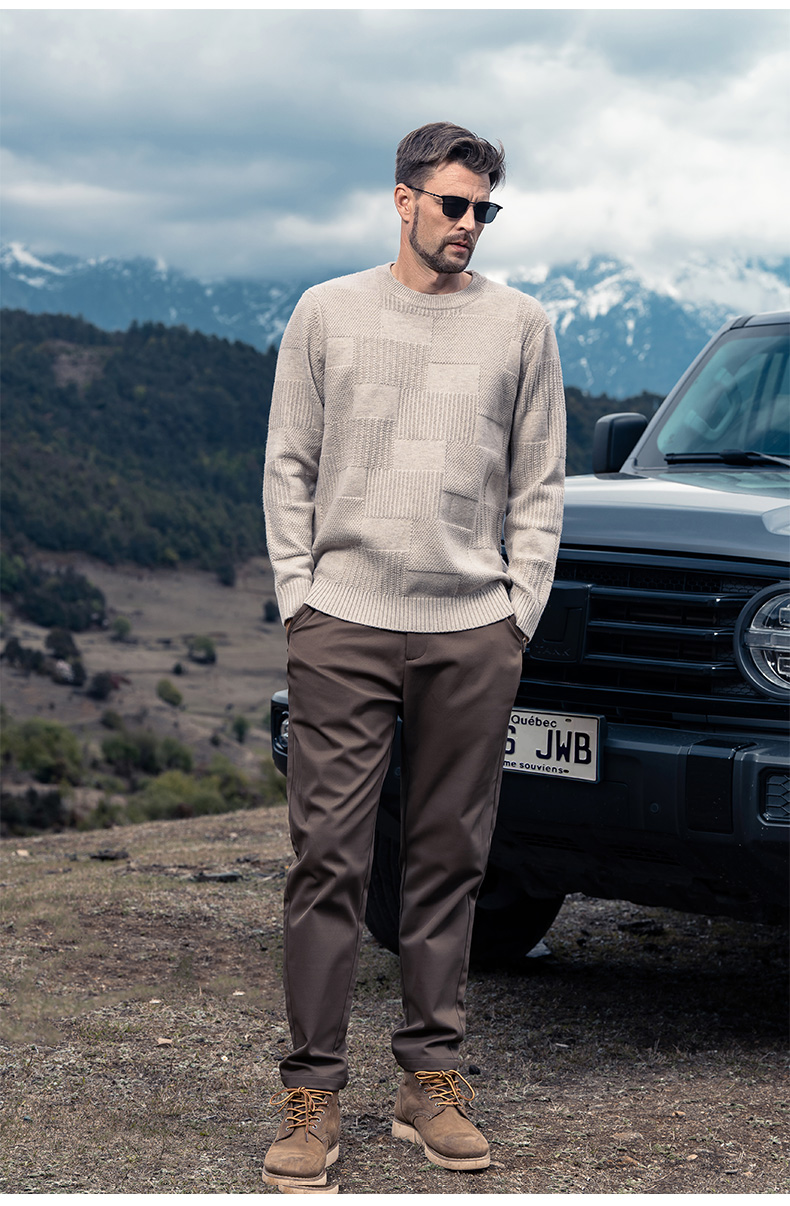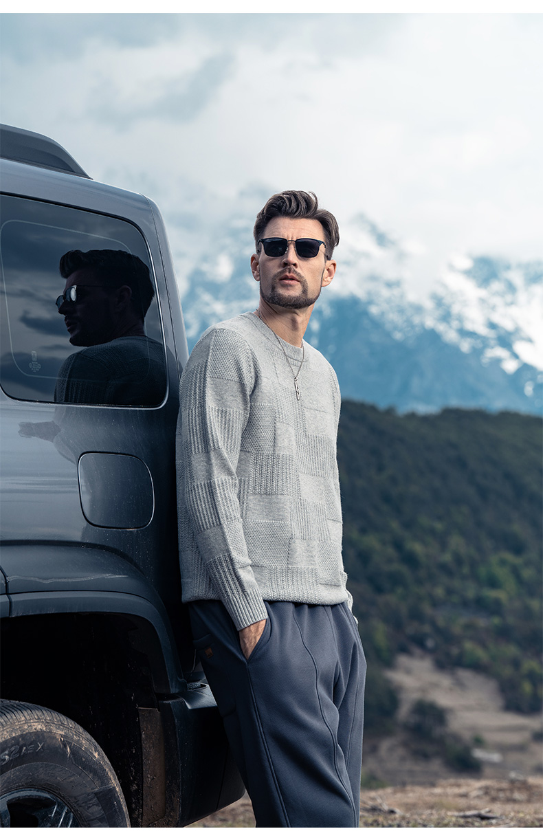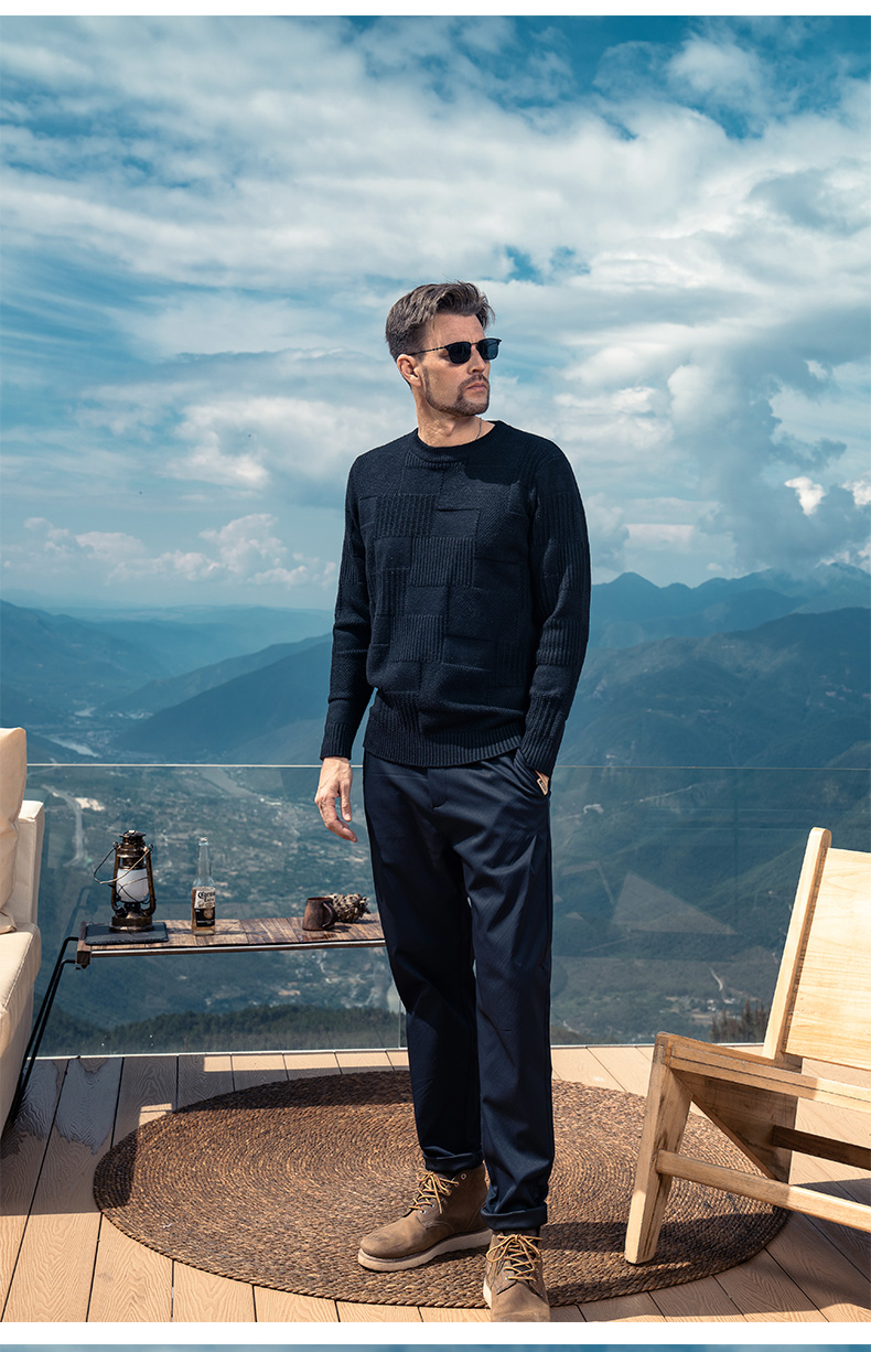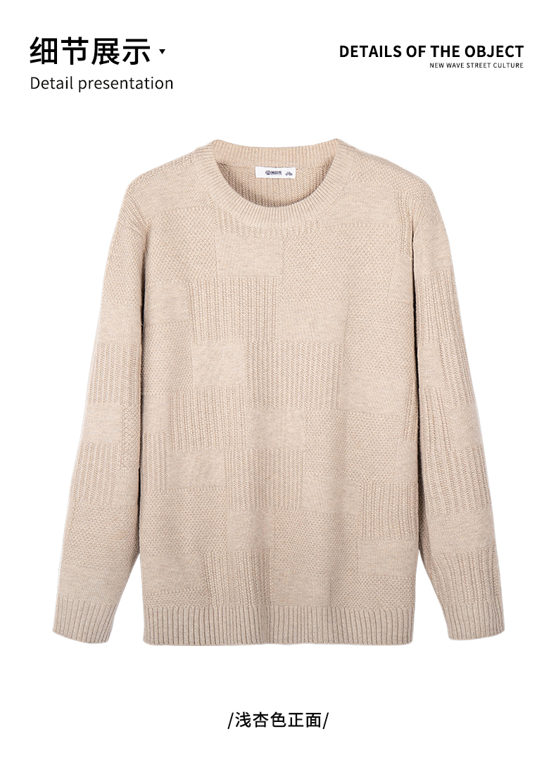 英爵倫軟糯厚實棋盤格毛衣男秋冬圓領套頭針織衫男士內搭打底上衣
