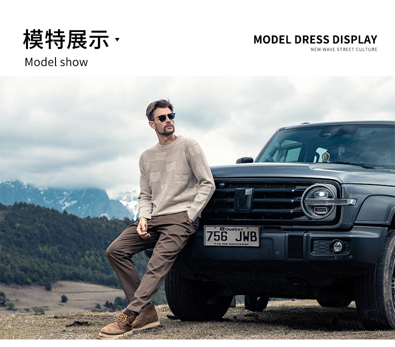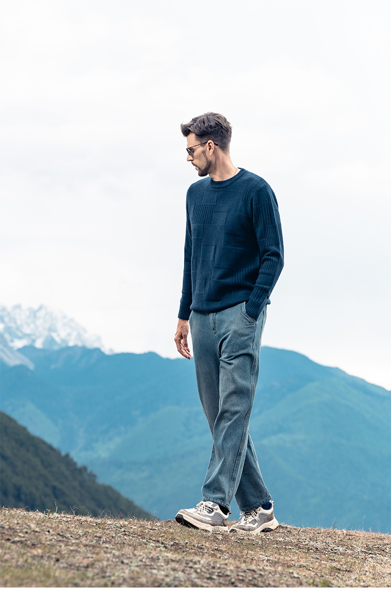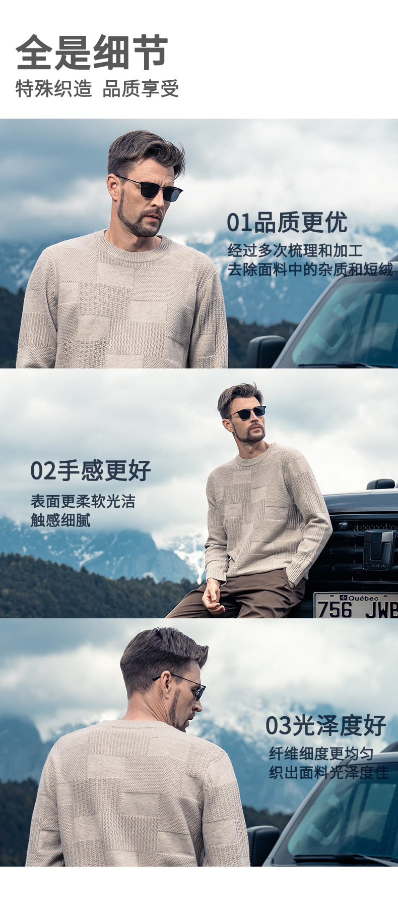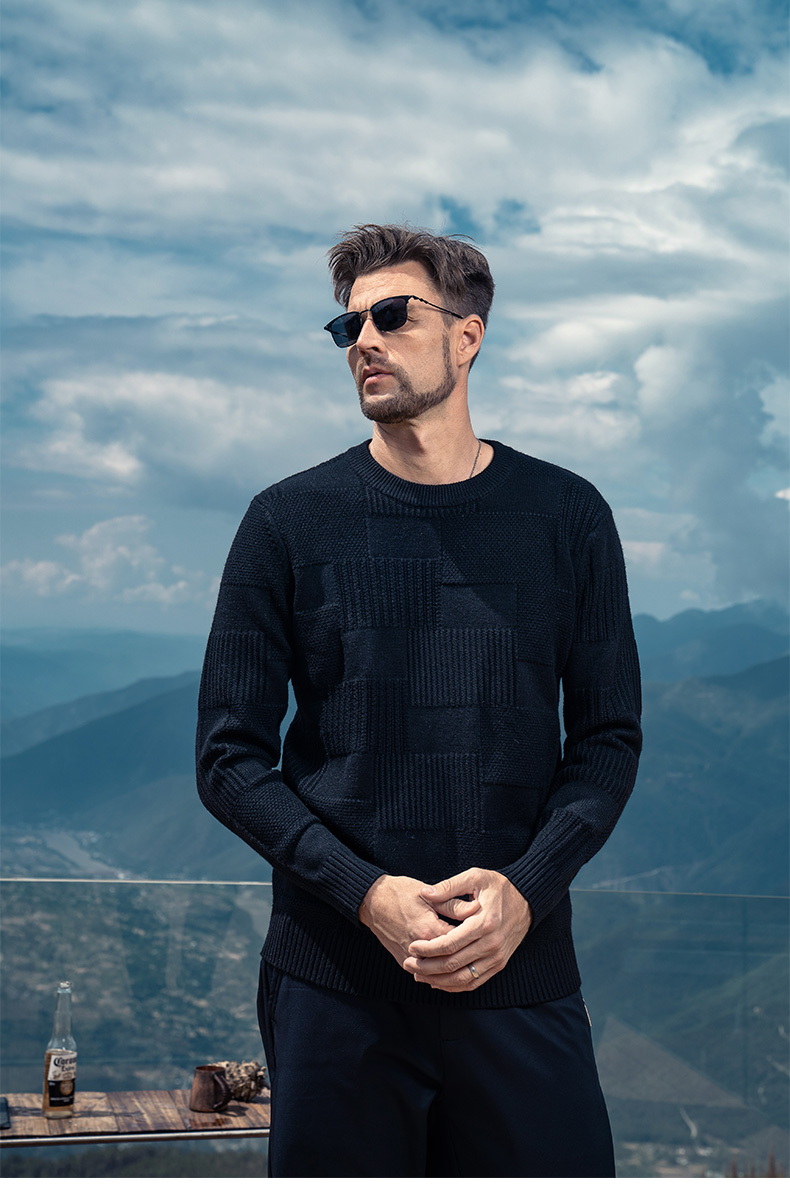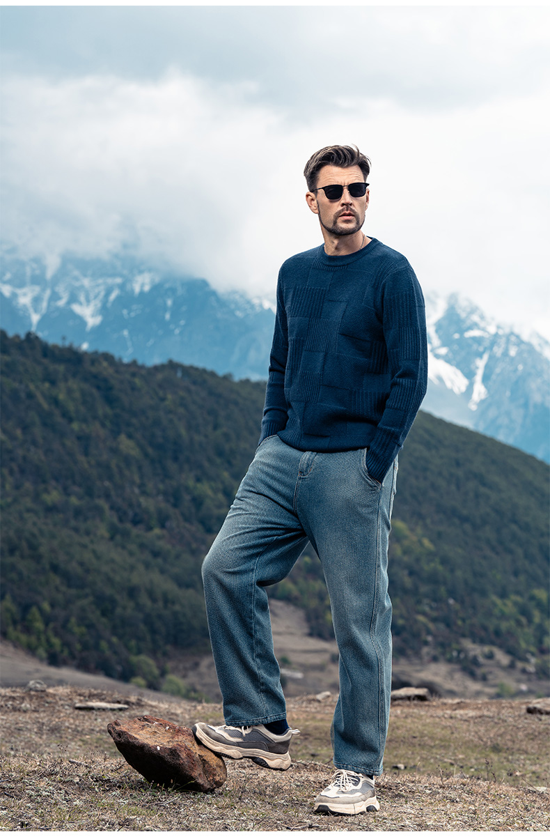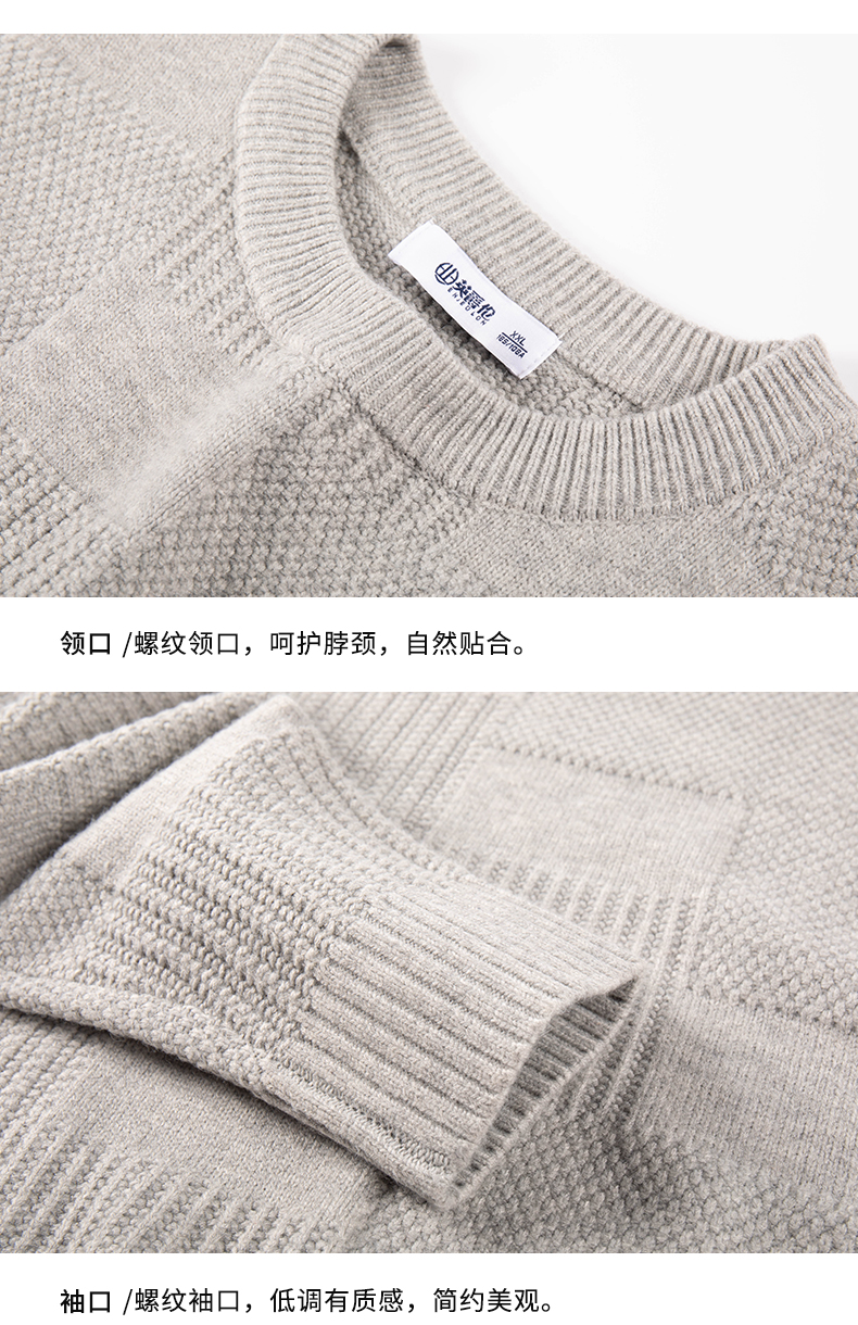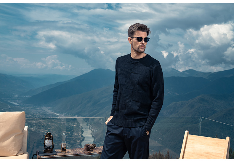 英爵倫軟糯厚實棋盤格毛衣男秋冬圓領套頭針織衫男士內搭打底上衣