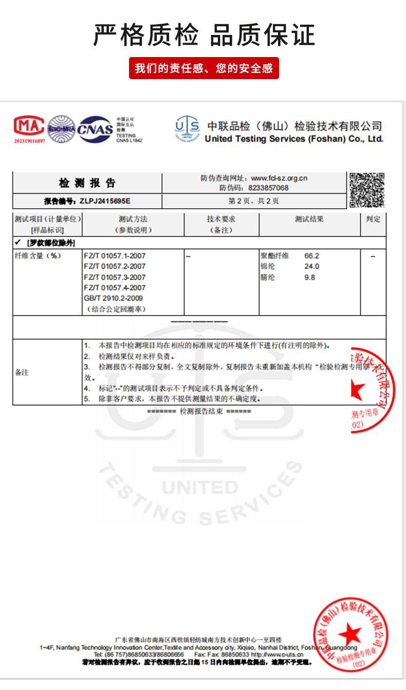 | 材質成分 | 聚酯纖維66.2% 聚醯胺纖維(錦綸)24% 改性聚丙烯腈纖維(改性腈綸)9.8% |