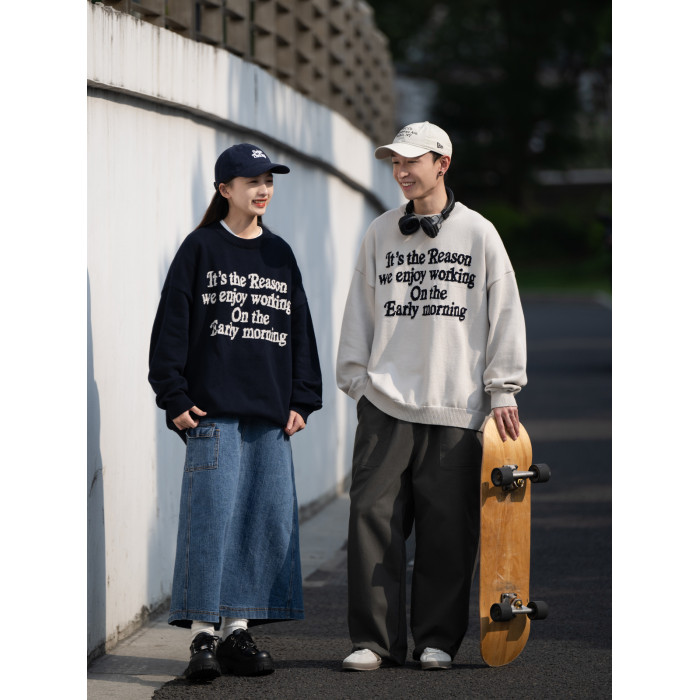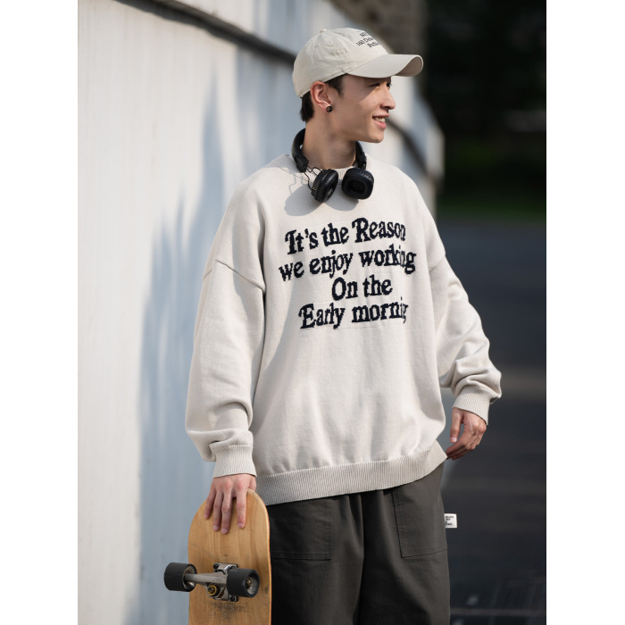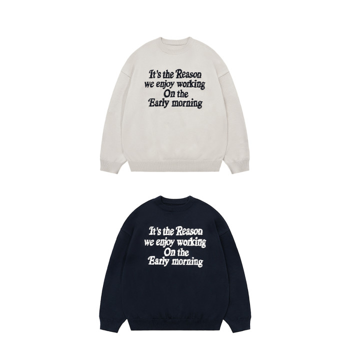 BELLKENIDEA 秋冬保暖圓領字母排版提花粗針毛衣男女潮流行情侶裝