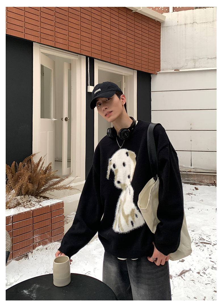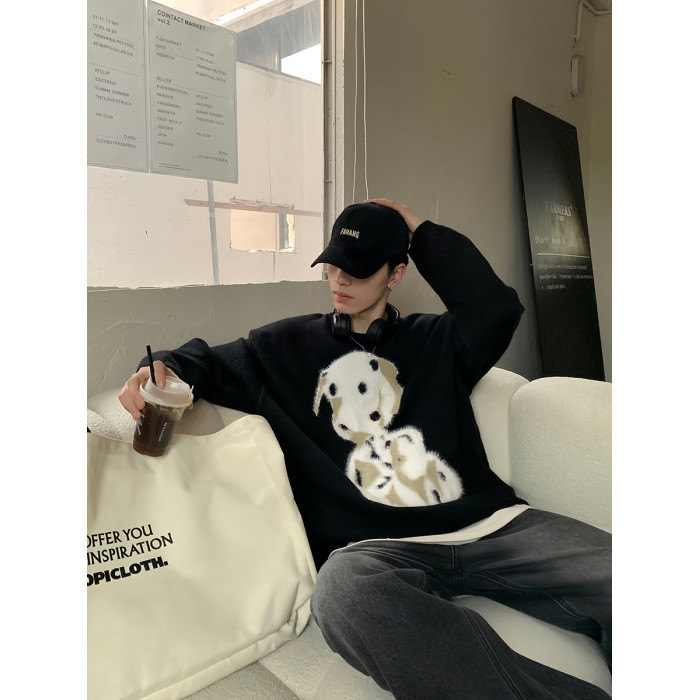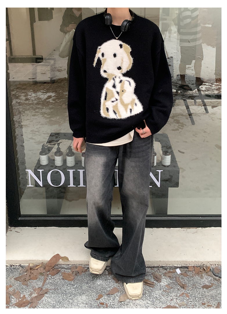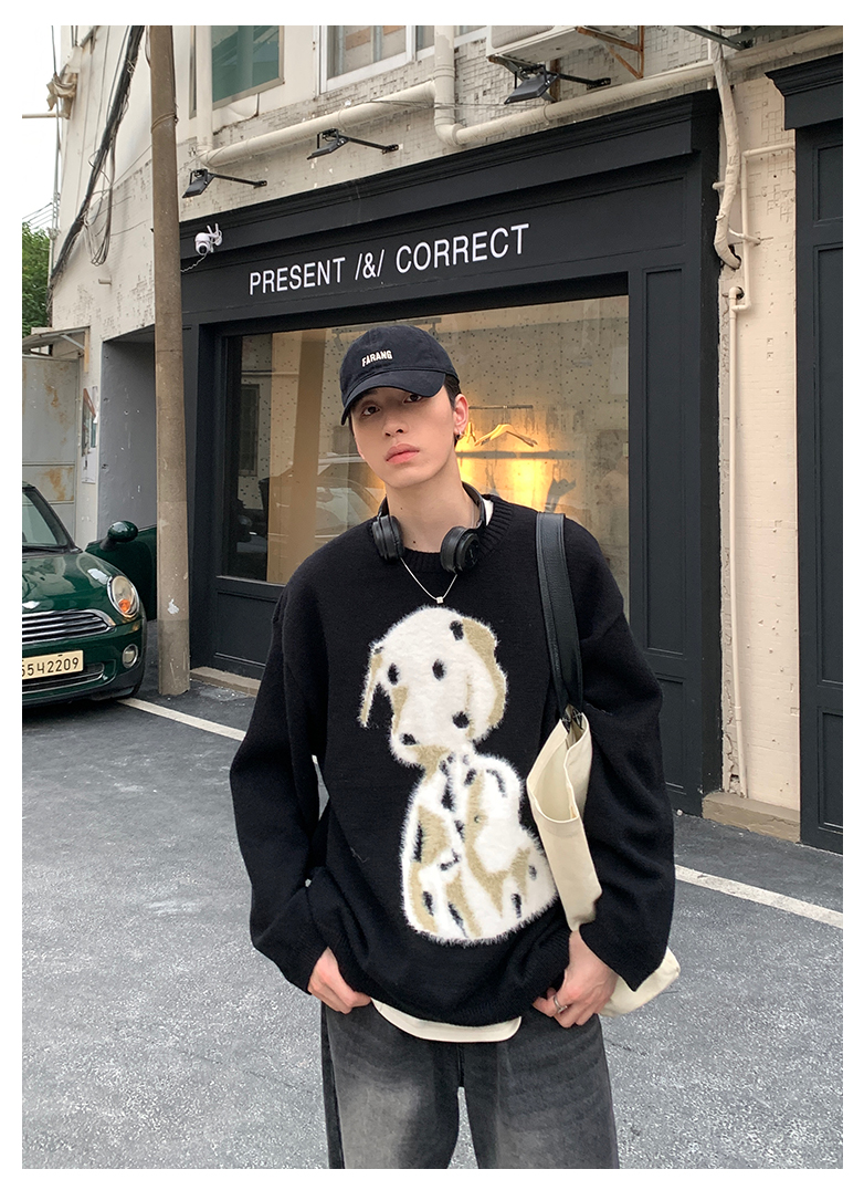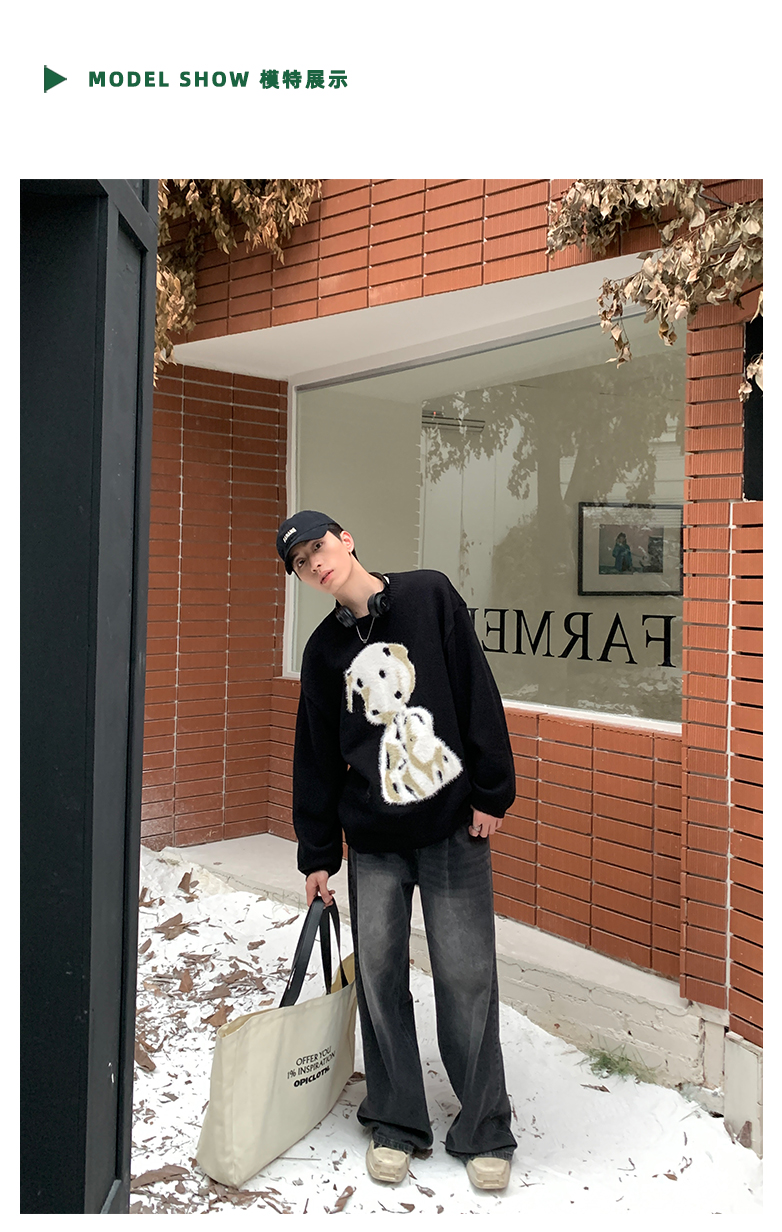 ONELYC1NS毛絨小狗圓領針織衫男女同款秋冬小衆套頭百搭寬松毛衣