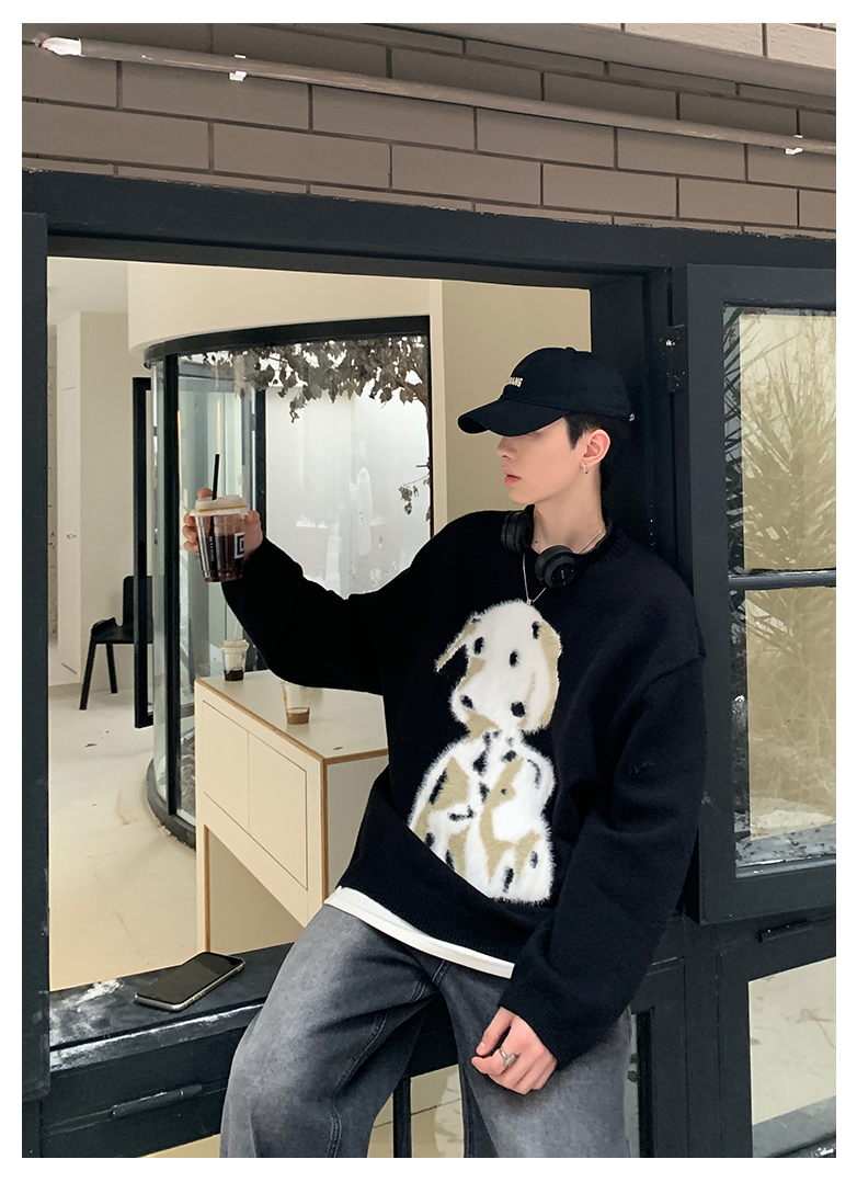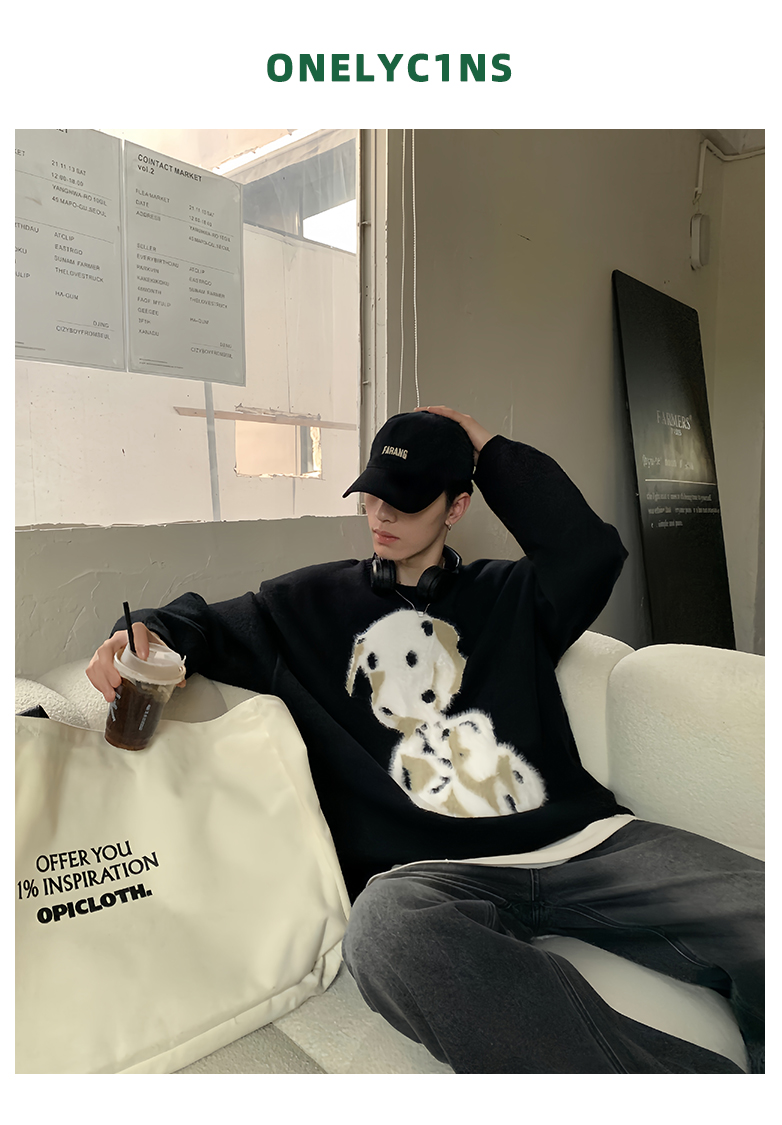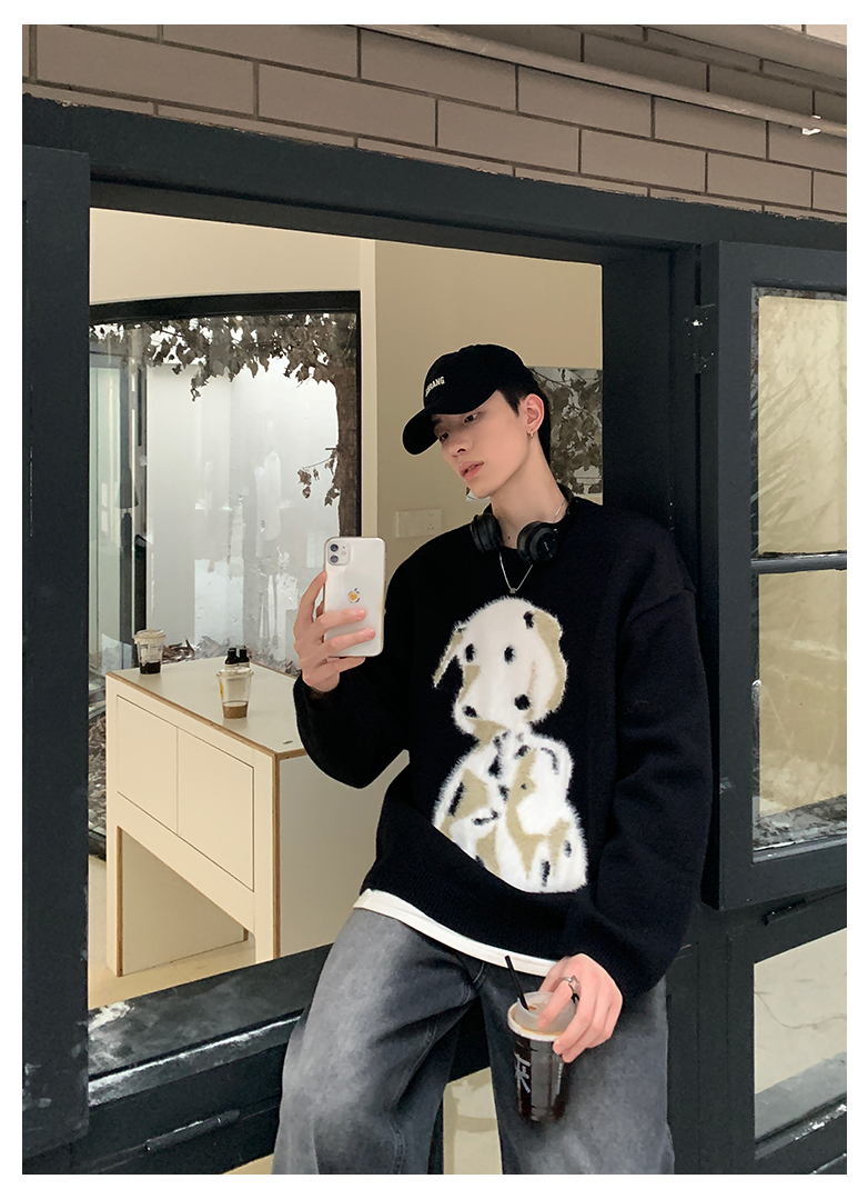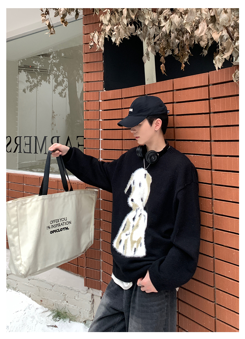 ONELYC1NS毛絨小狗圓領針織衫男女同款秋冬小衆套頭百搭寬松毛衣