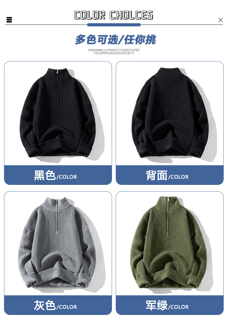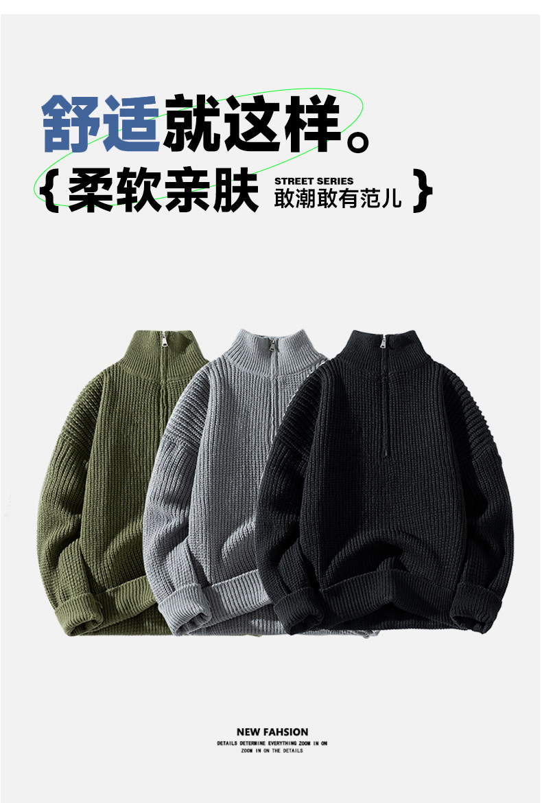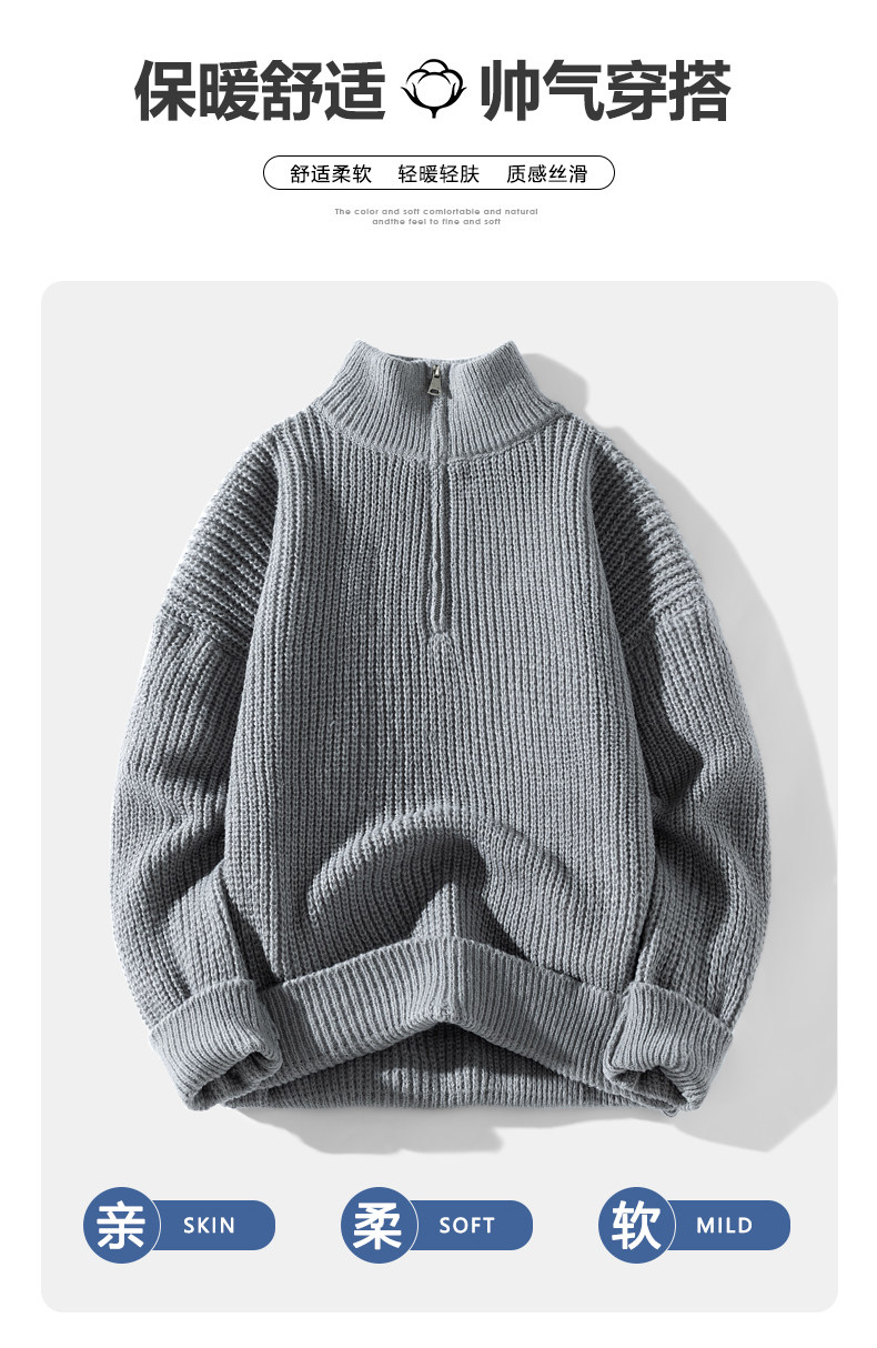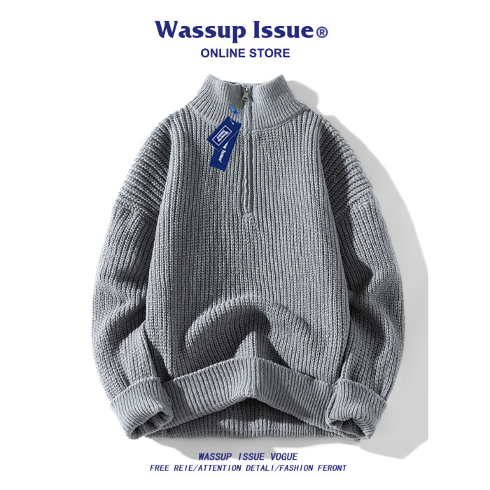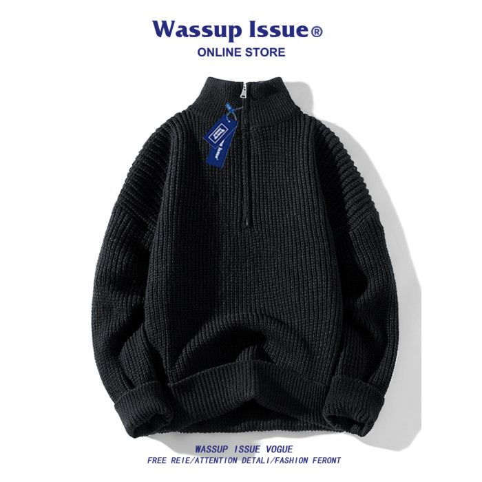 WASSUP ISSUE美式潮流半拉鍊純色針織衫男款春秋季痞帥情侶毛衣男