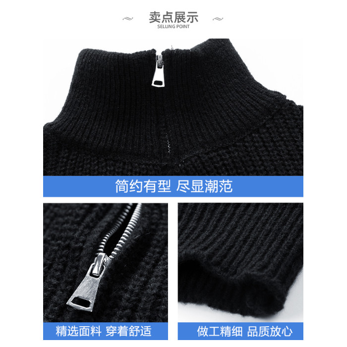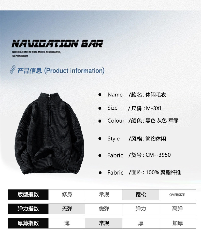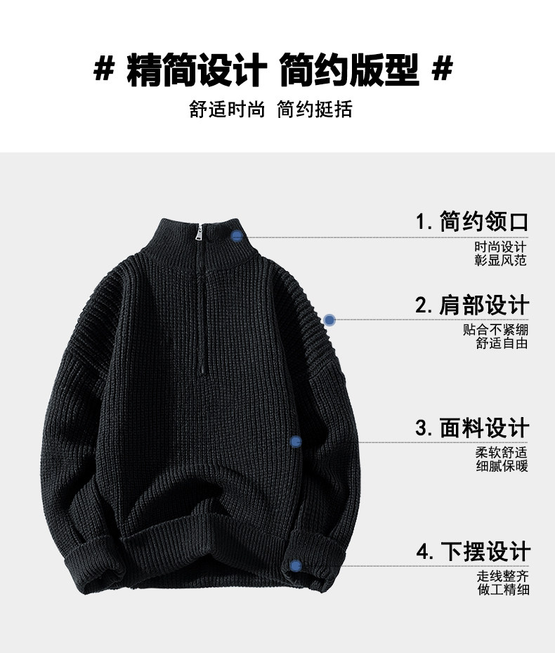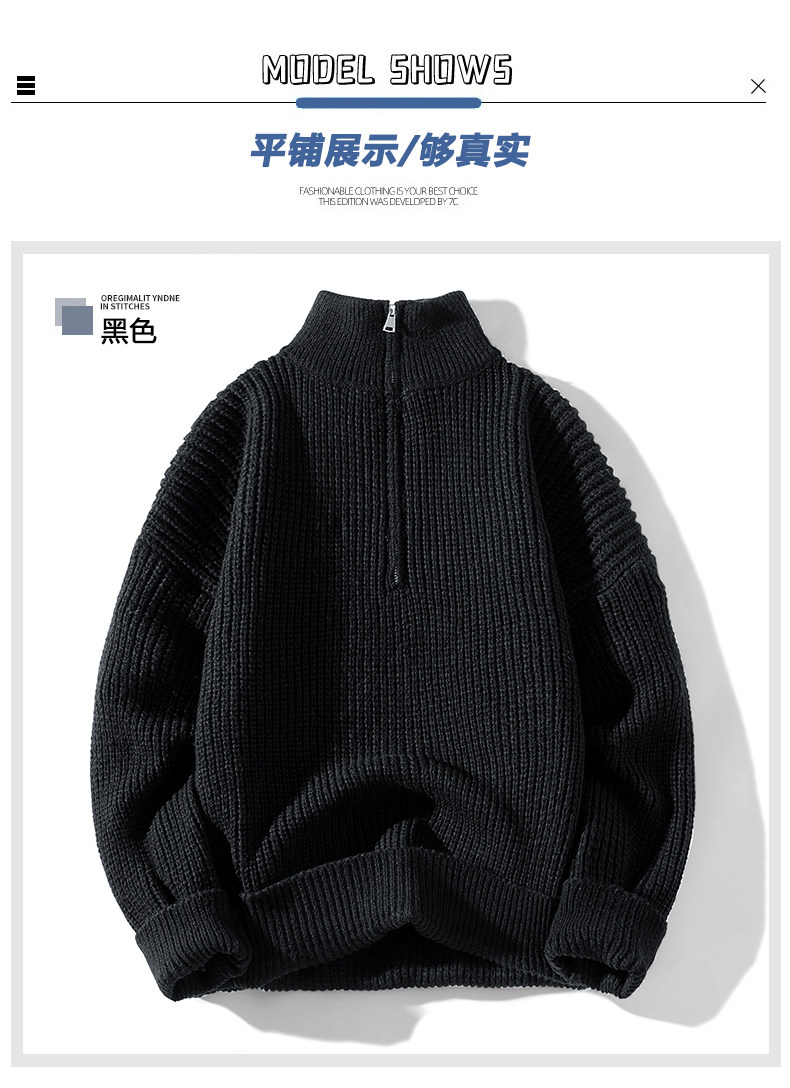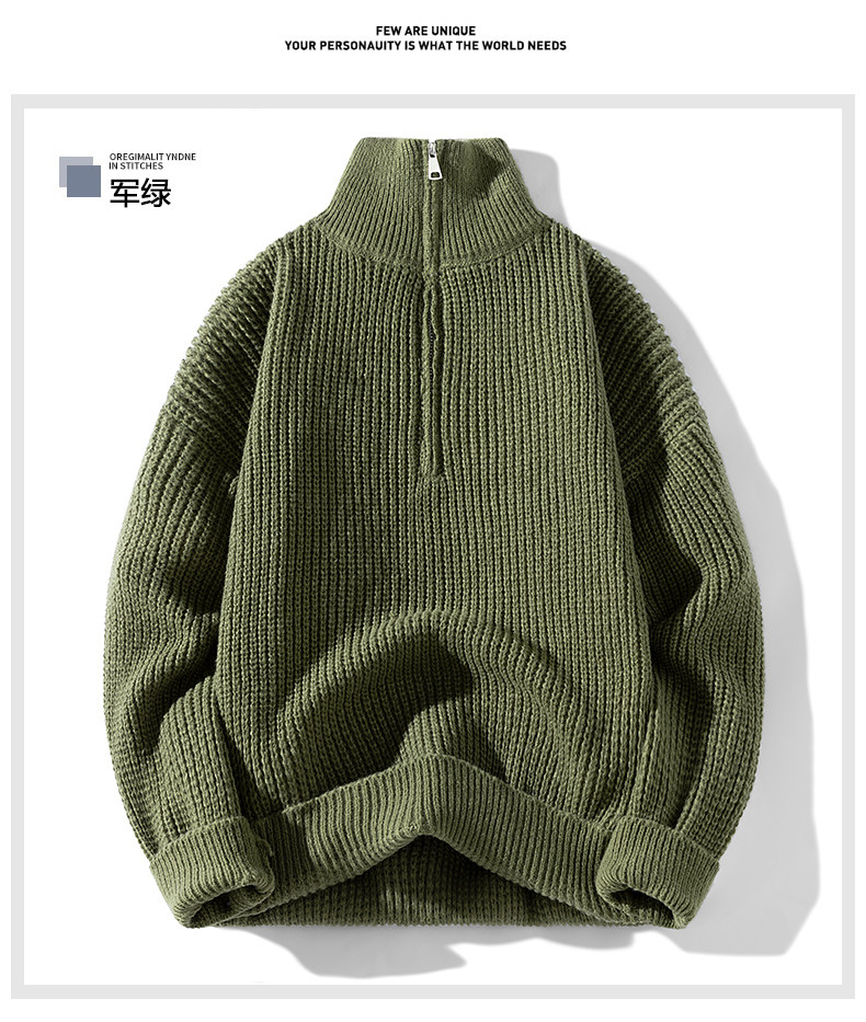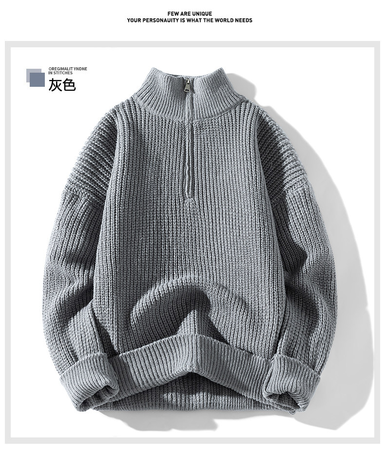 WASSUP ISSUE美式潮流半拉鍊純色針織衫男款春秋季痞帥情侶毛衣男