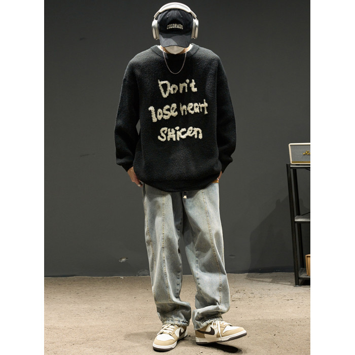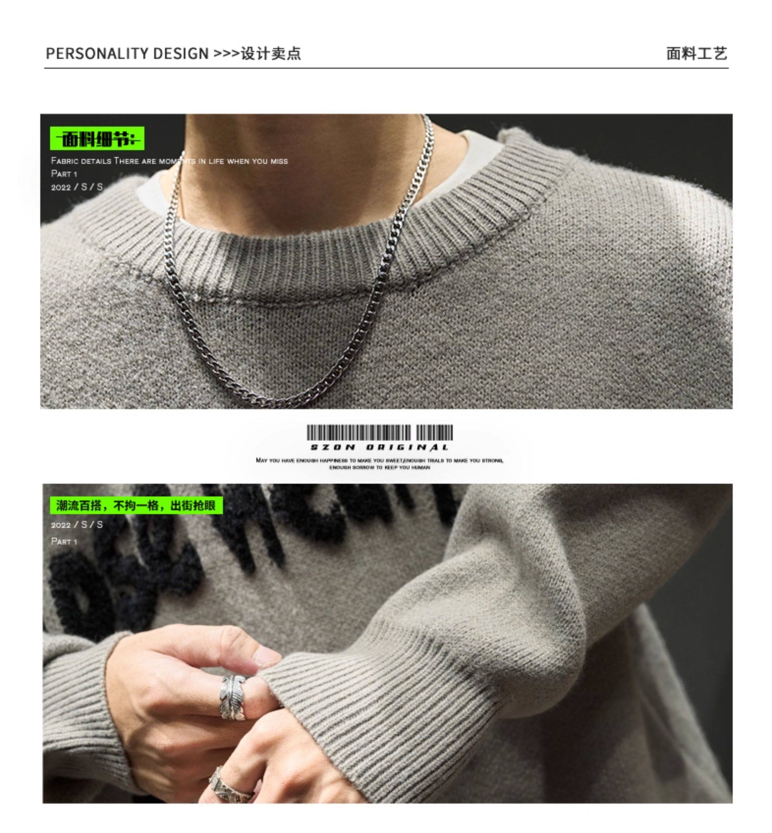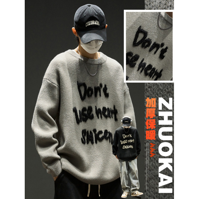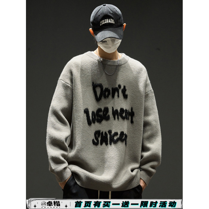 圓領毛衣男款秋冬美式潮牌內搭男生寬松慵懶風冬季加厚打底針織衫