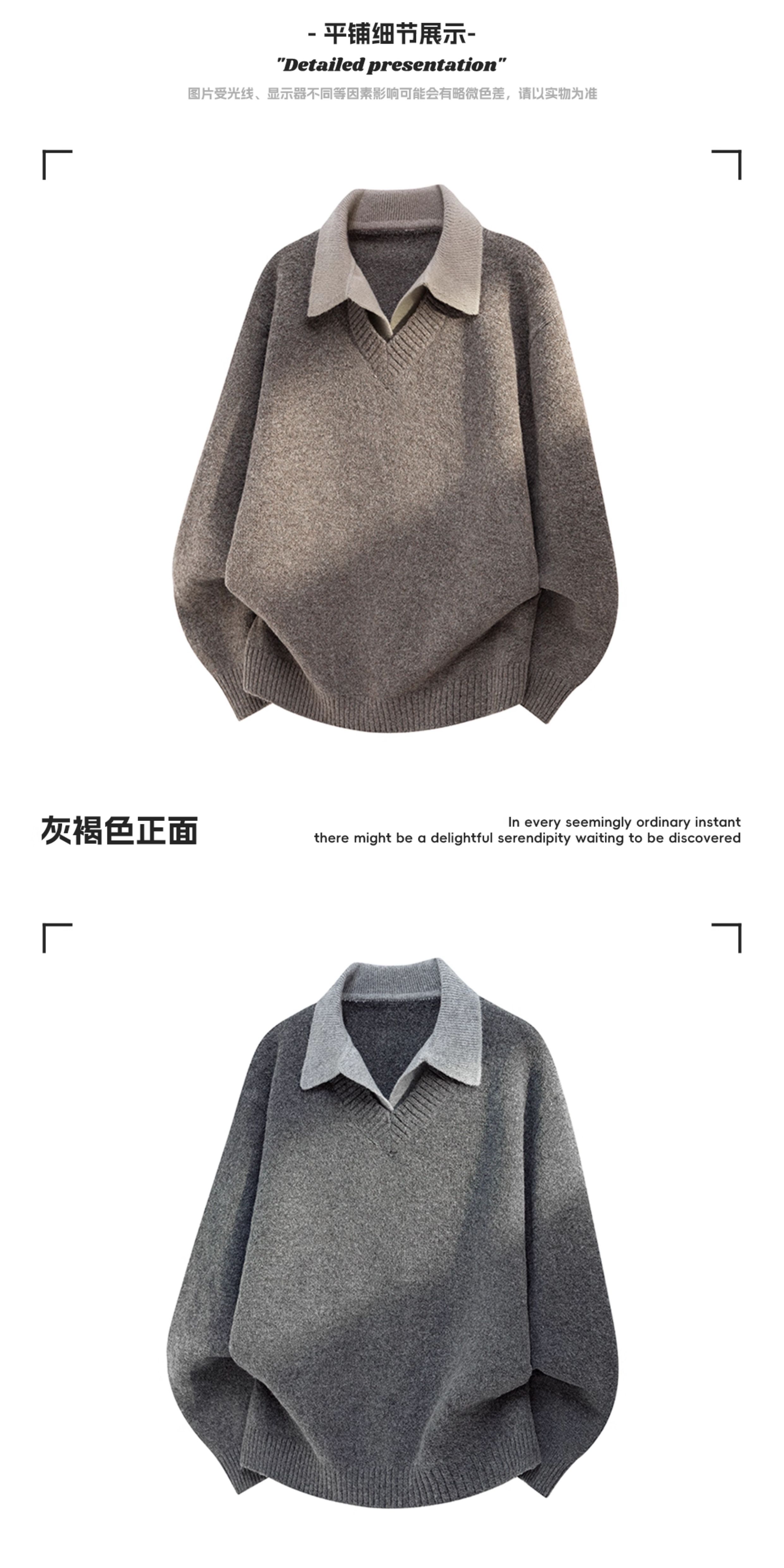 WASSUP ERIKA日系簡約翻領假兩件毛衣男秋冬新款休閒百搭針織衫女