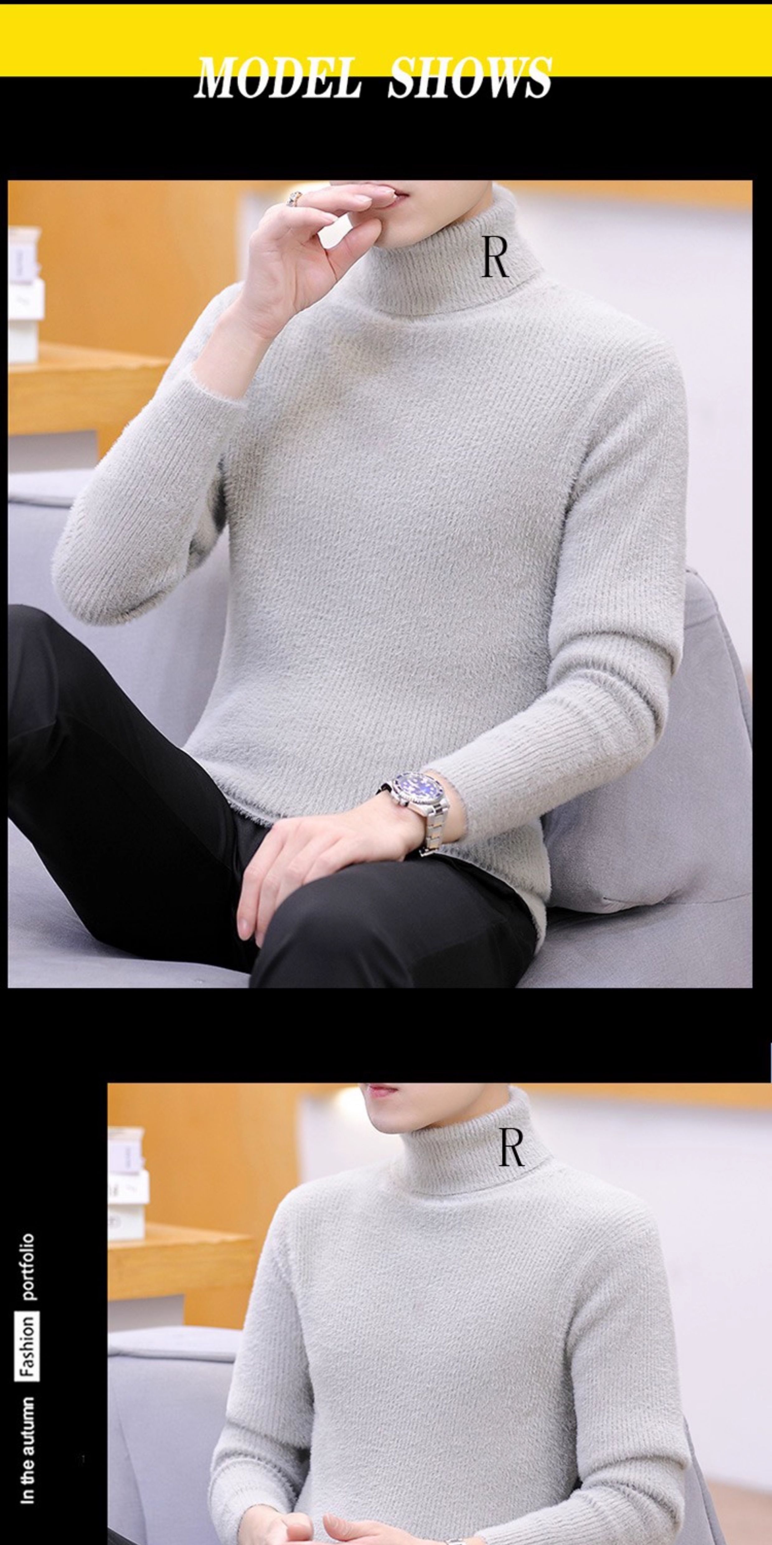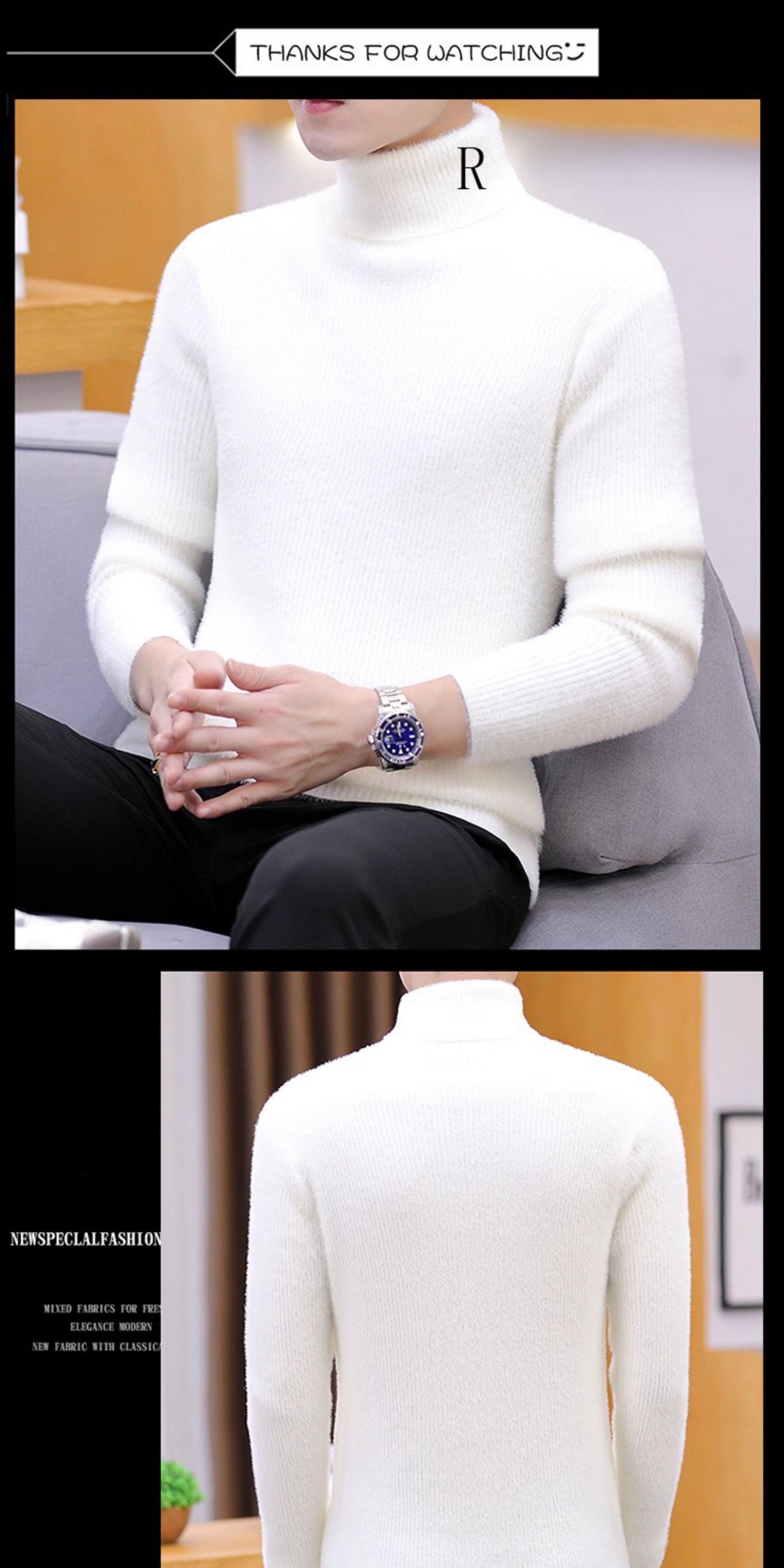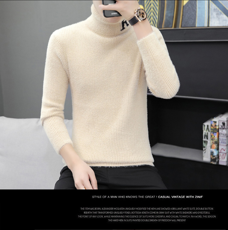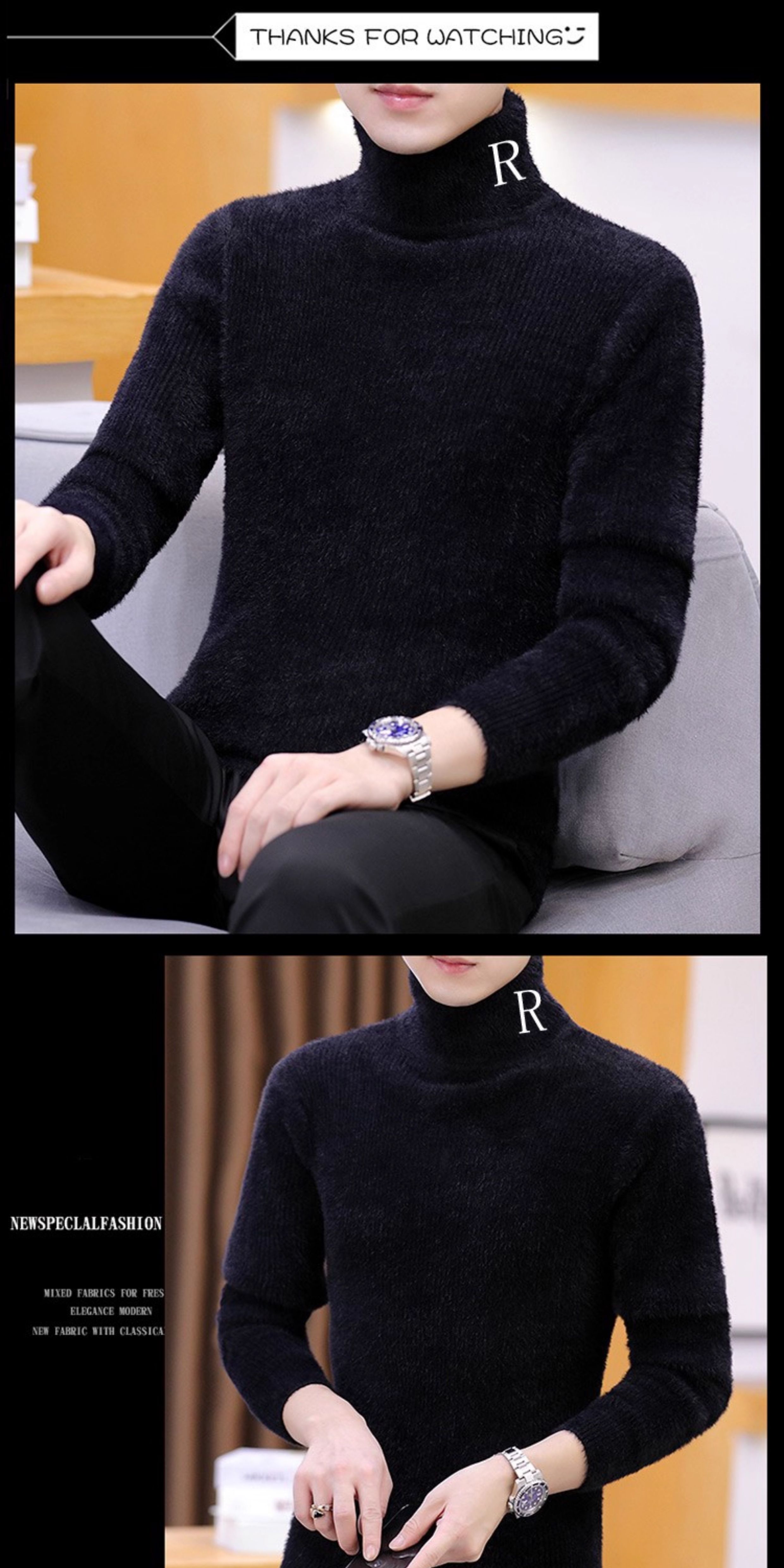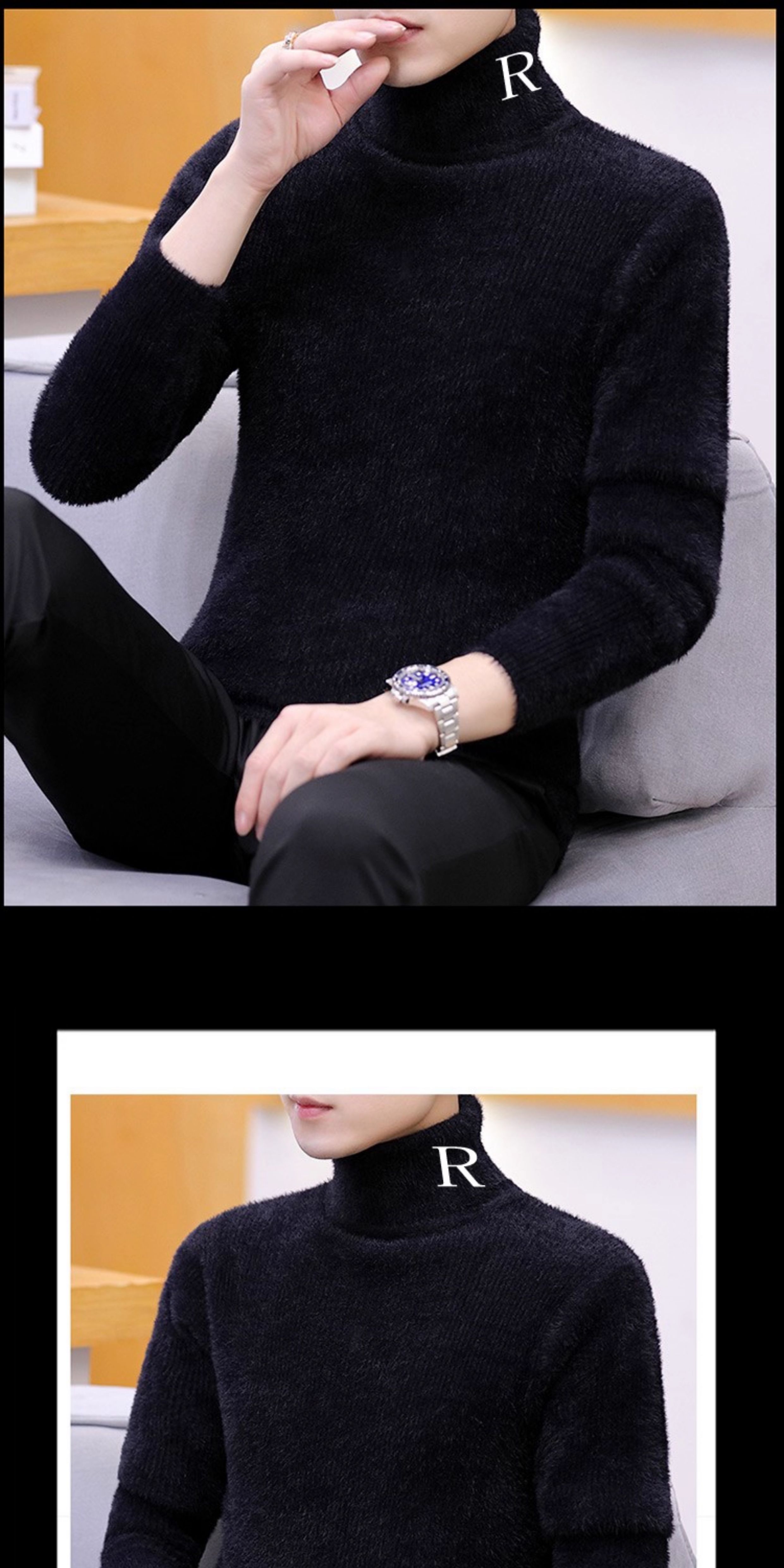 水貂絨高領毛衣男士打底衫2025秋冬季加絨厚款青少年絨毛衫男潮流