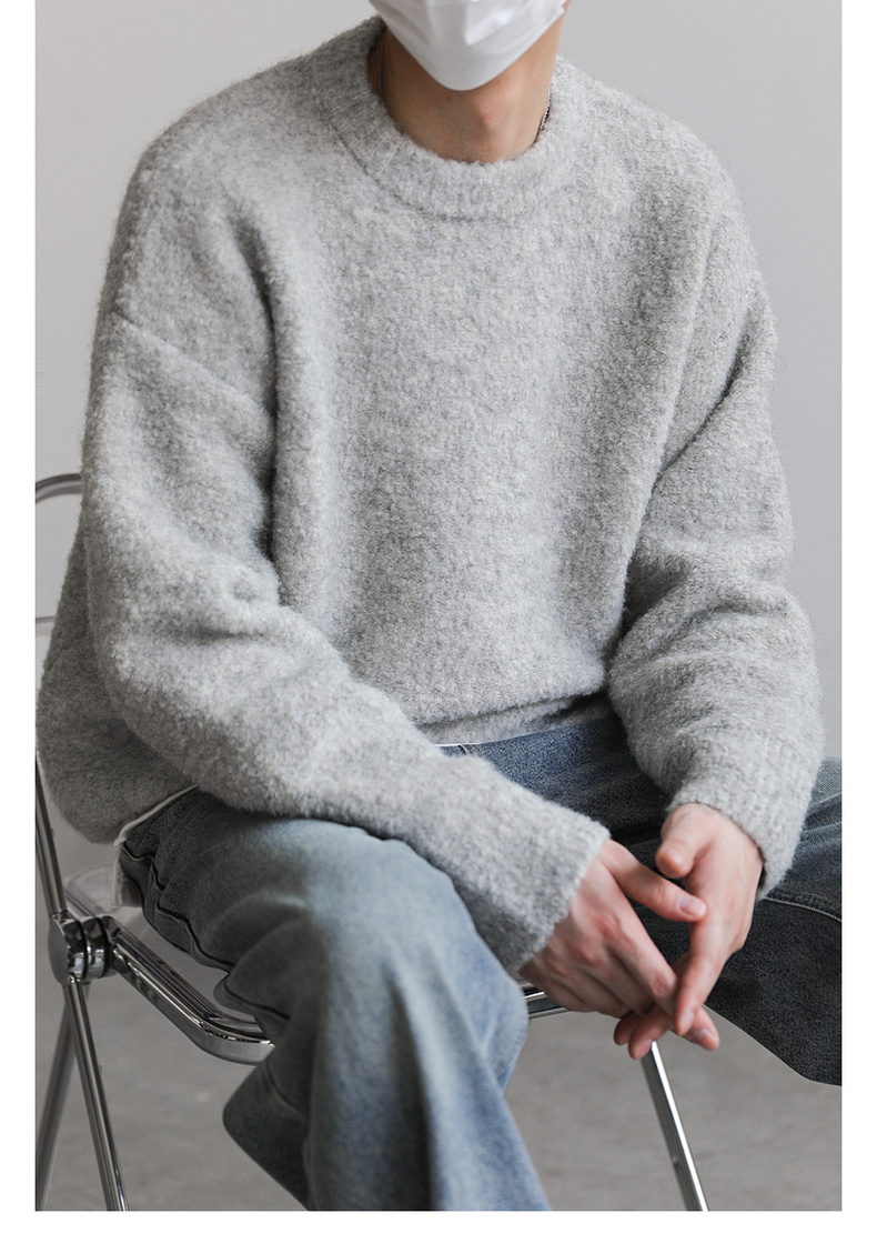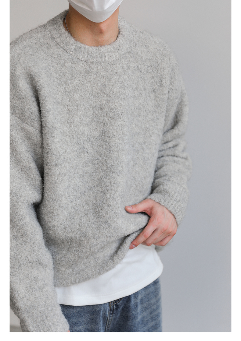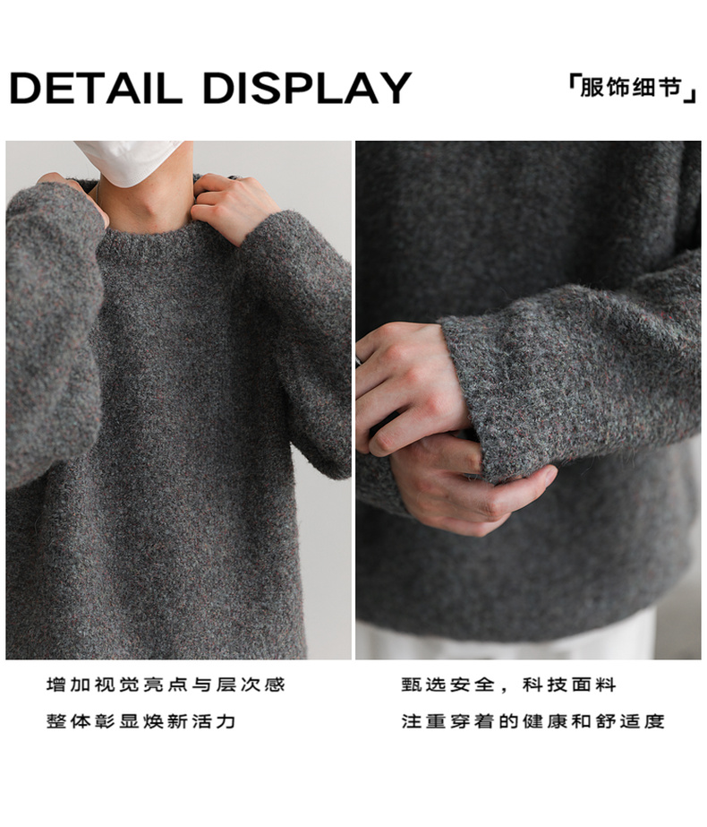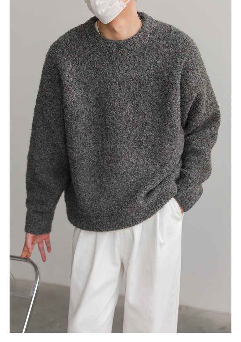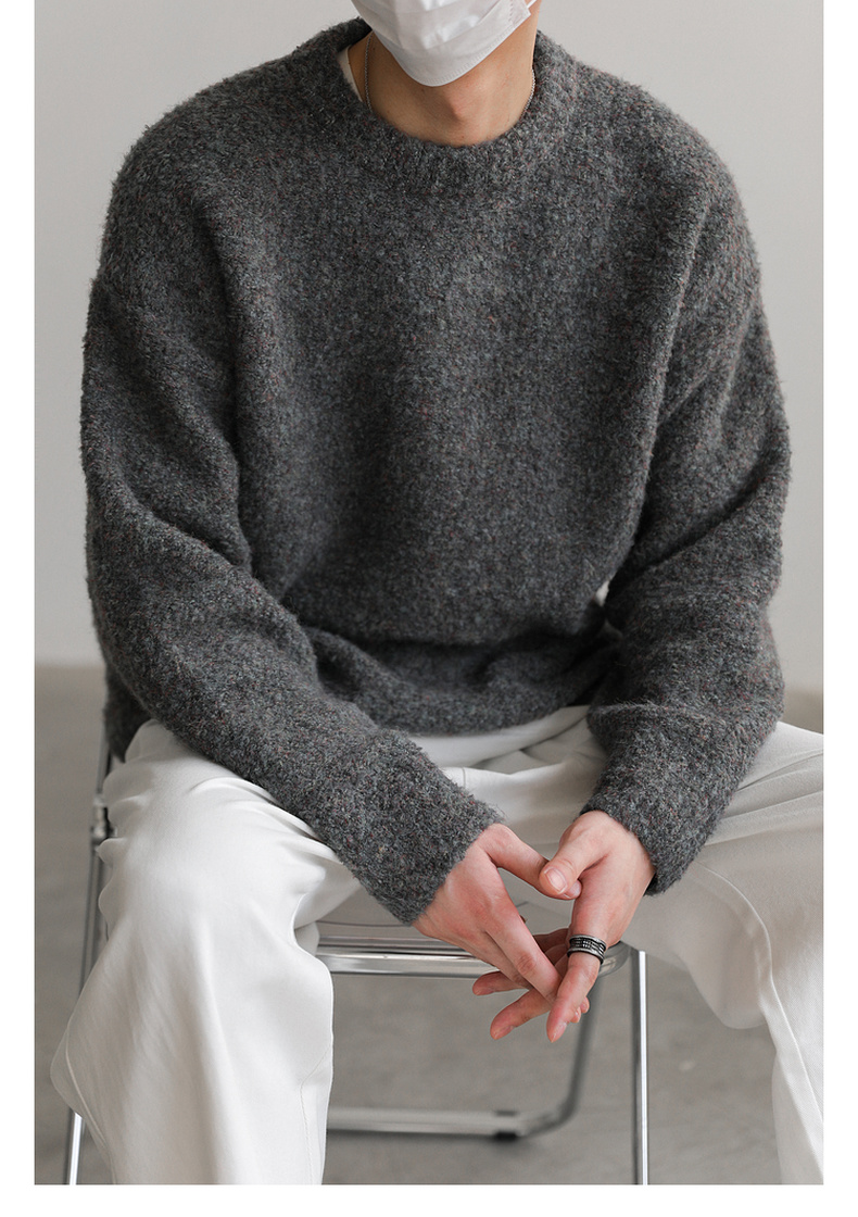 ZPZ韓國寬松圓領針織羊毛衫男秋冬季上衣潮牌INS加厚長袖套頭毛衣