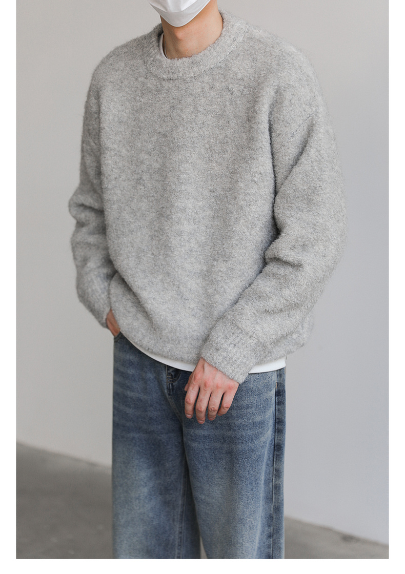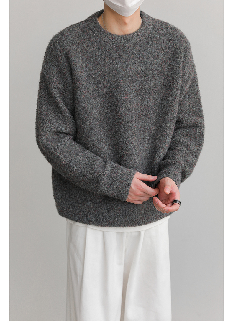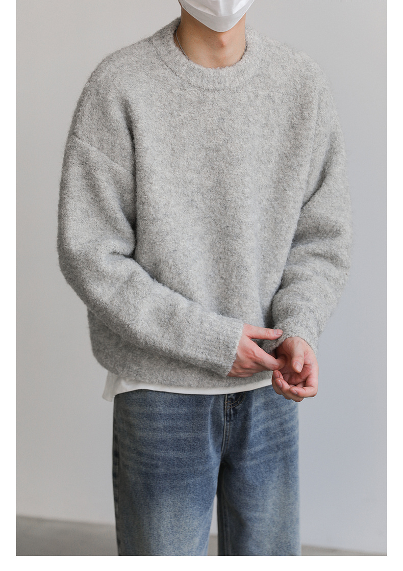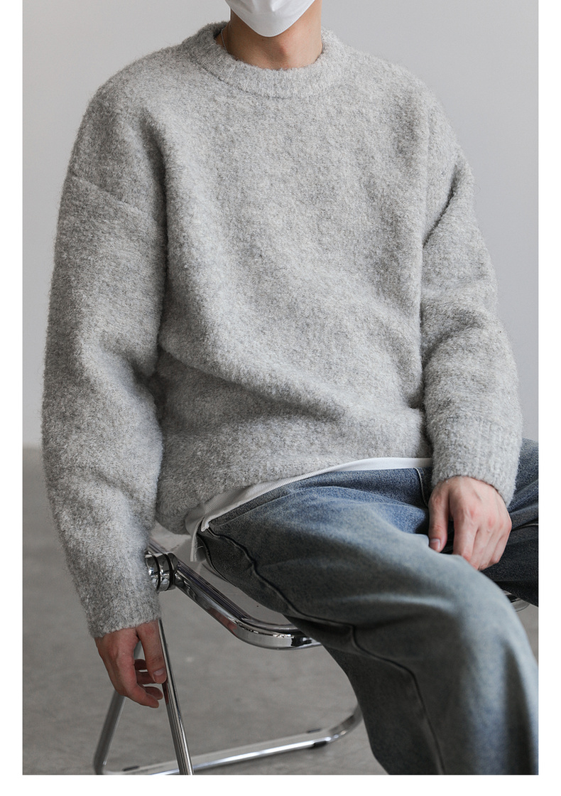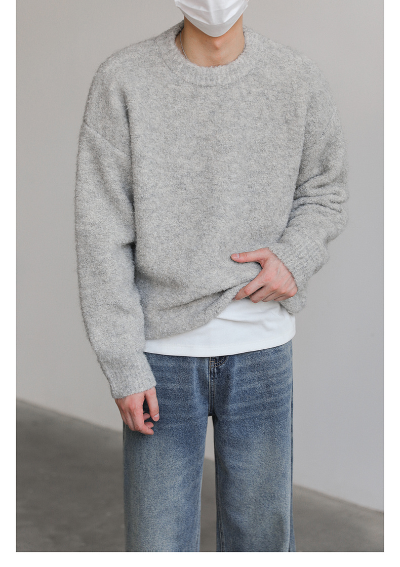 ZPZ韓國寬松圓領針織羊毛衫男秋冬季上衣潮牌INS加厚長袖套頭毛衣