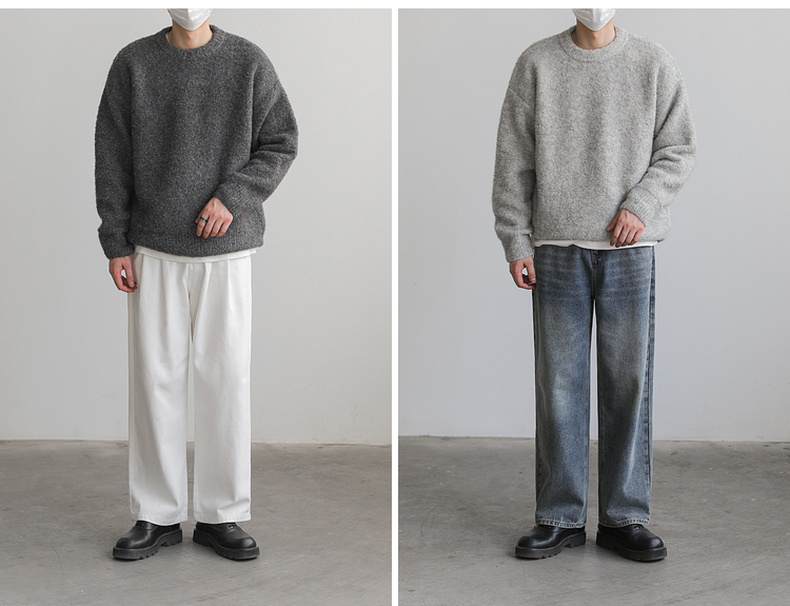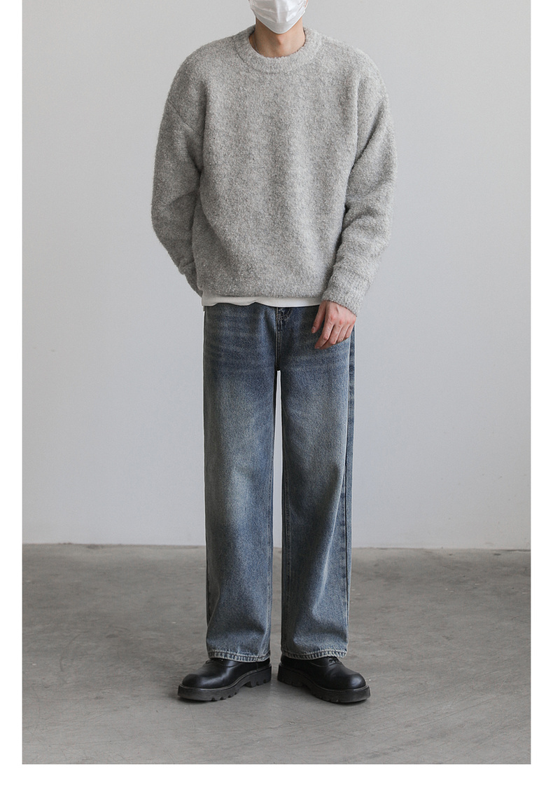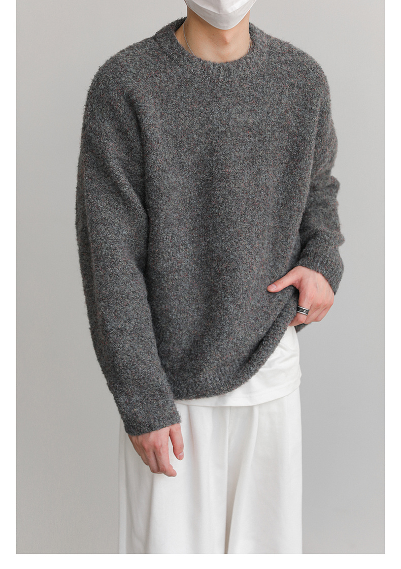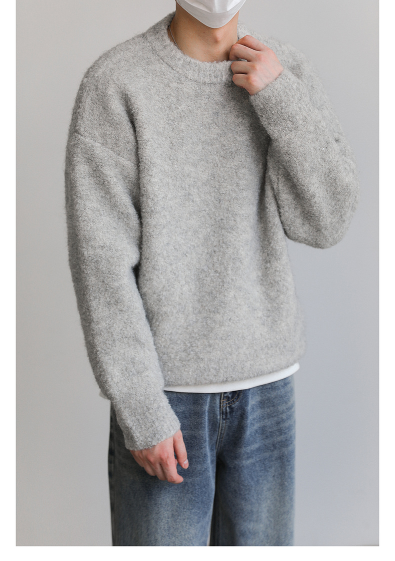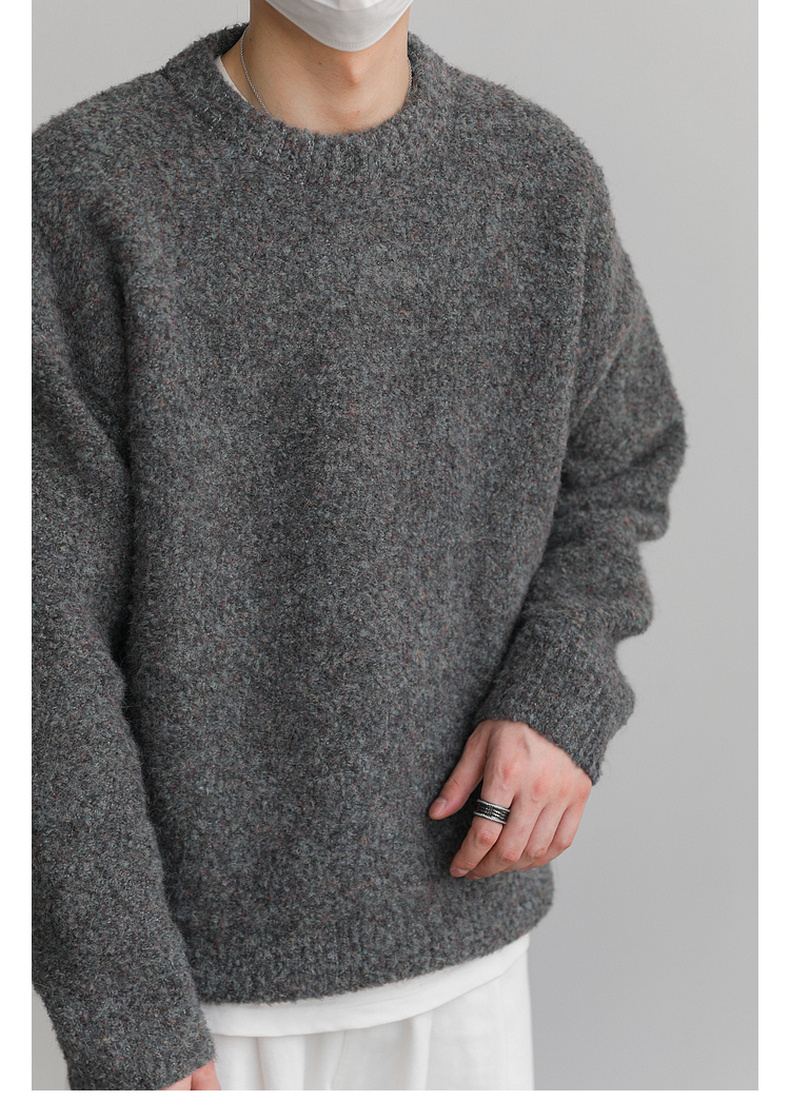 ZPZ韓國寬松圓領針織羊毛衫男秋冬季上衣潮牌INS加厚長袖套頭毛衣