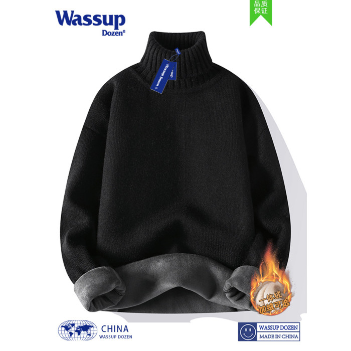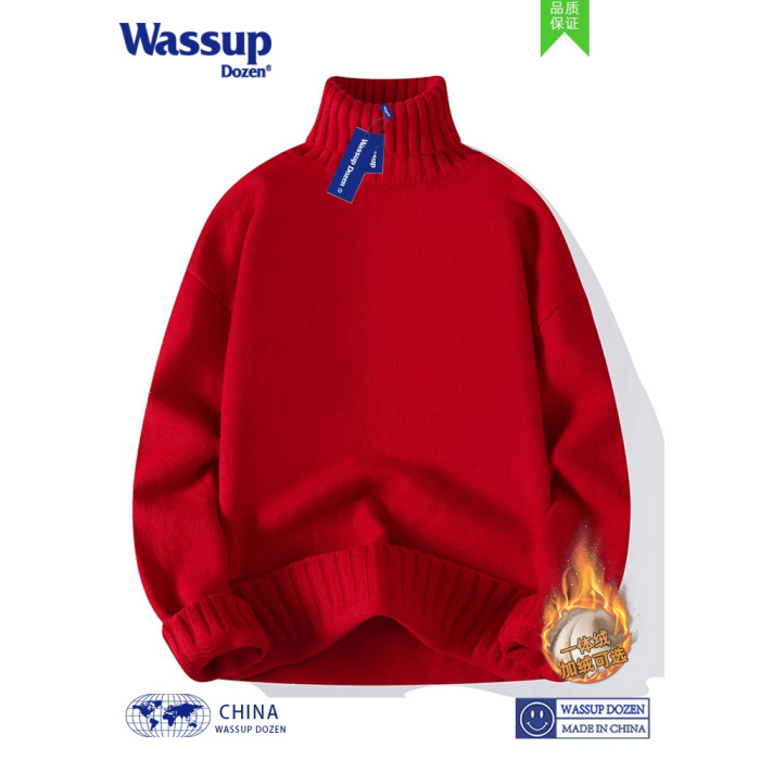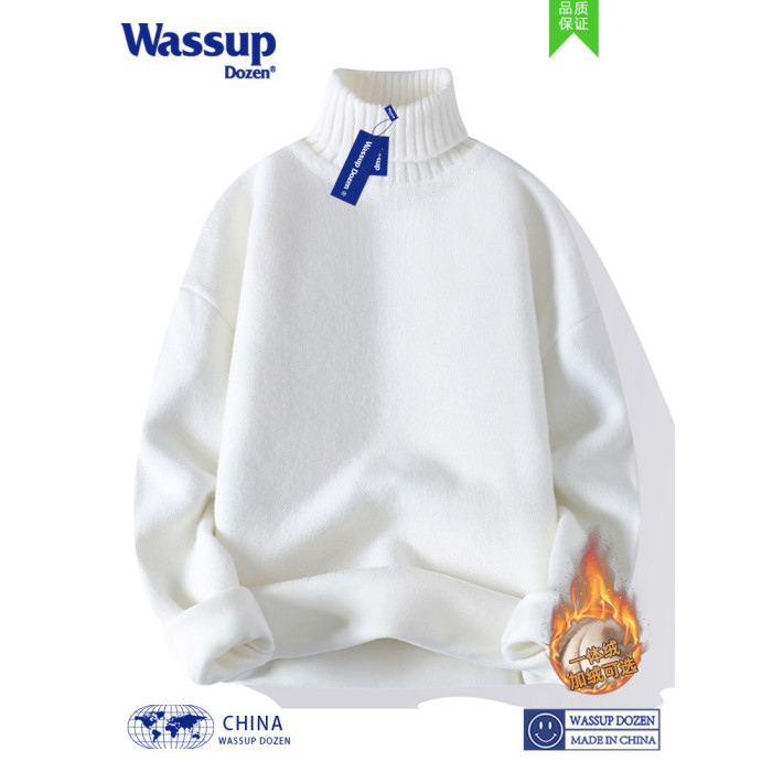 WASSUP DOZEN高領毛衣男女秋冬日系慵懶風情侶白色打底針織衫冬季