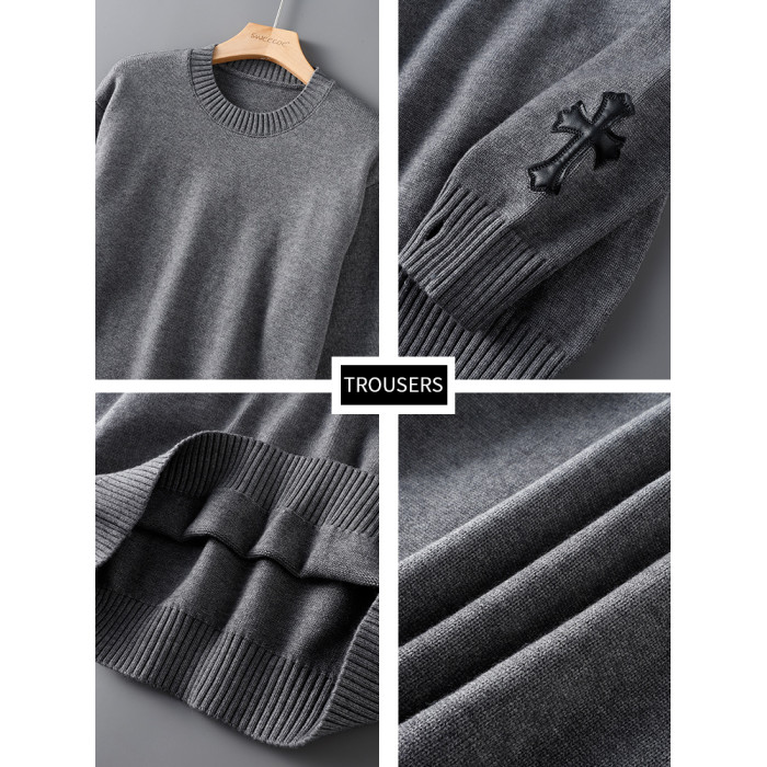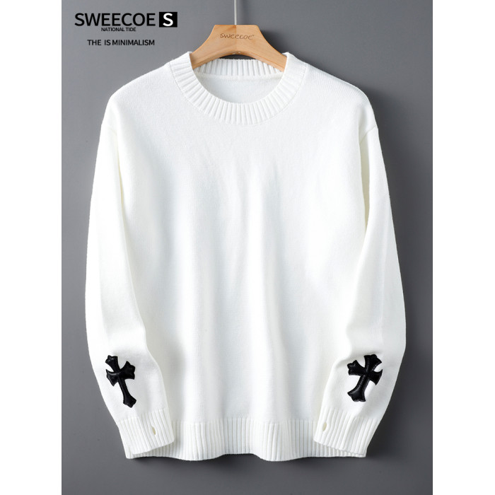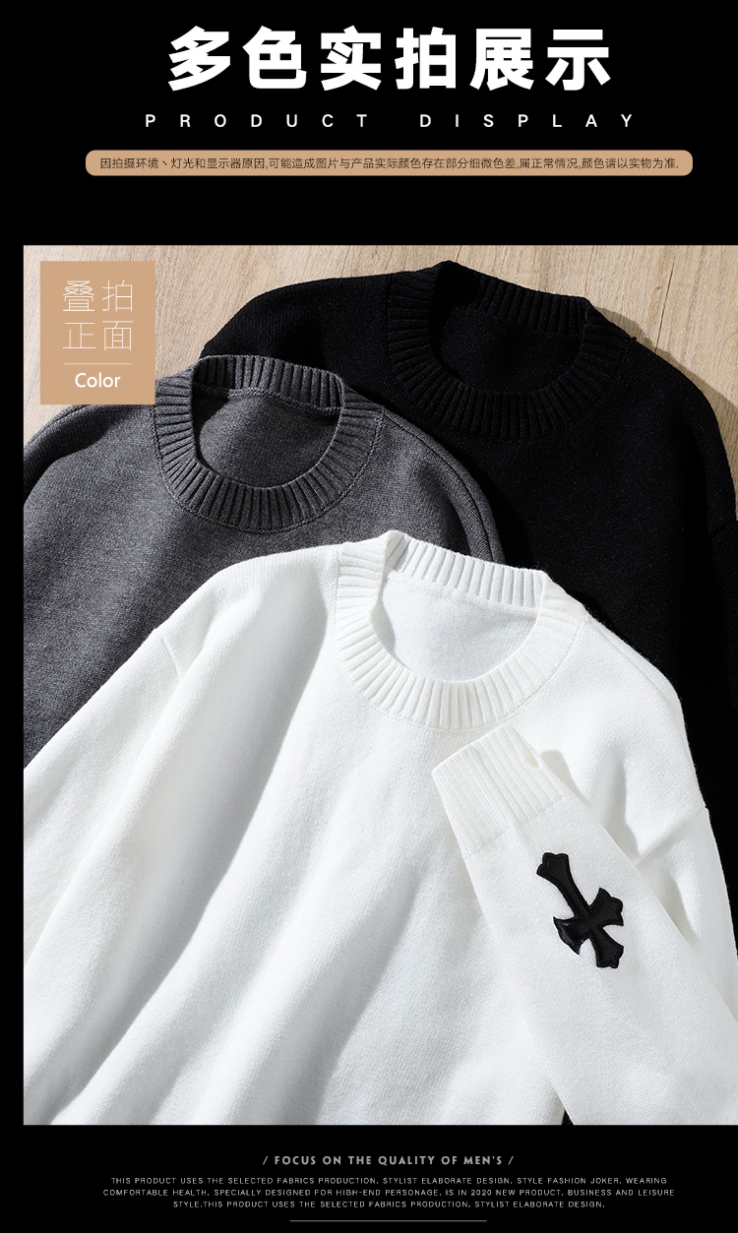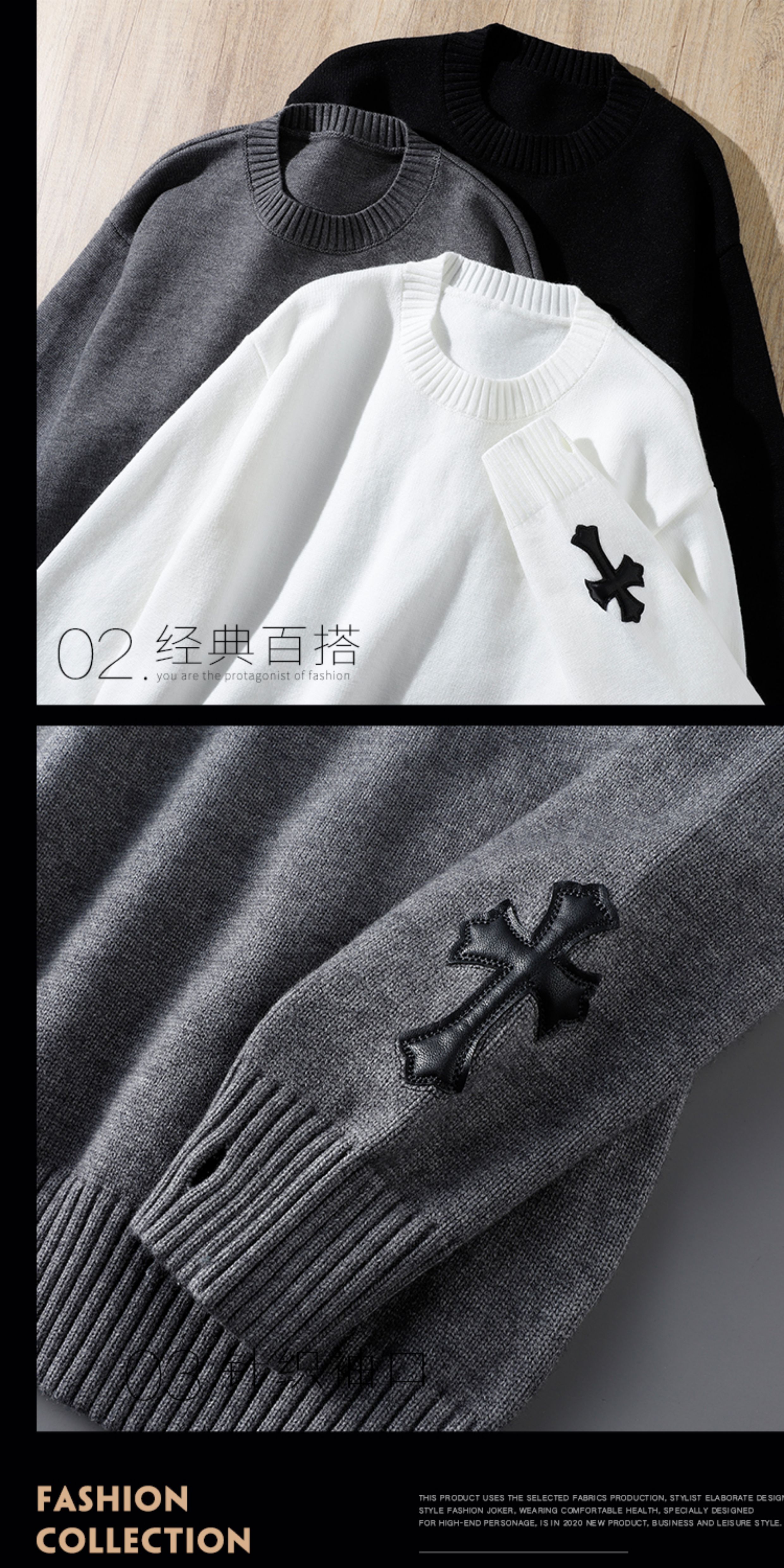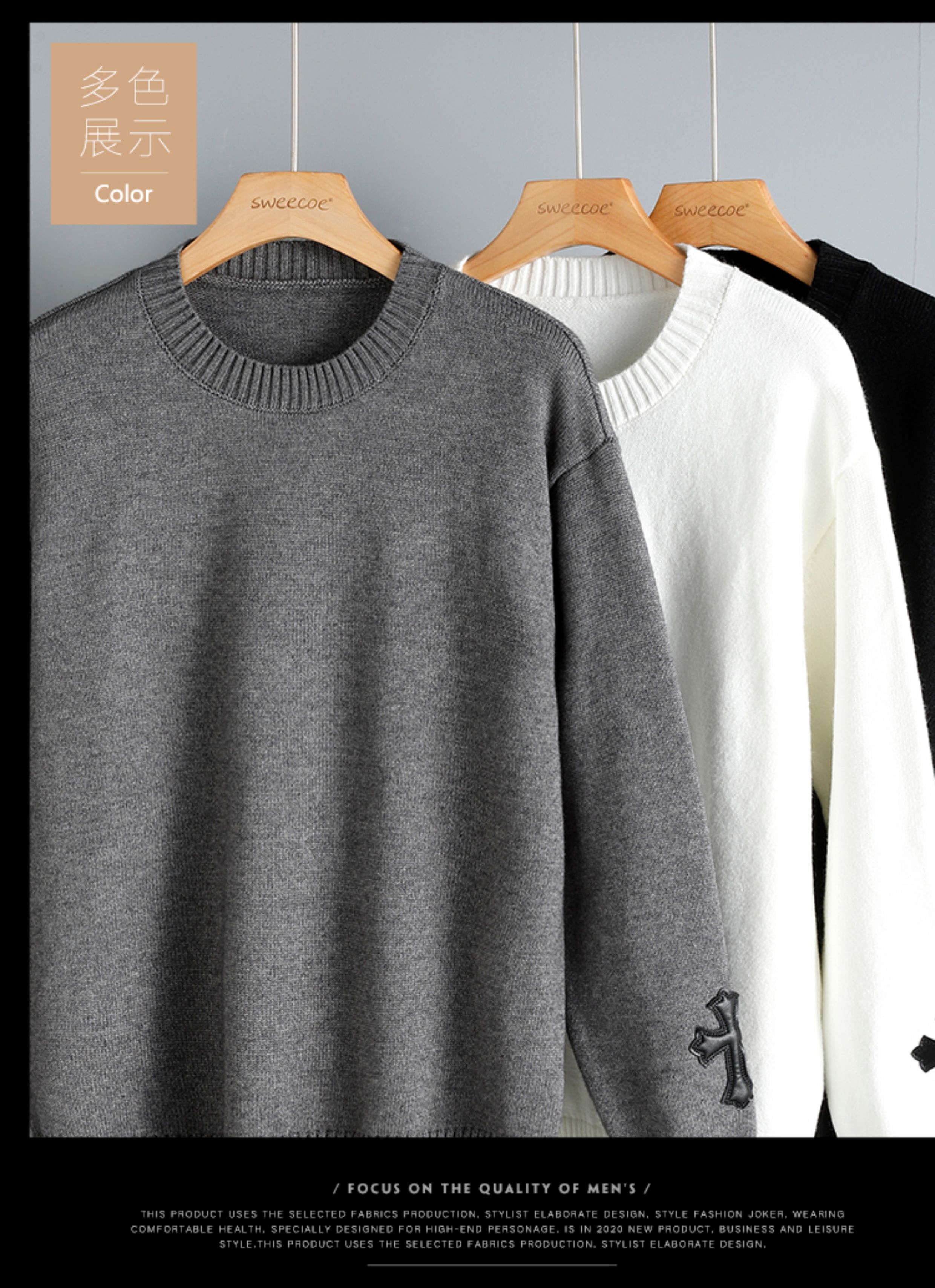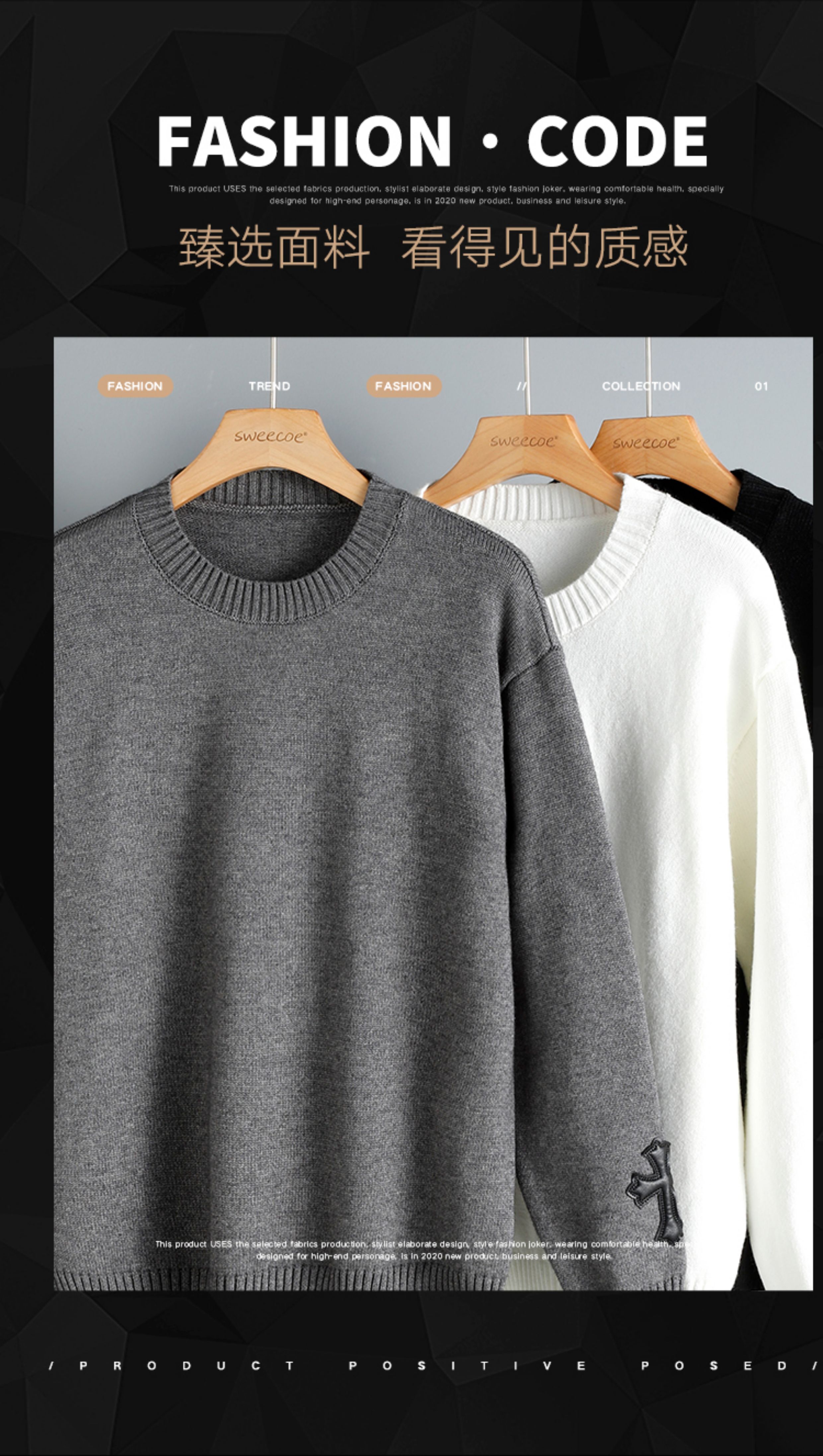SWEECOE氣質高支TB皮標 網紅ins潮牌寬松毛衣男士秋冬時尚慵懶風