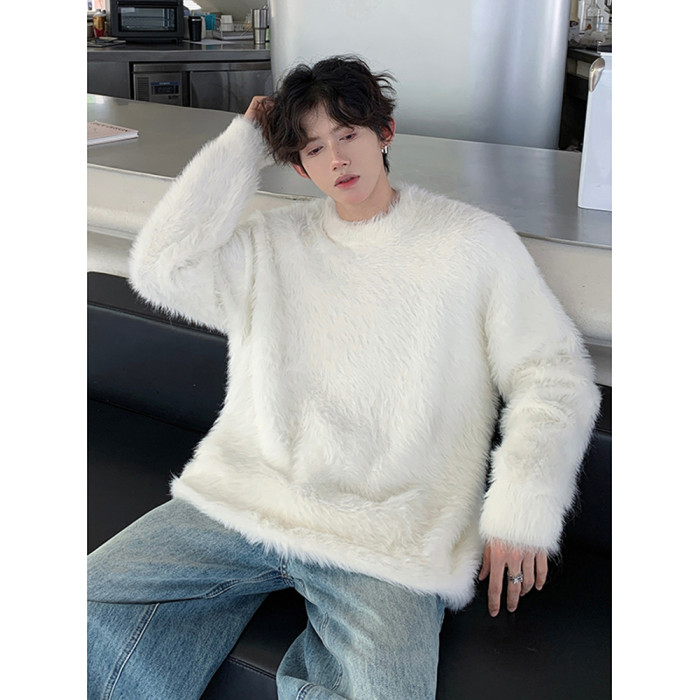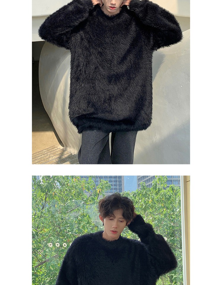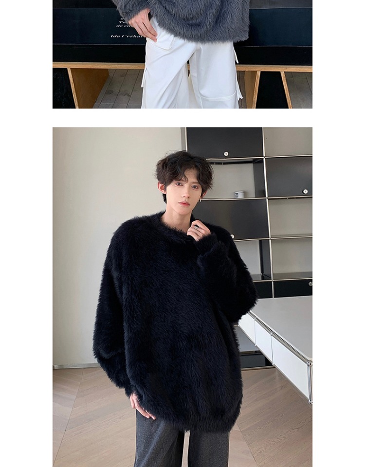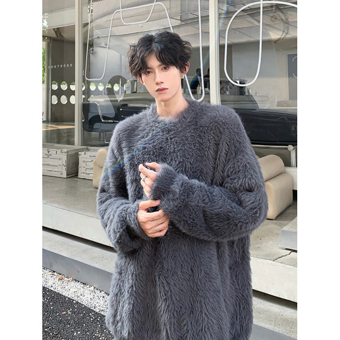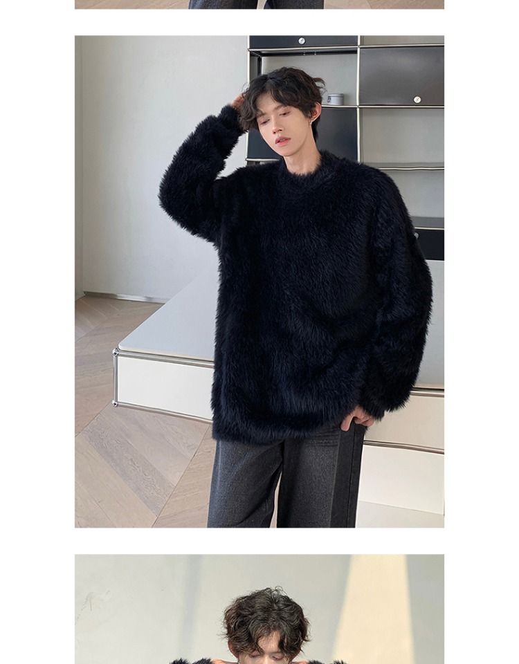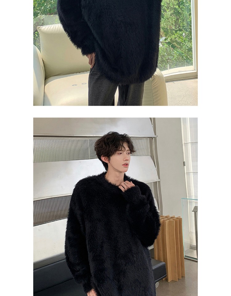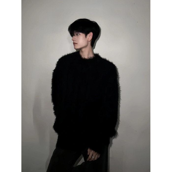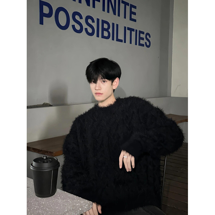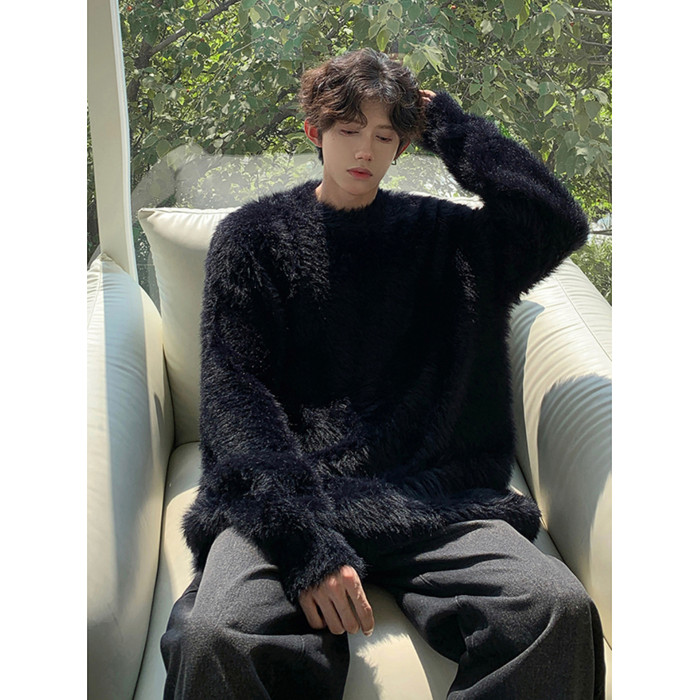 人夫感穿搭黑色針織衫外套男高級感毛衣寬松慵懶打底衫毛茸茸衛衣