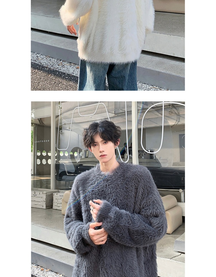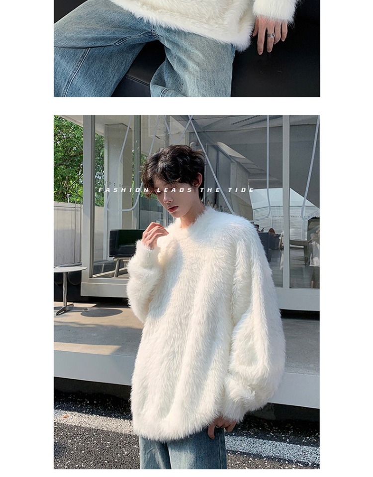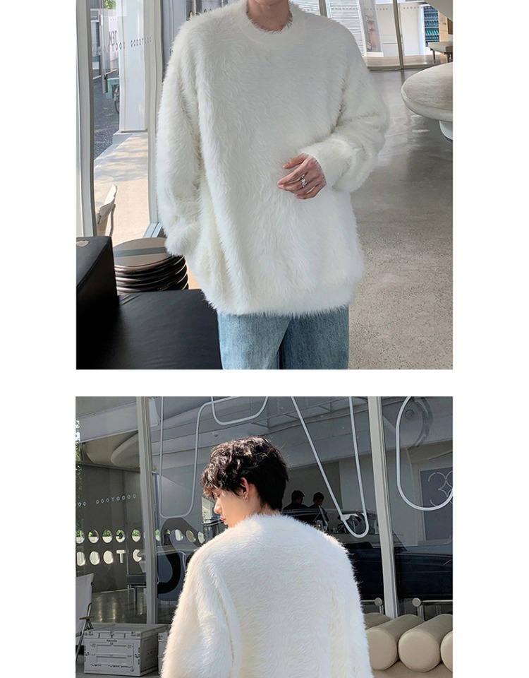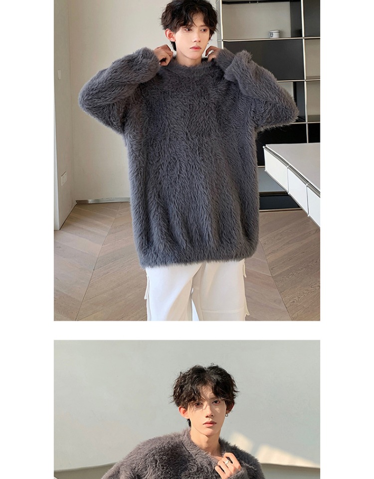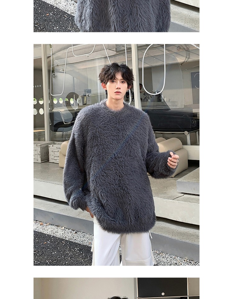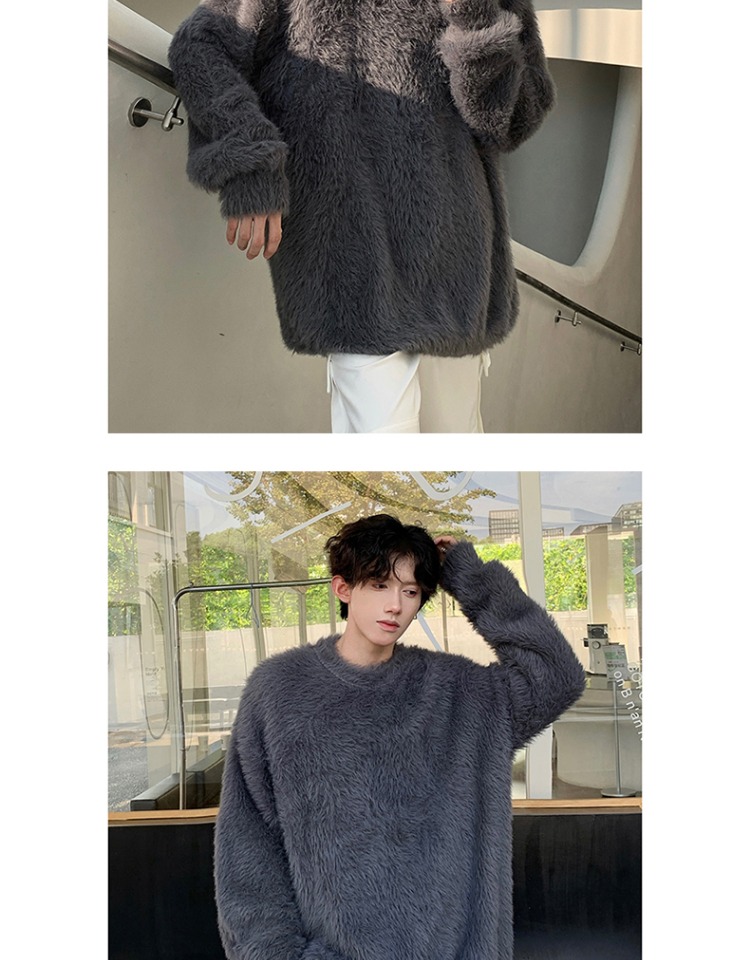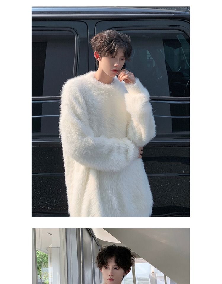 人夫感穿搭黑色針織衫外套男高級感毛衣寬松慵懶打底衫毛茸茸衛衣