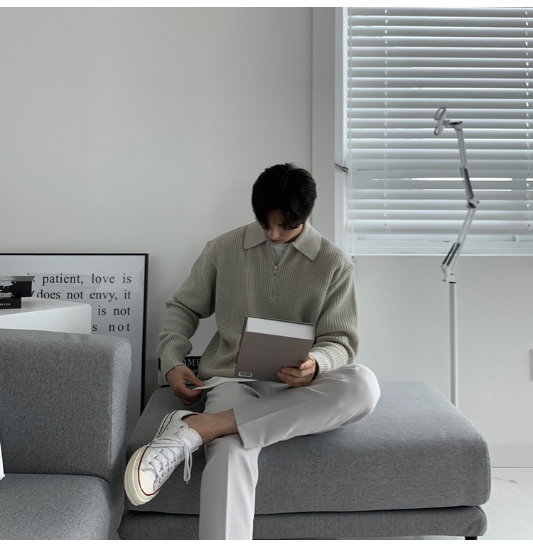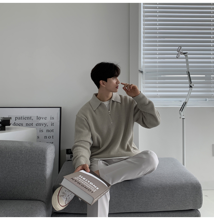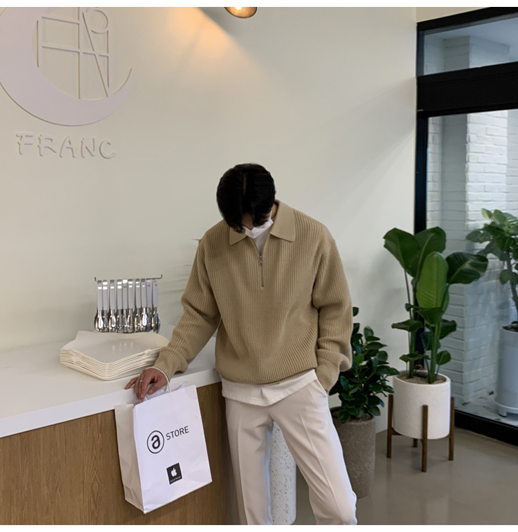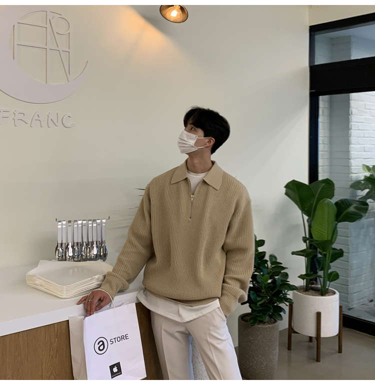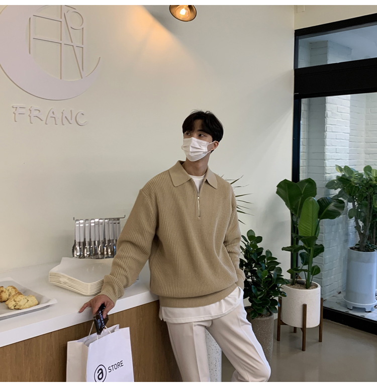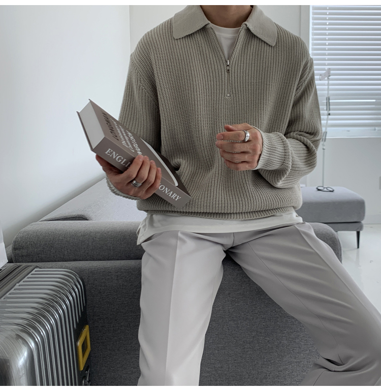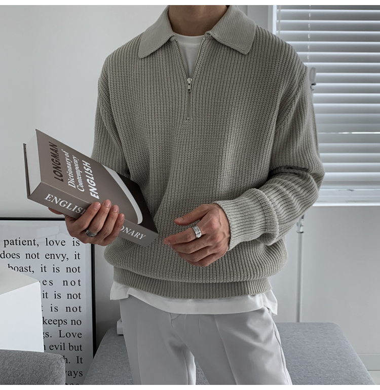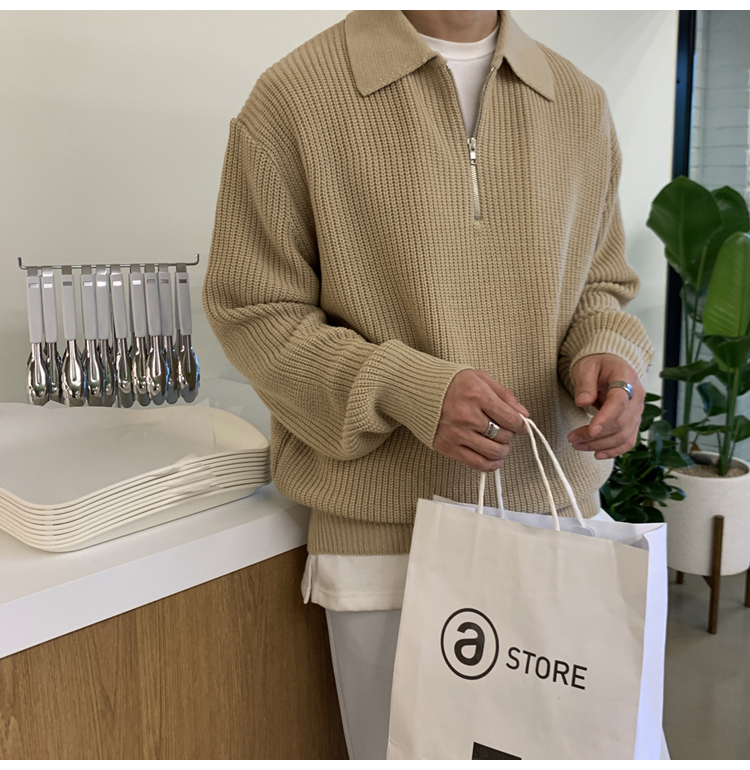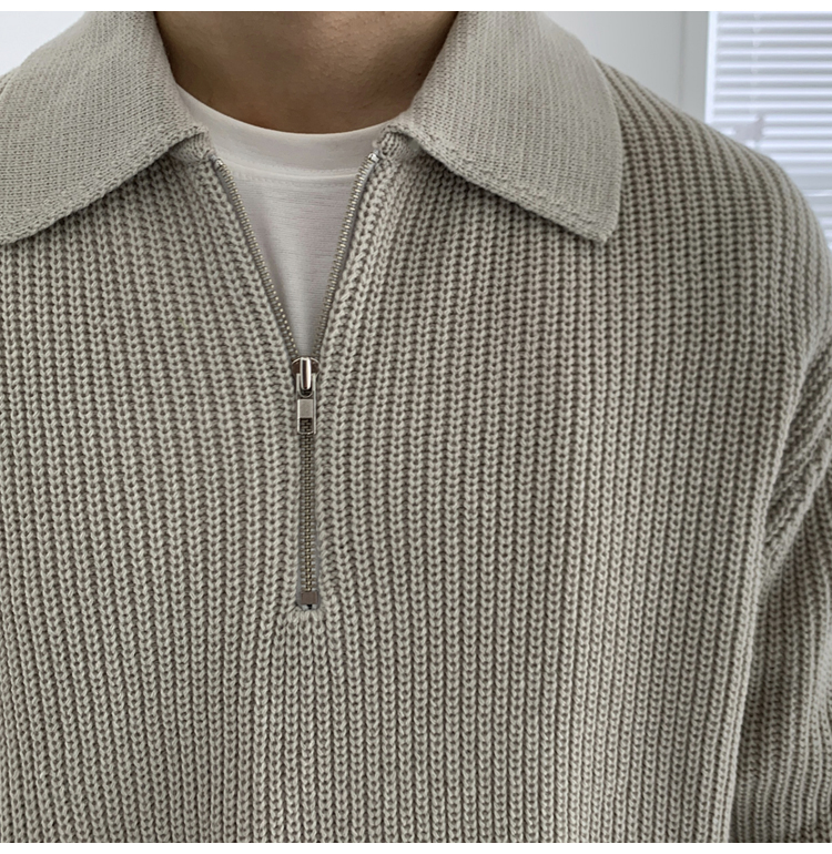 韓版高級感慵懶拉鍊毛衣男休閒潮流寬松翻領針織衫秋冬季長袖上衣