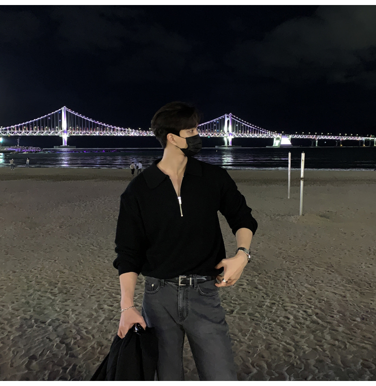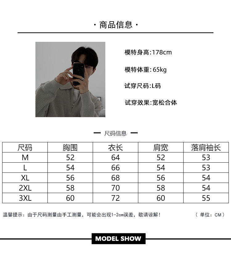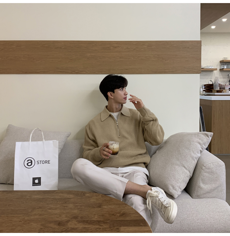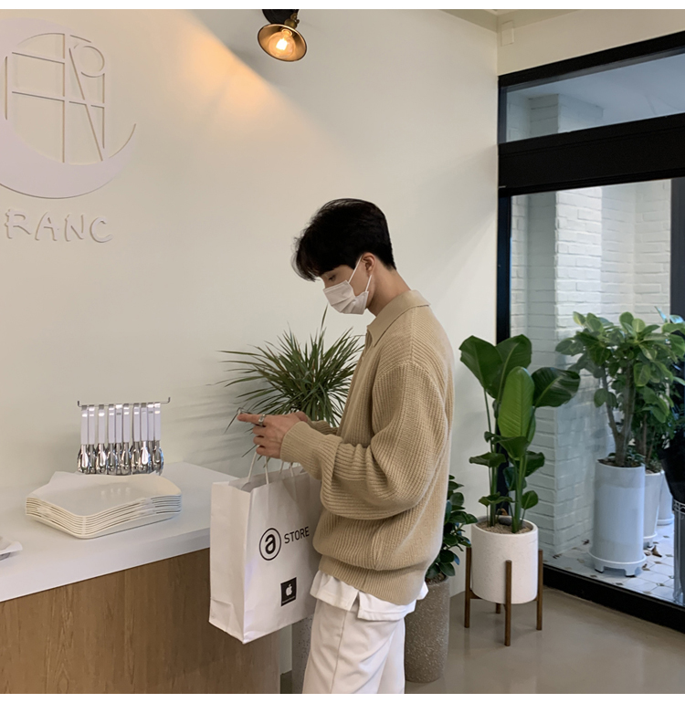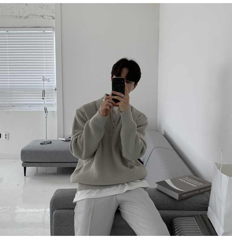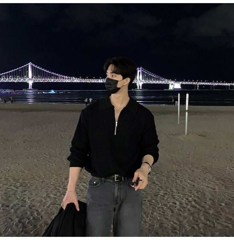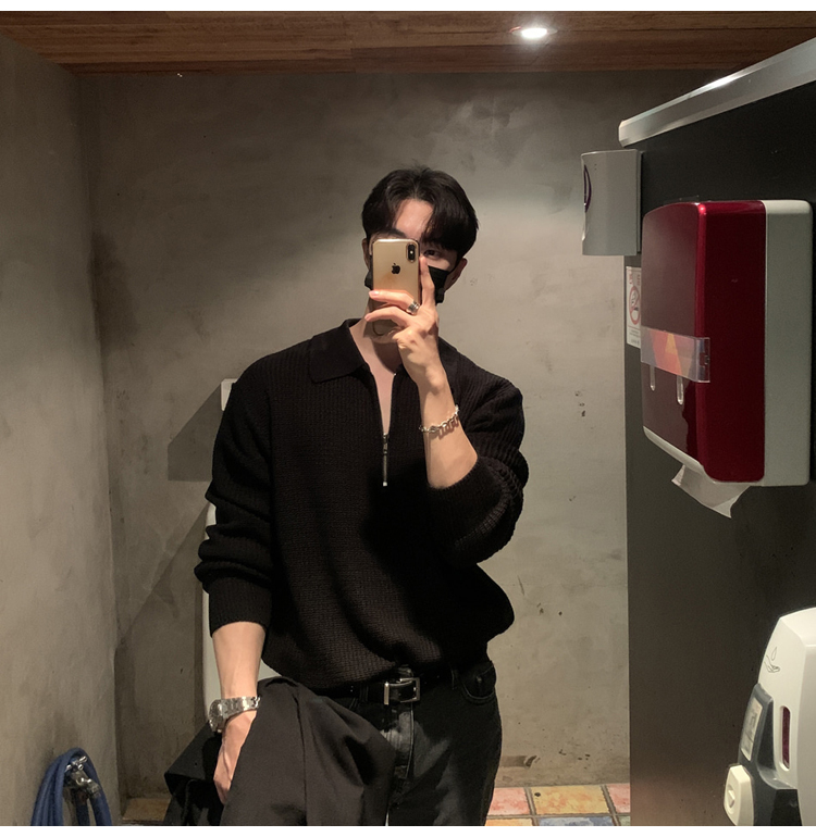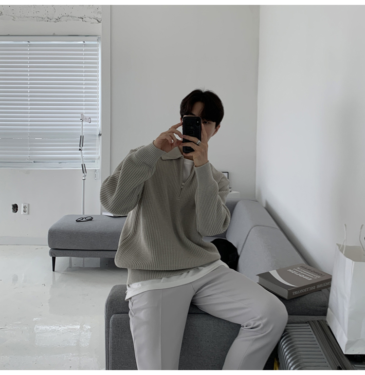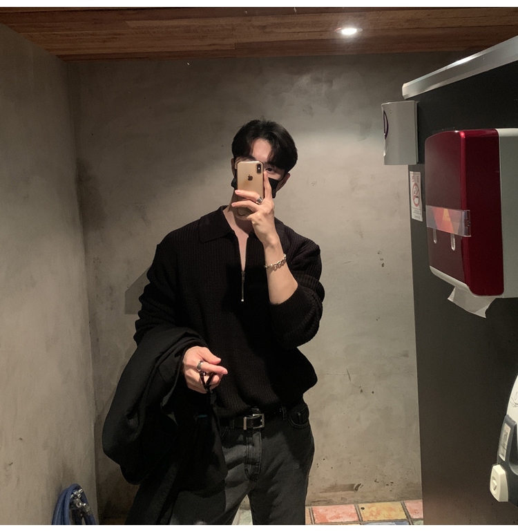 韓版高級感慵懶拉鍊毛衣男休閒潮流寬松翻領針織衫秋冬季長袖上衣