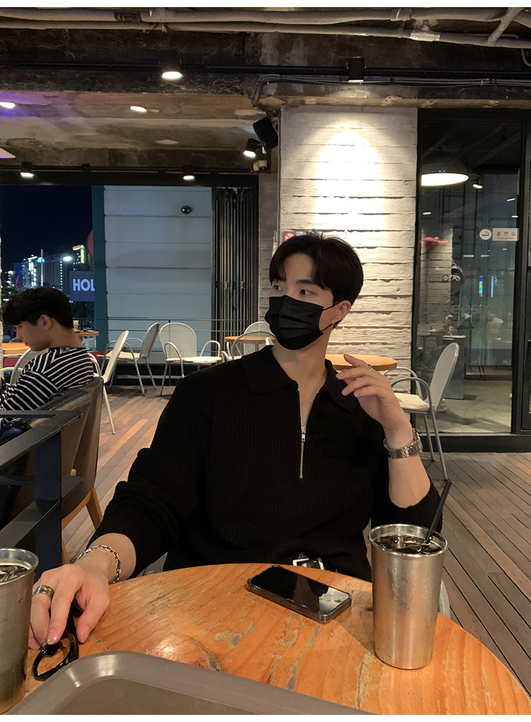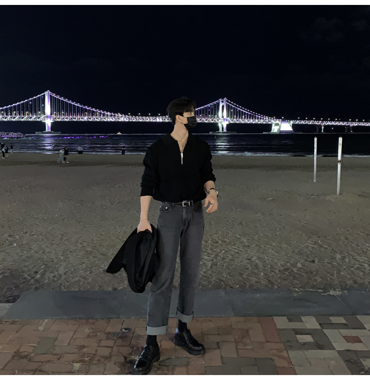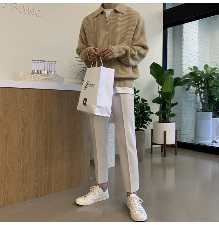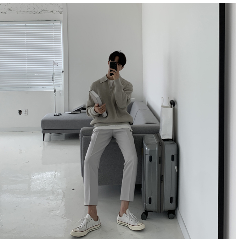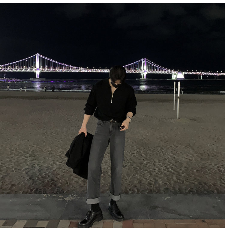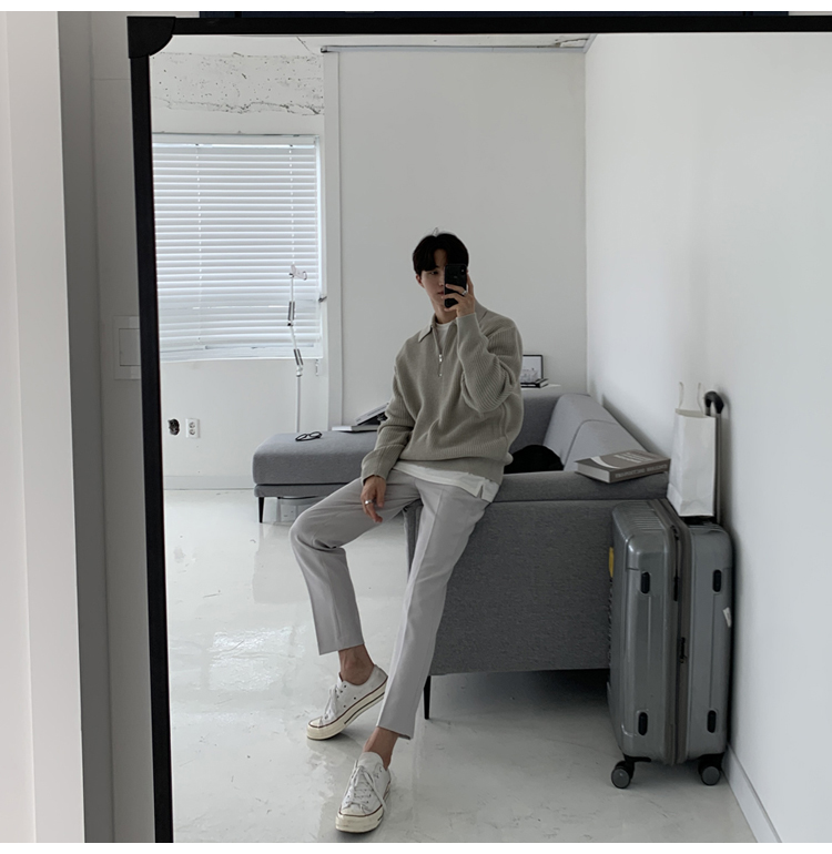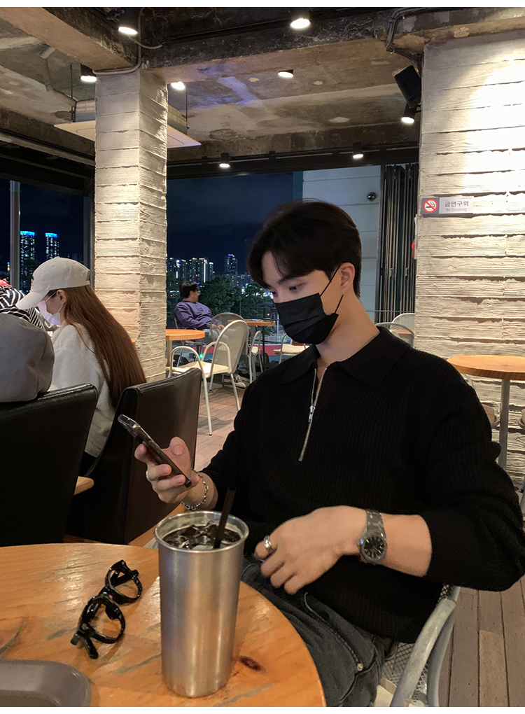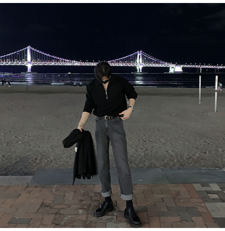 韓版高級感慵懶拉鍊毛衣男休閒潮流寬松翻領針織衫秋冬季長袖上衣
