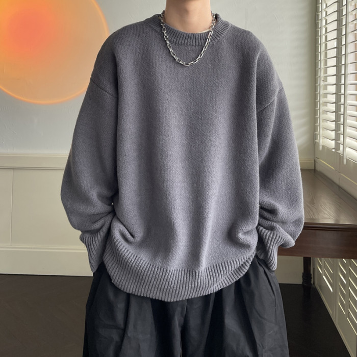 純色圓領毛衣男女簡約寬松秋冬新款加厚oversize潮流打底針織毛衫