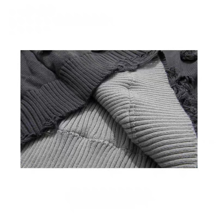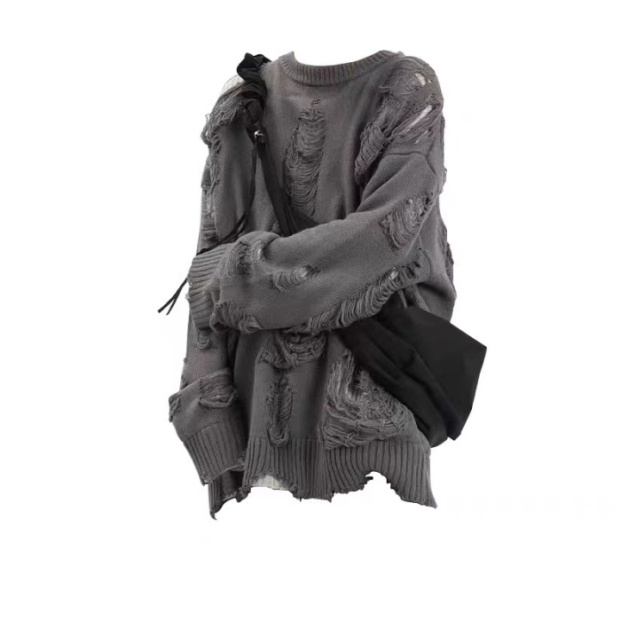 歐美高街假兩件oversize破洞毛衣男女秋冬季慵懶風鏤空設計針織衫