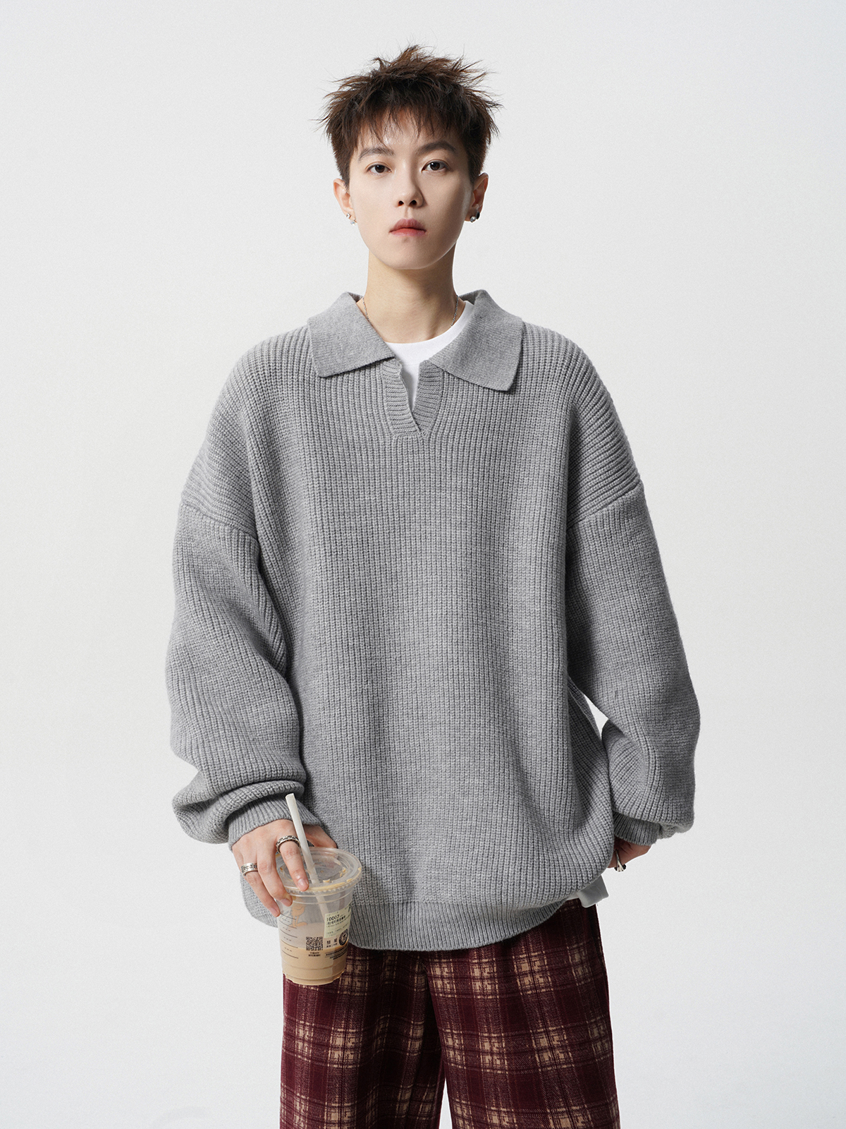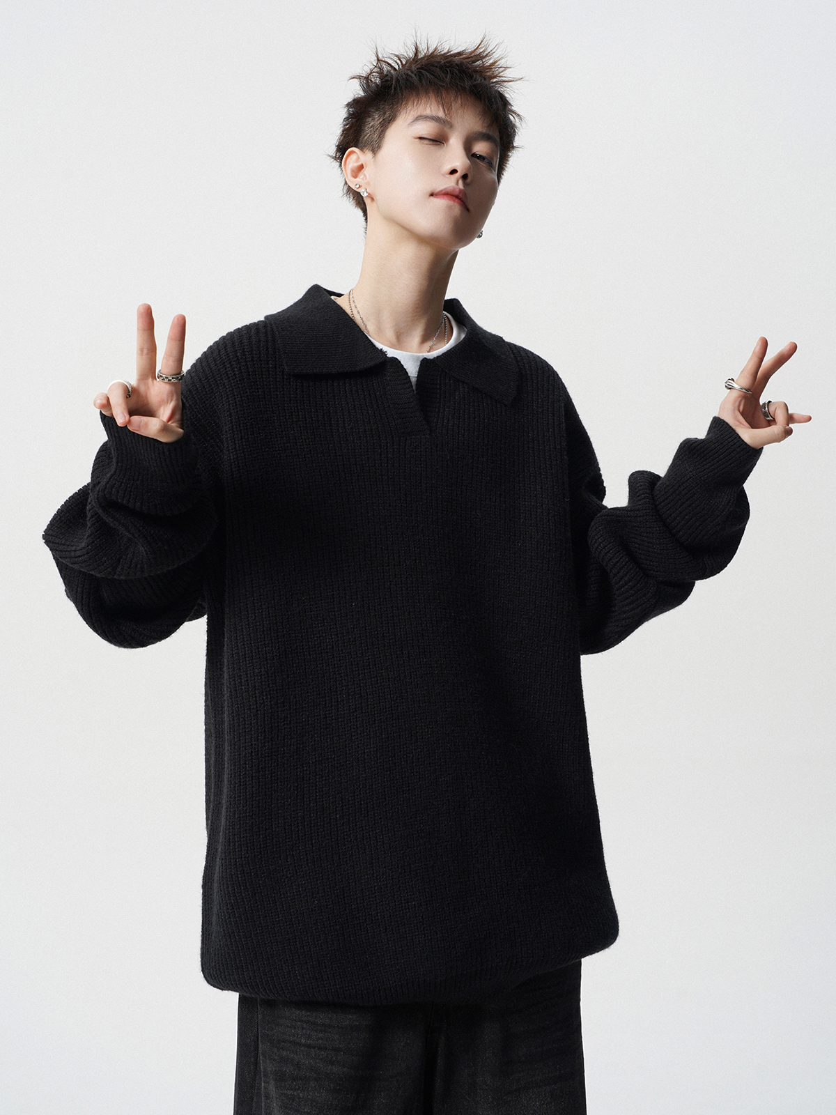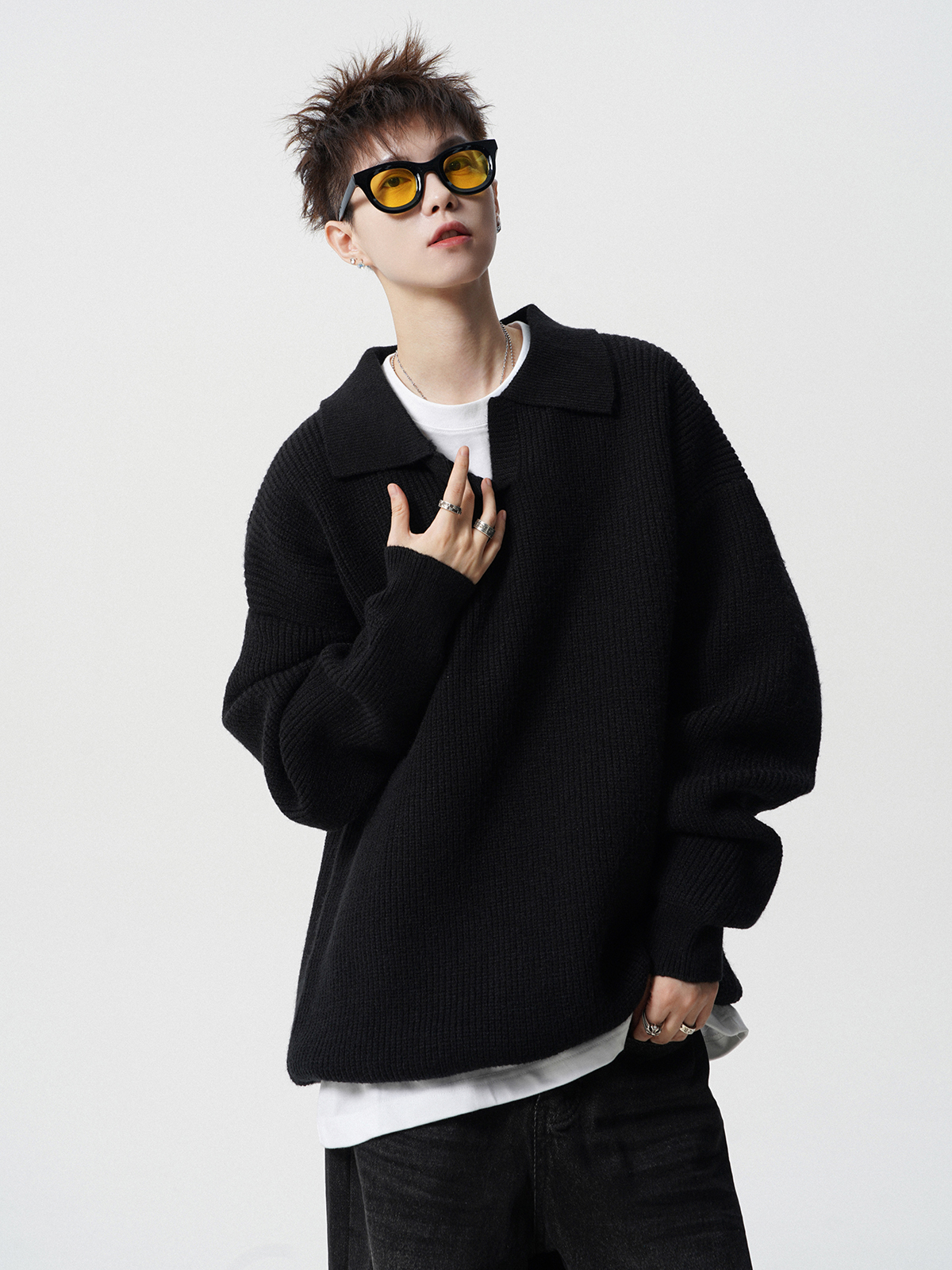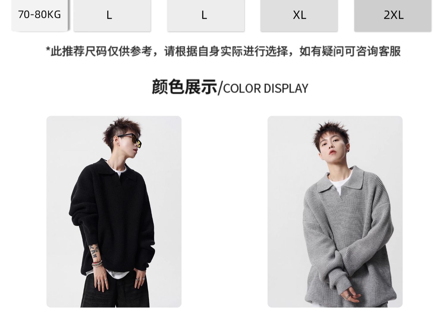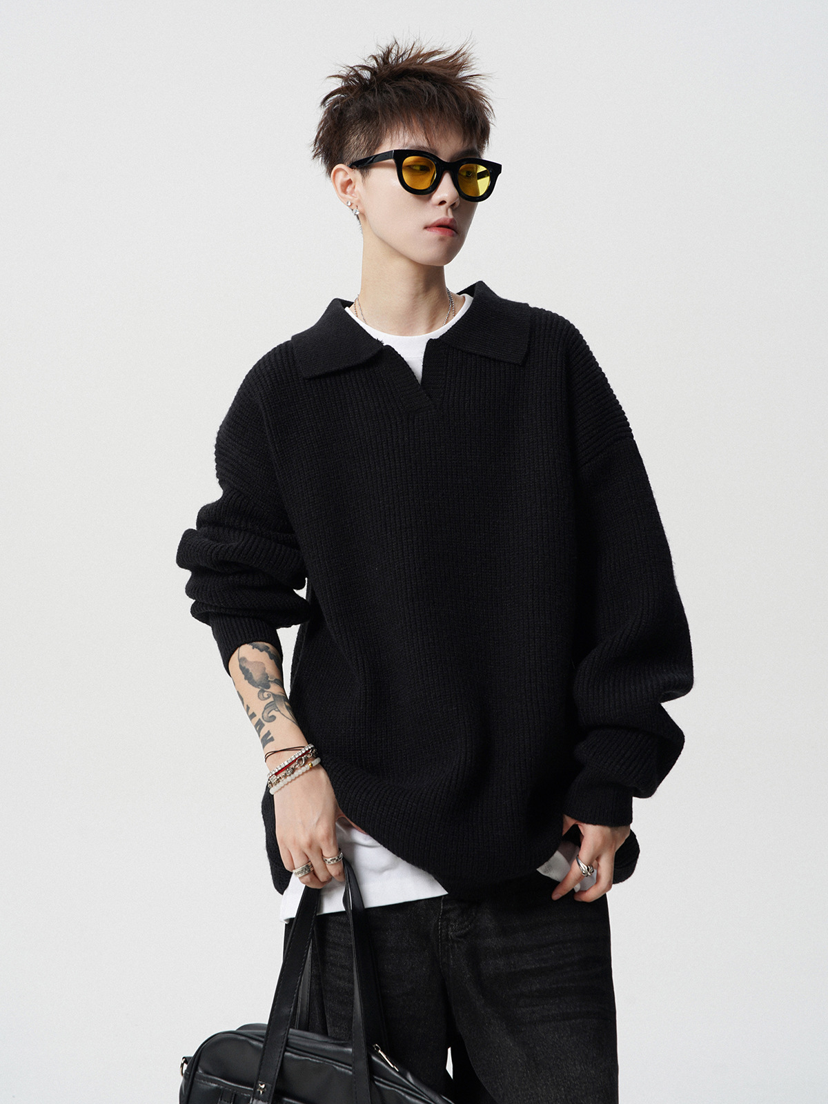 美式純色Polo衫毛衣男款冬季潮牌翻領針織衫高街百搭休閒運動上衣