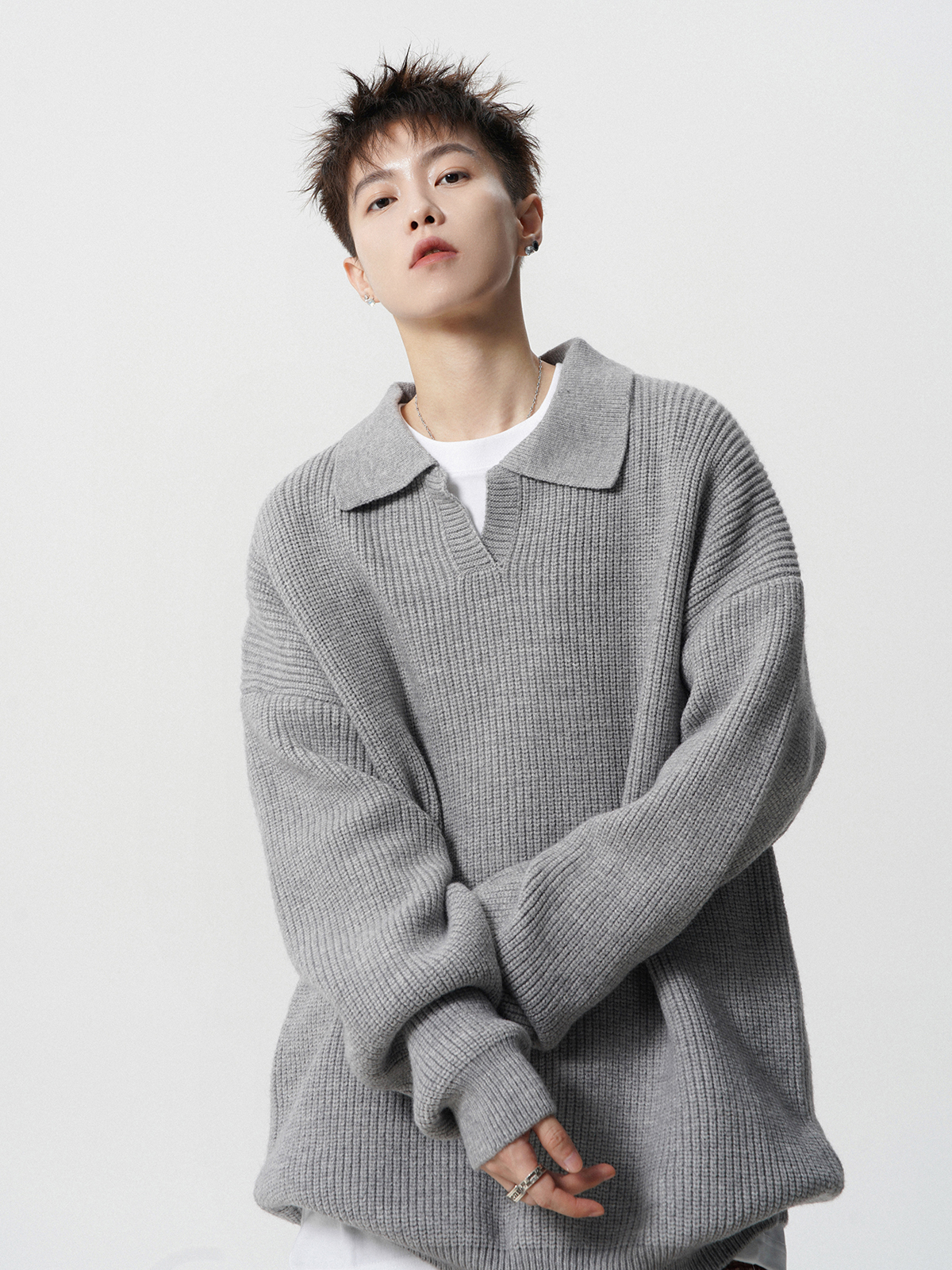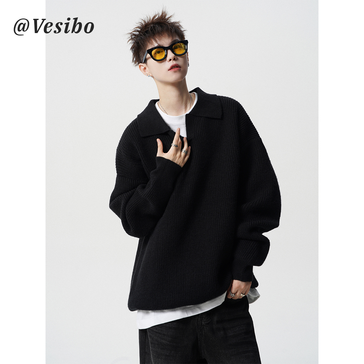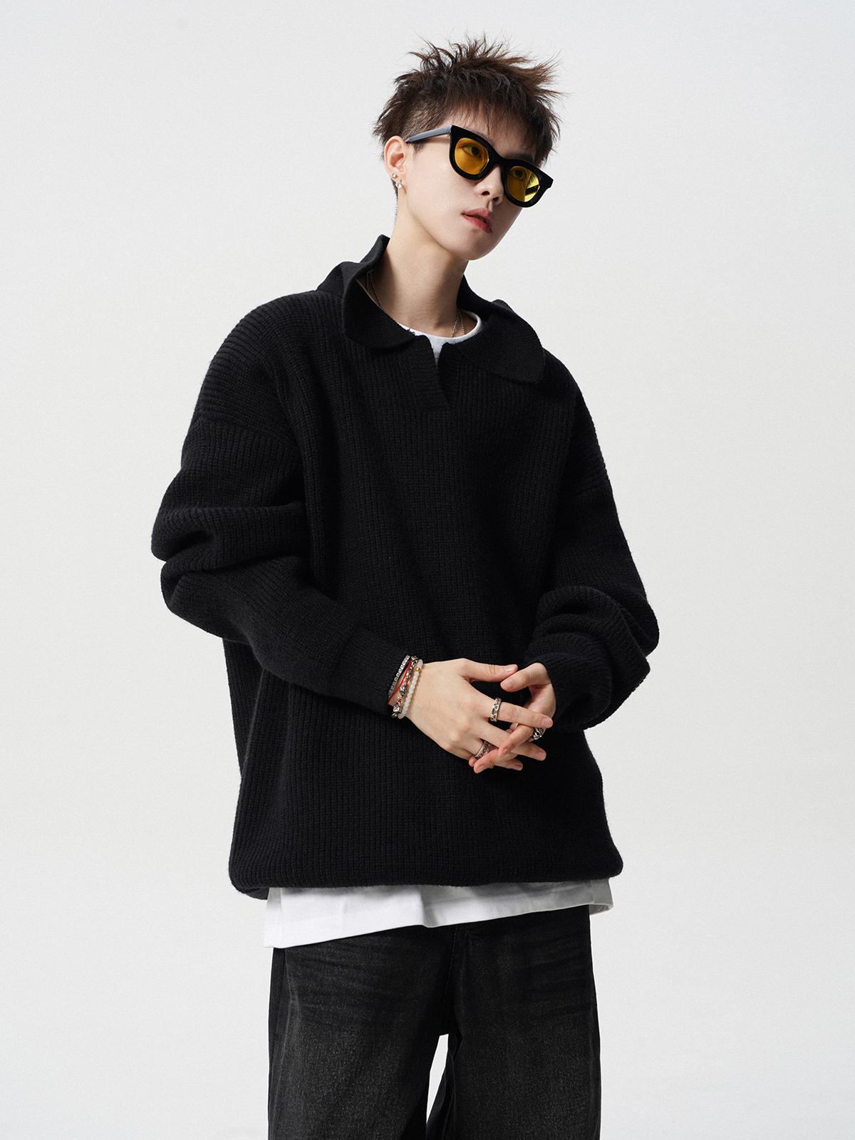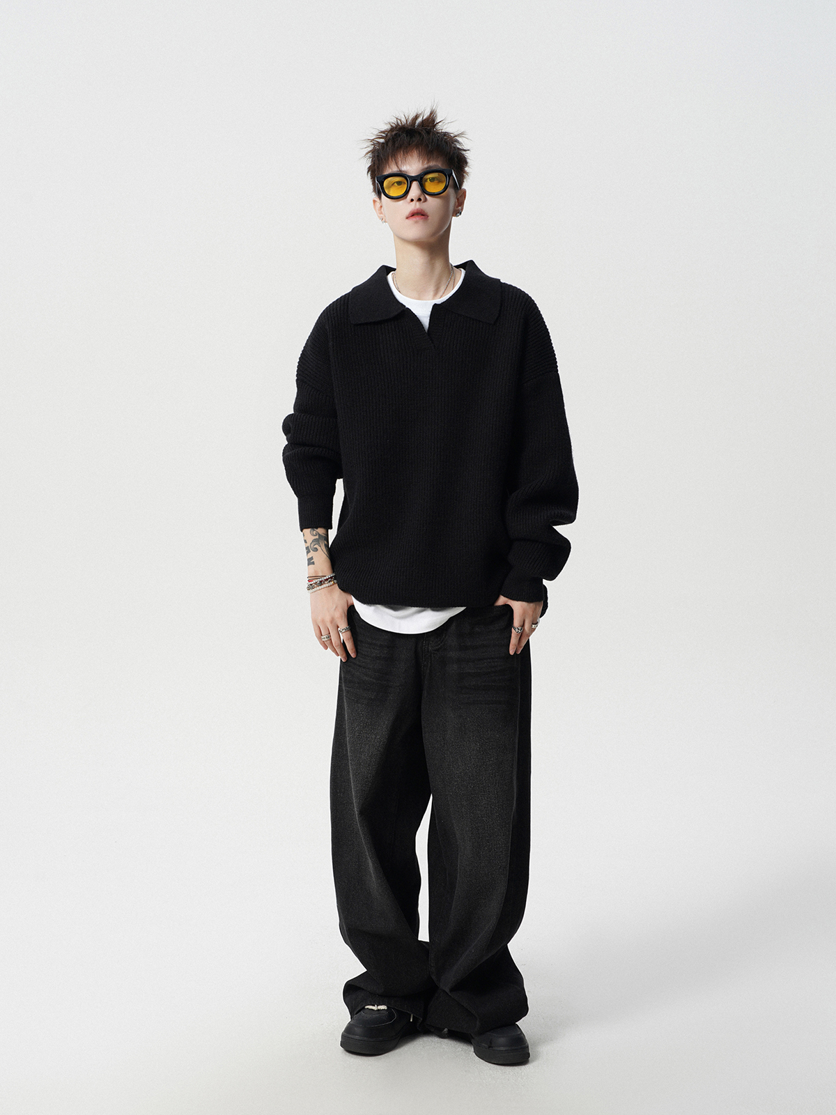 美式純色Polo衫毛衣男款冬季潮牌翻領針織衫高街百搭休閒運動上衣
