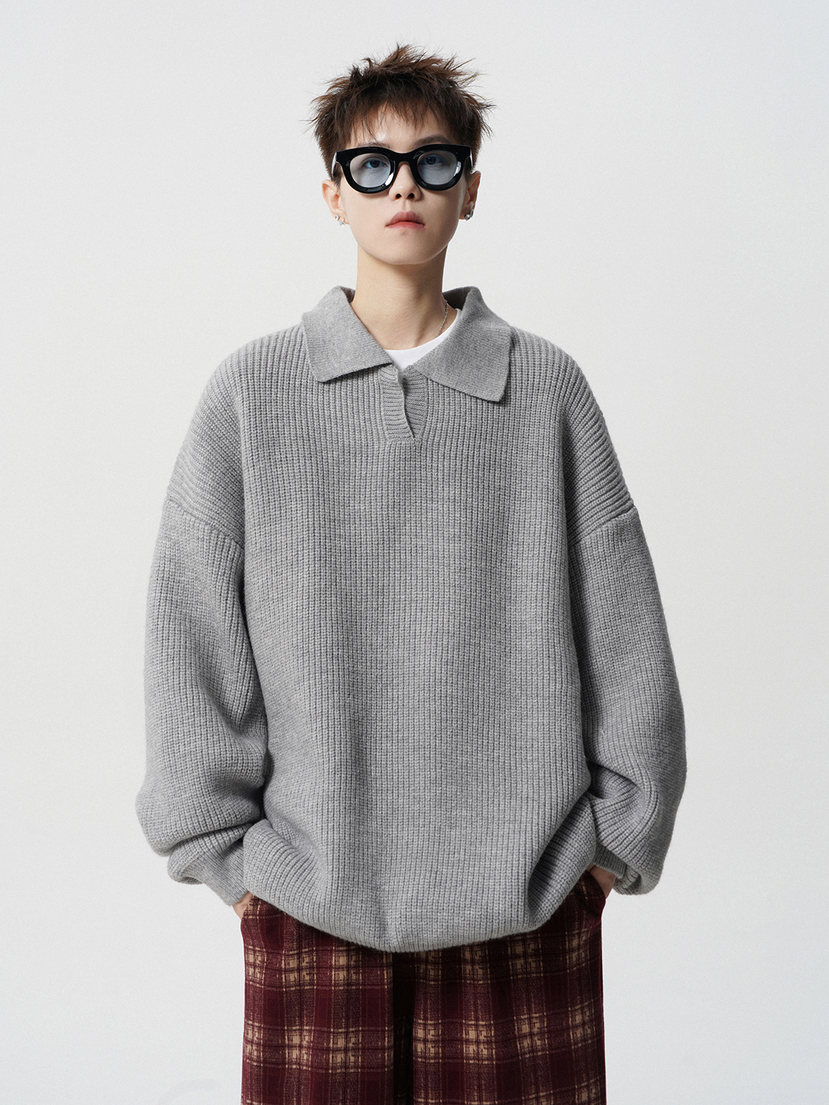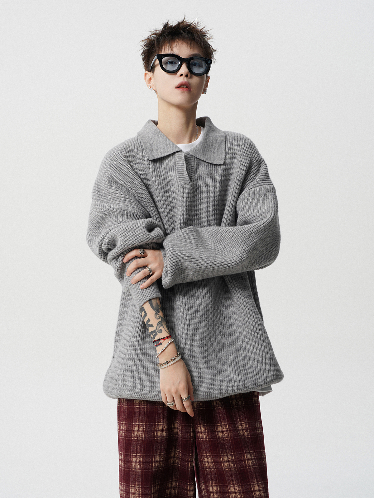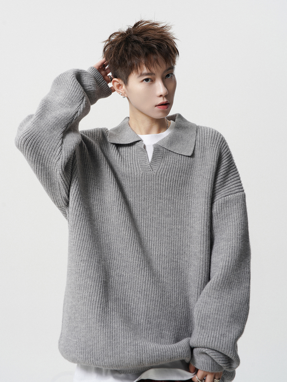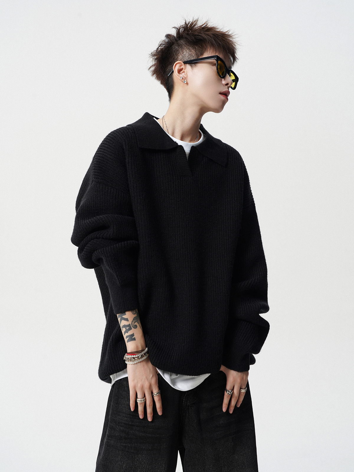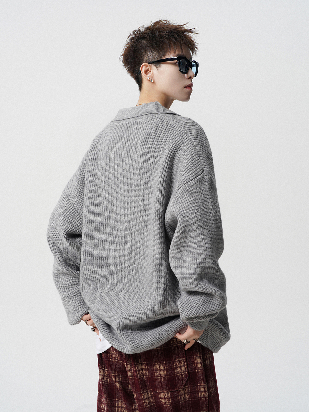 美式純色Polo衫毛衣男款冬季潮牌翻領針織衫高街百搭休閒運動上衣