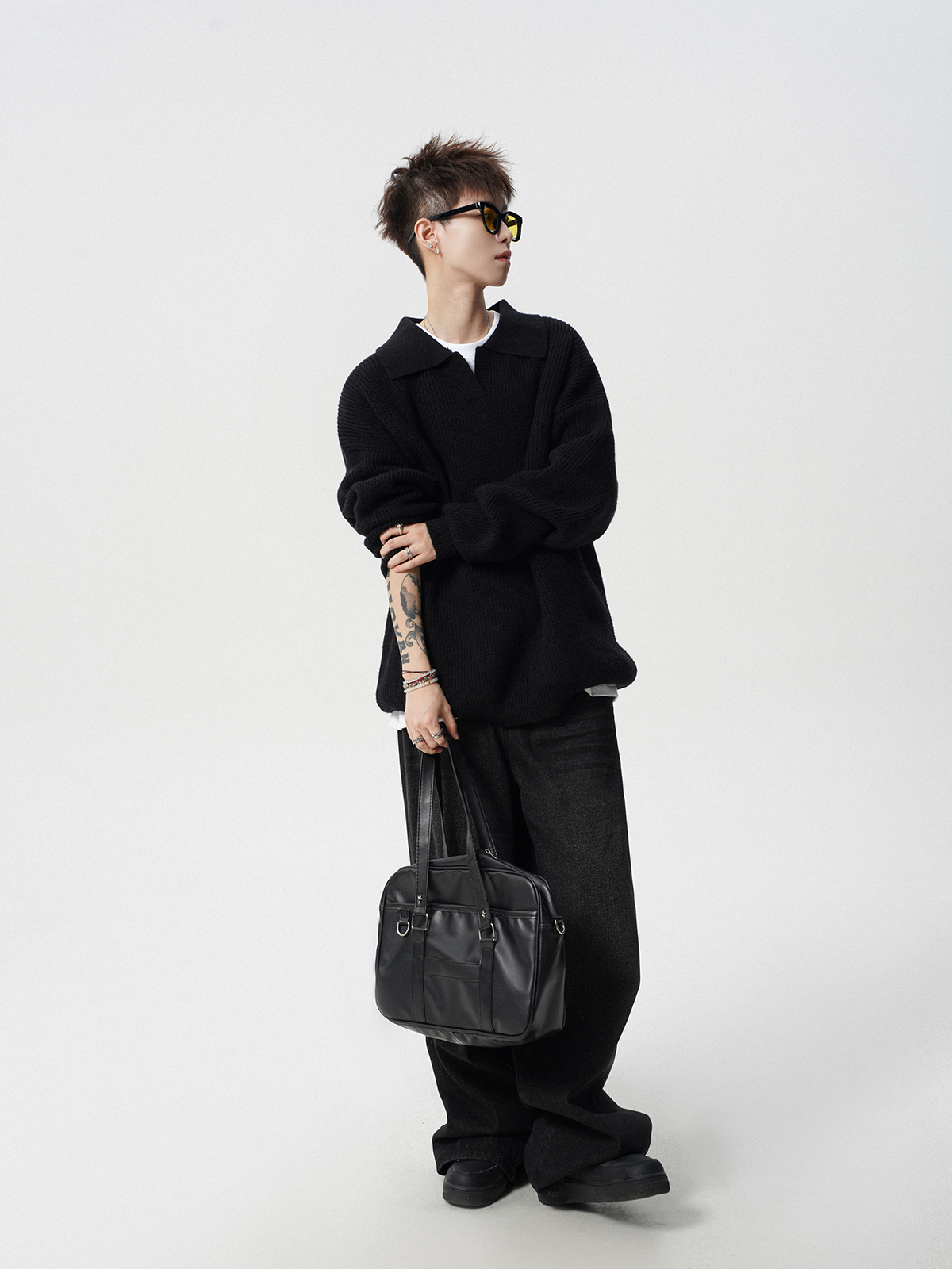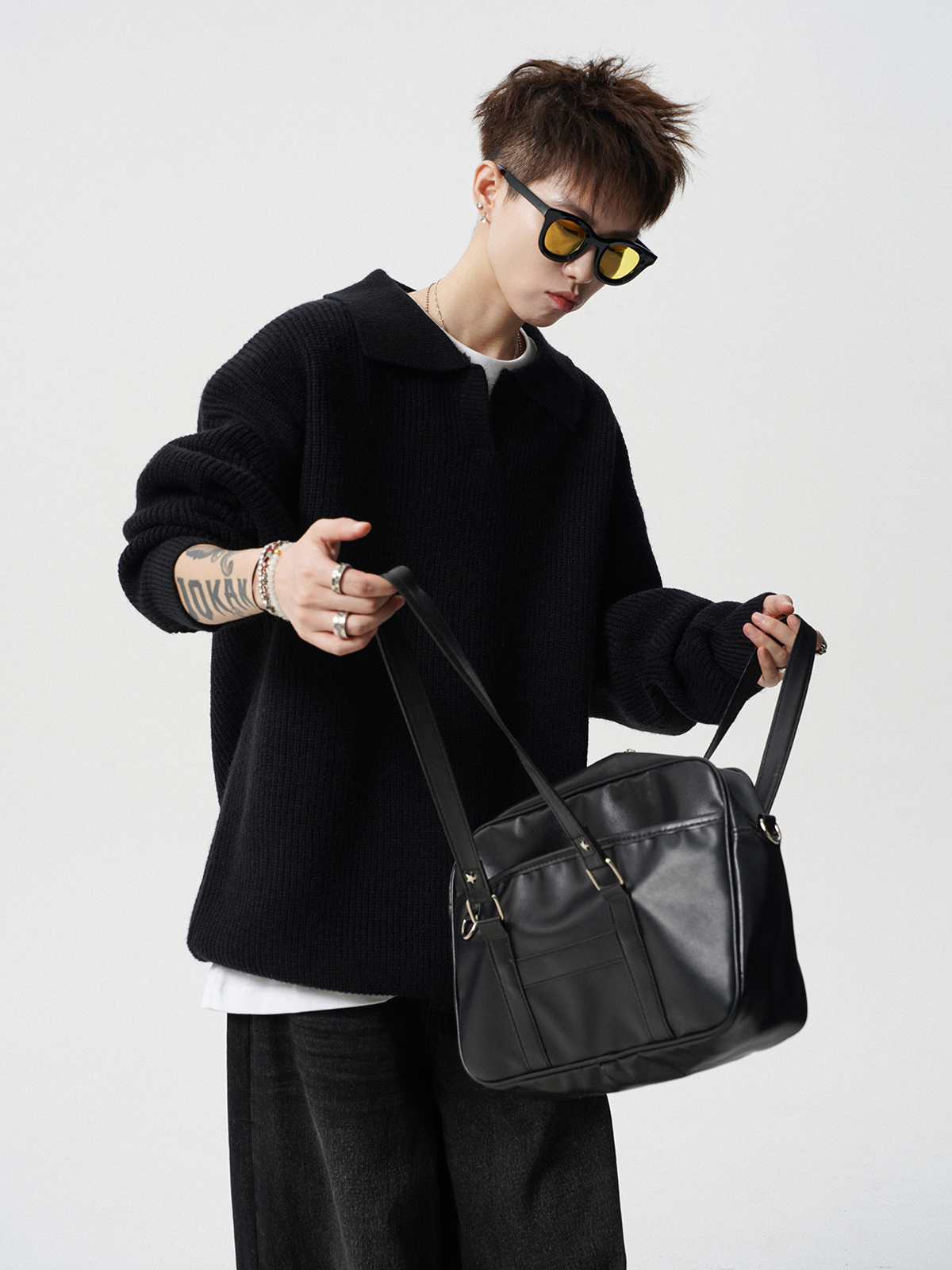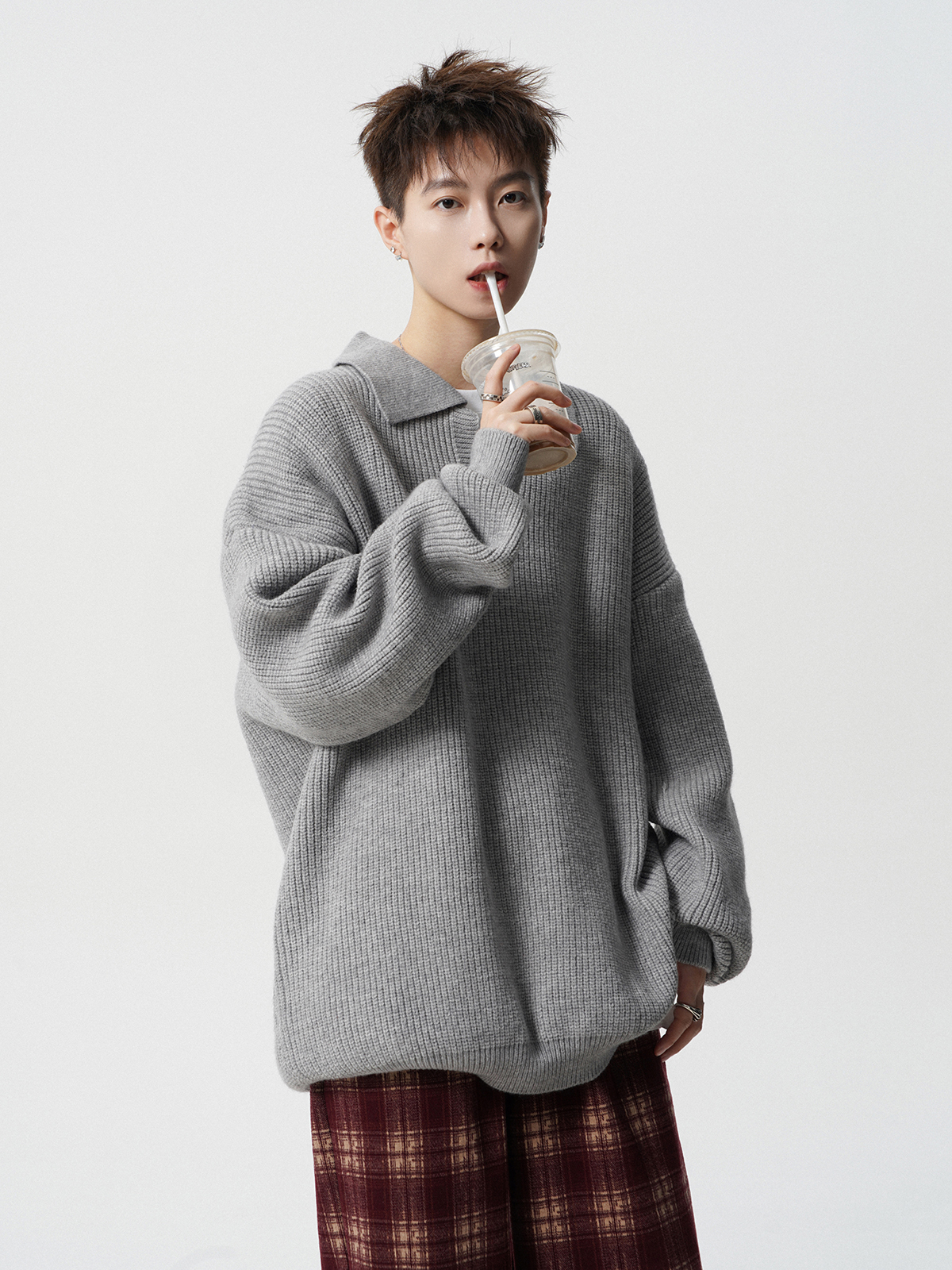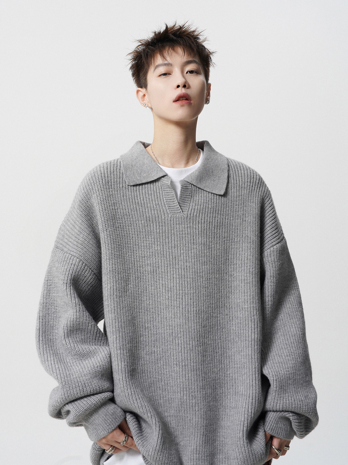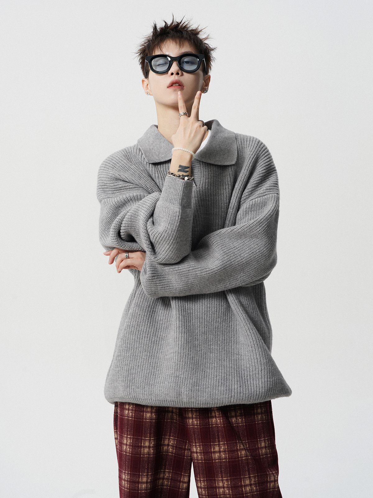 美式純色Polo衫毛衣男款冬季潮牌翻領針織衫高街百搭休閒運動上衣