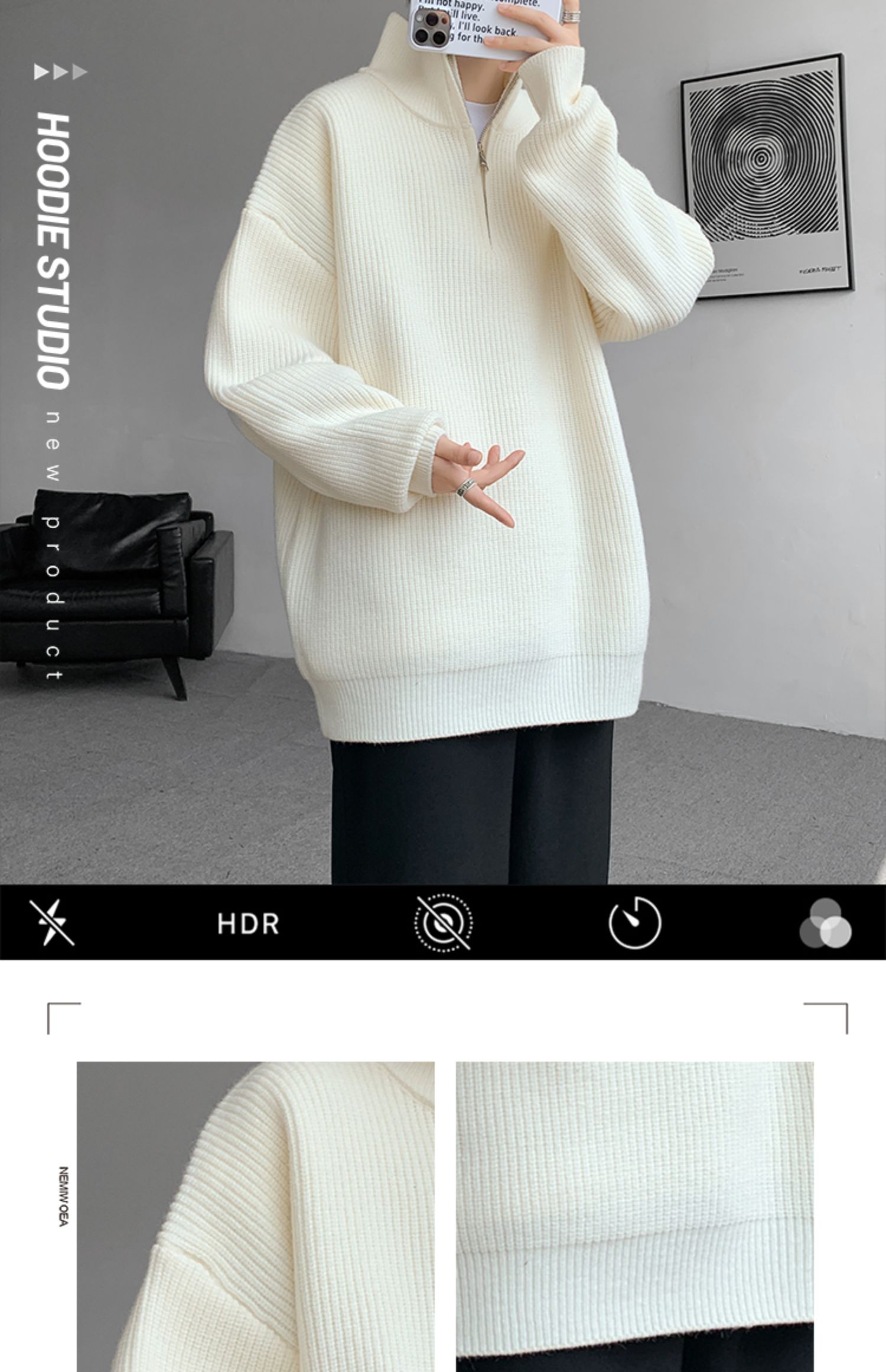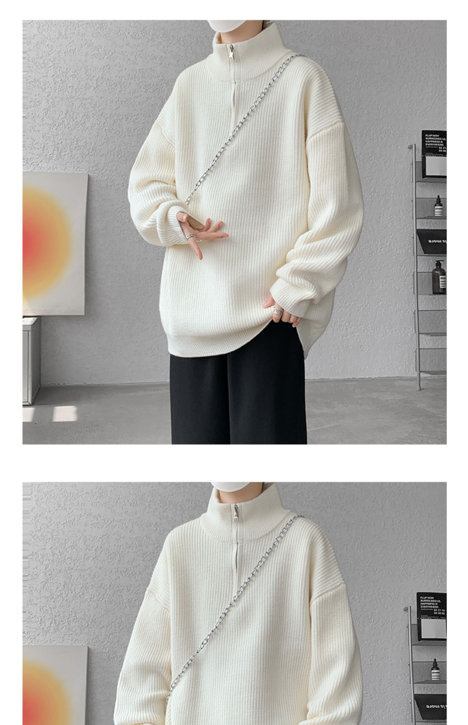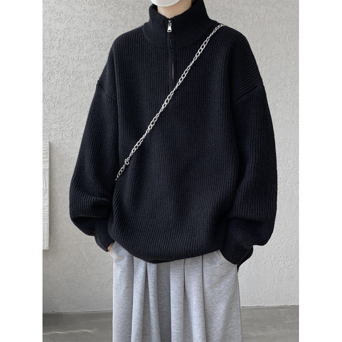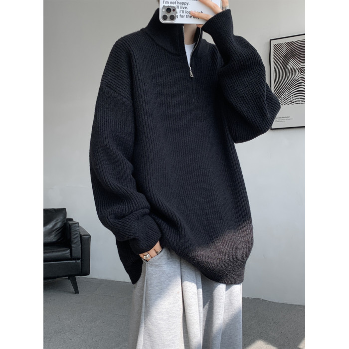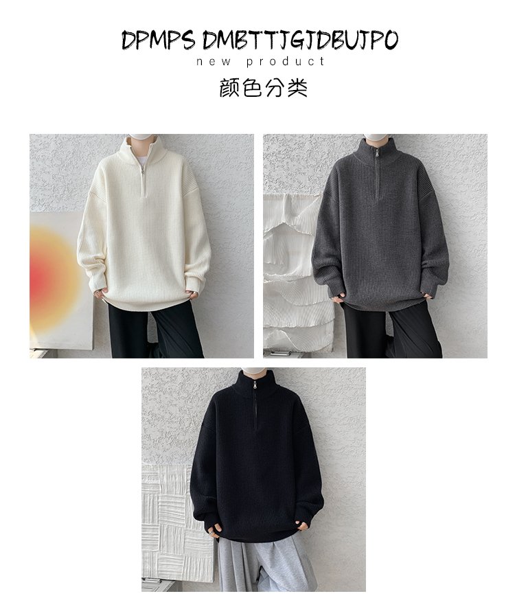 灰色半拉鍊毛衣男款冬季寬松慵懶痞帥半高立領內搭針織衫外套男厚
