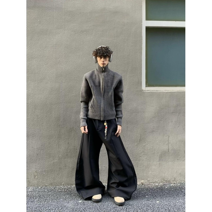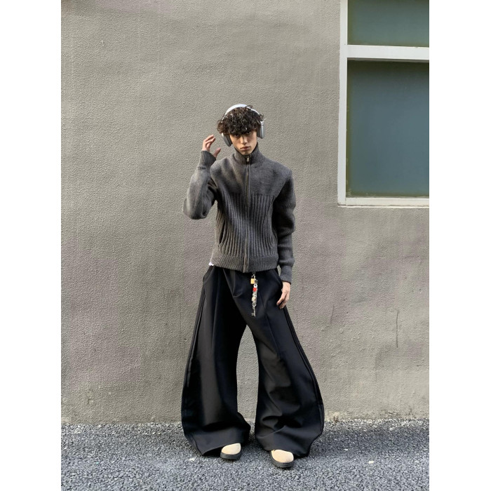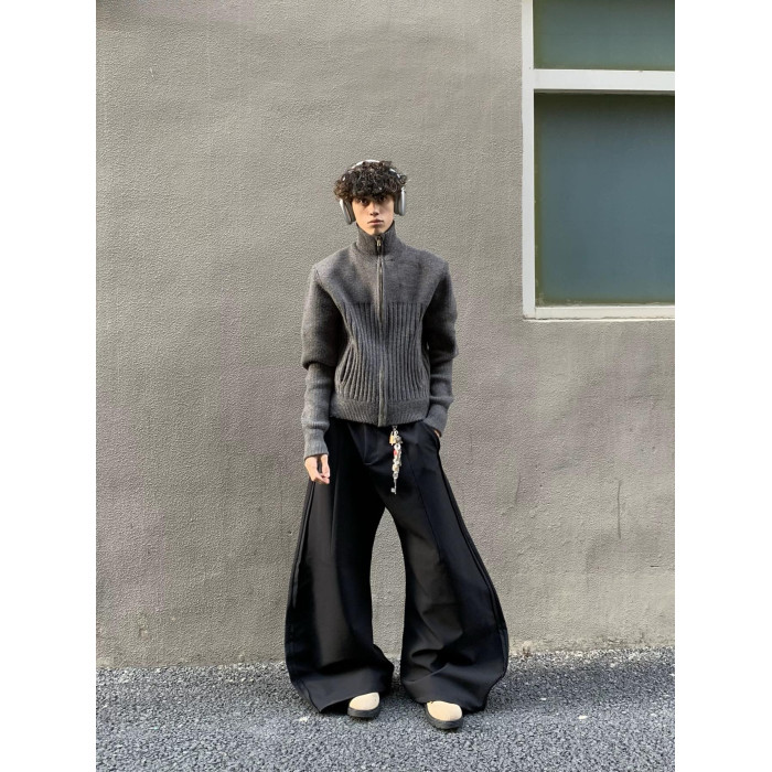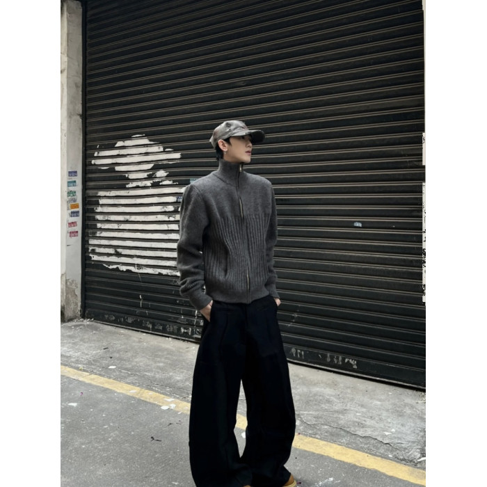 美拉德復古冬季厚款正肩短款高領拉鍊開衫毛衣男女冬季保暖外套