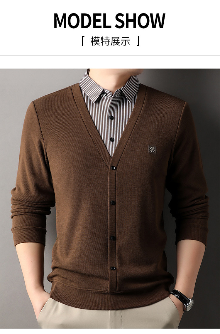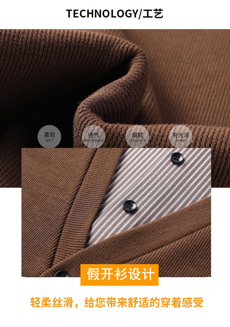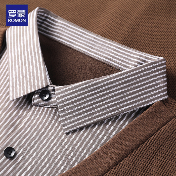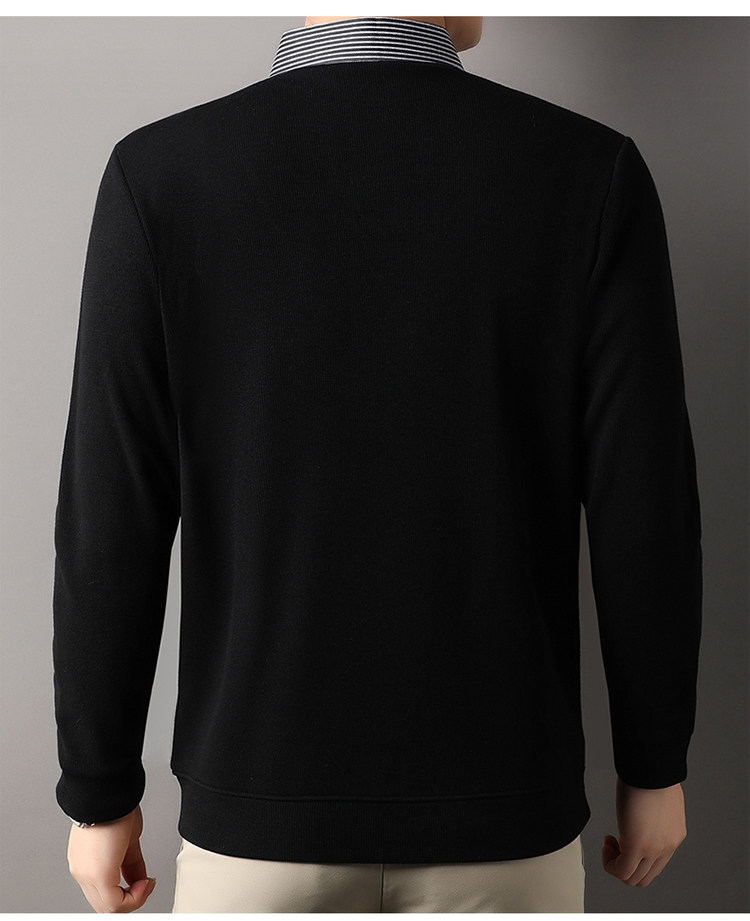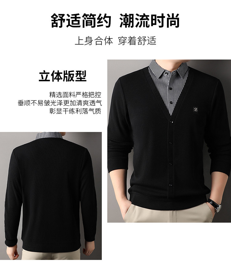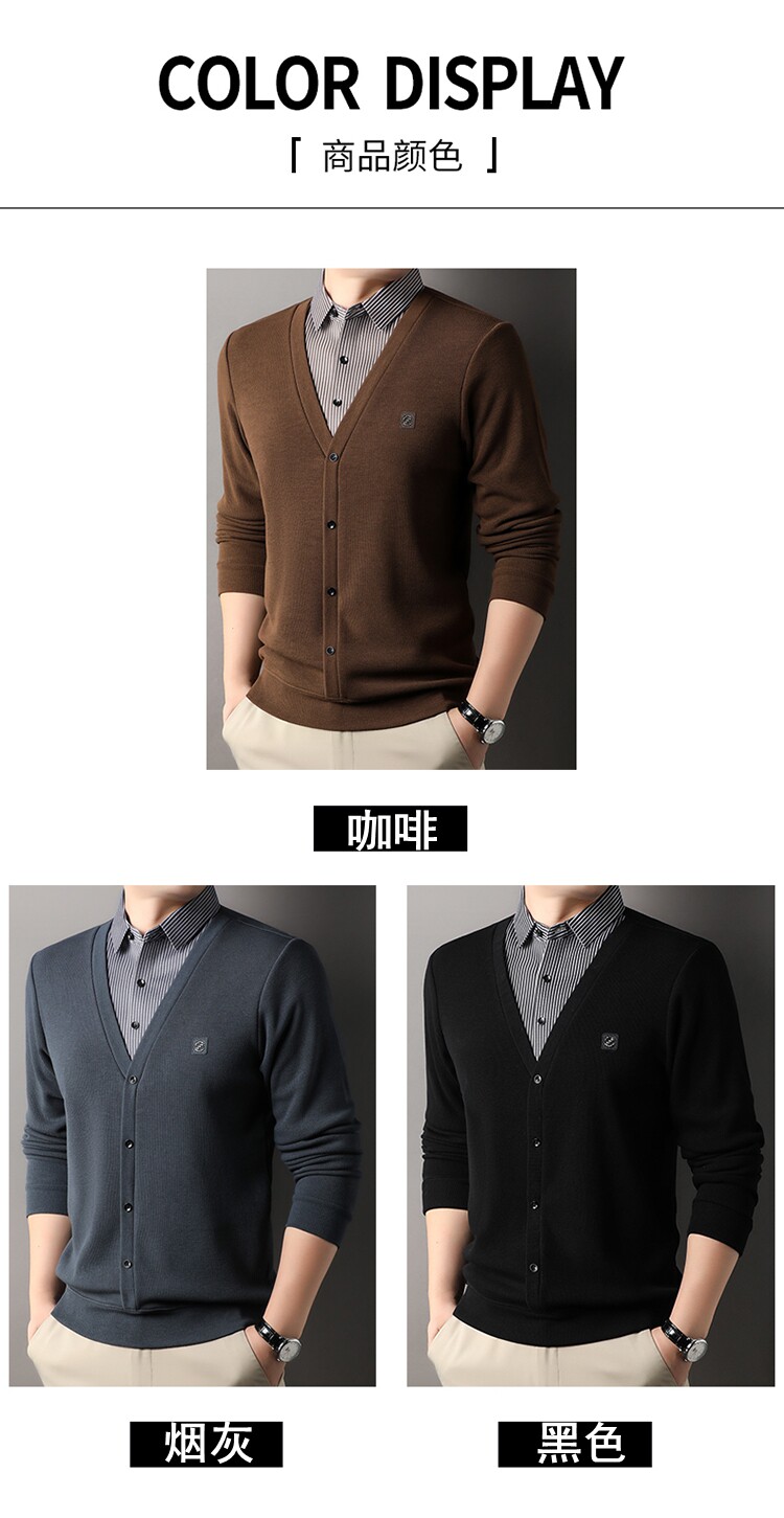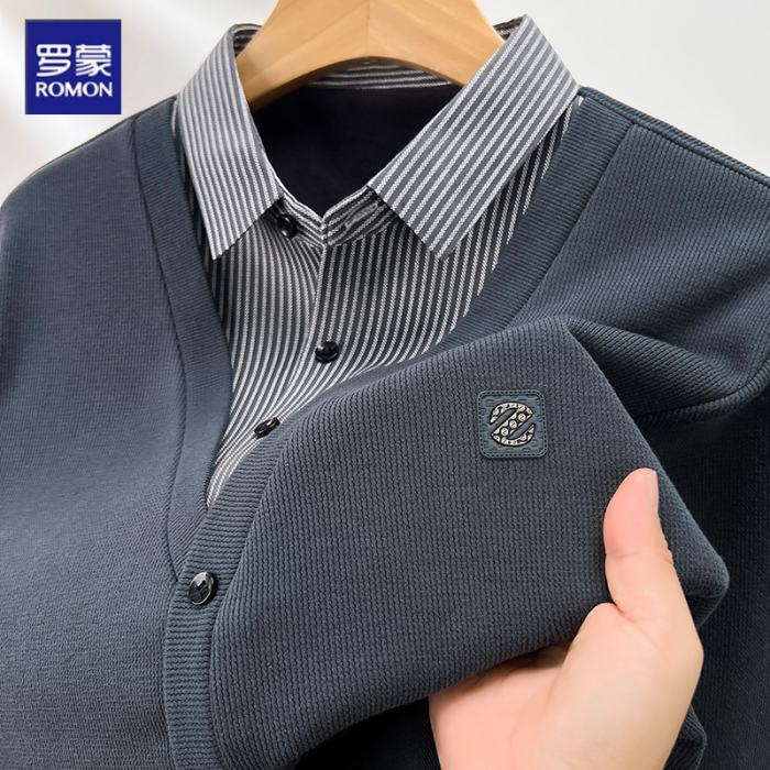 羅矇假兩件針織衫男襯衫領春秋季2025新款中年爸爸秋裝套頭上衣