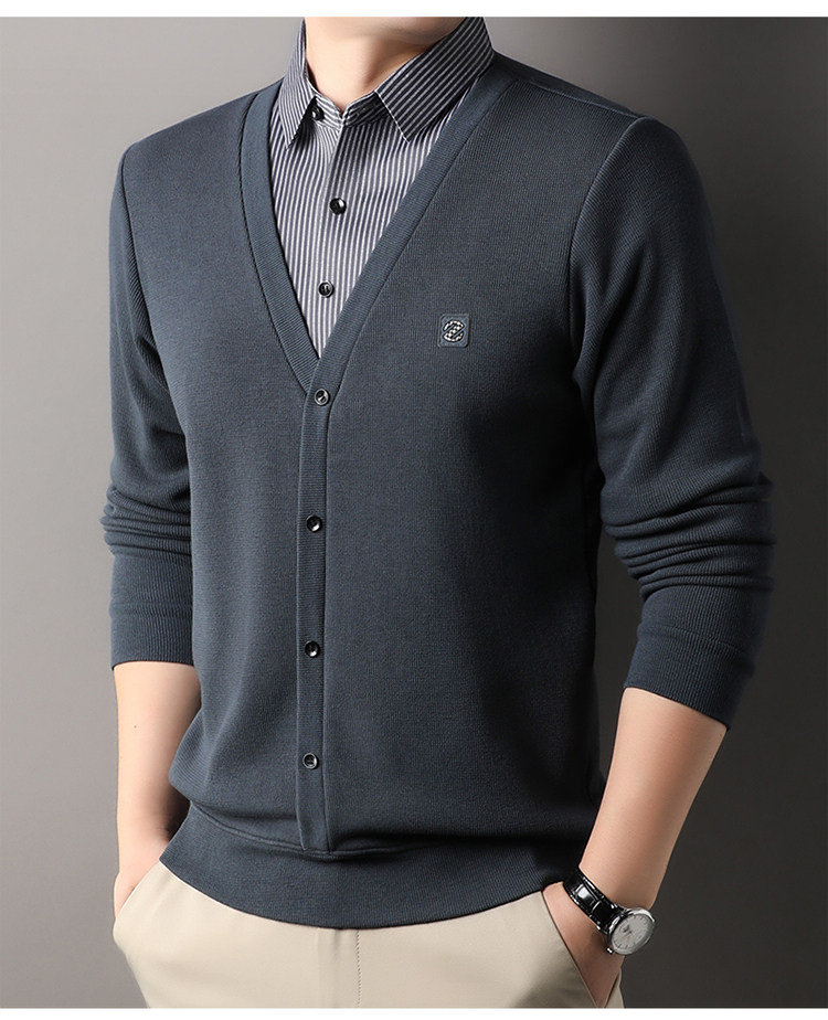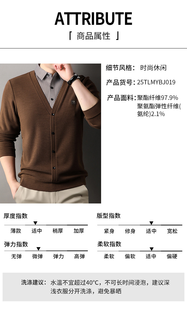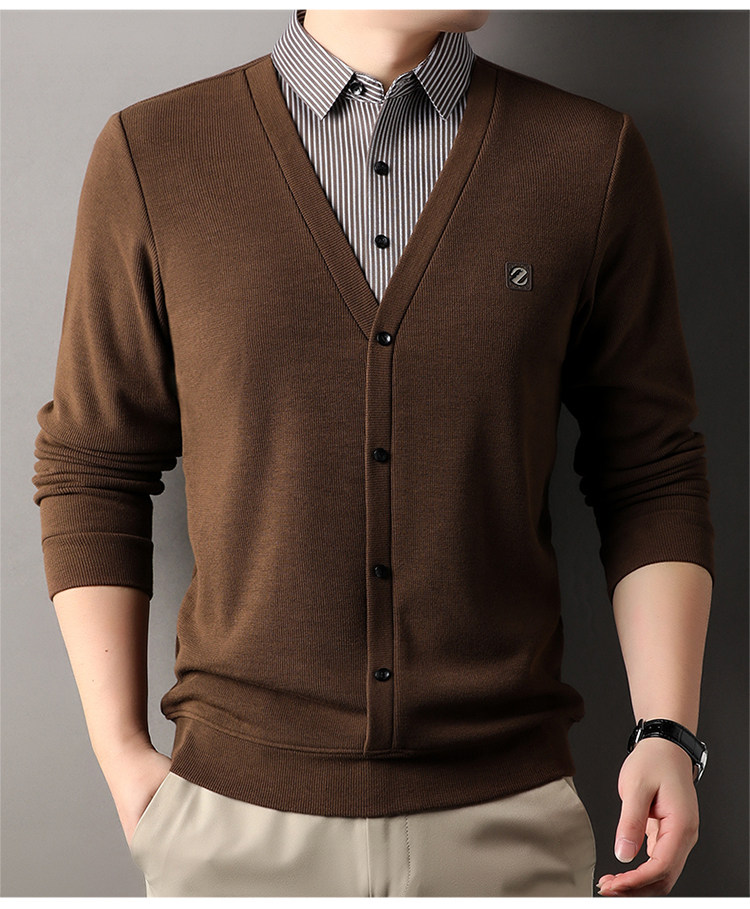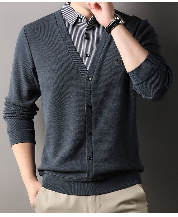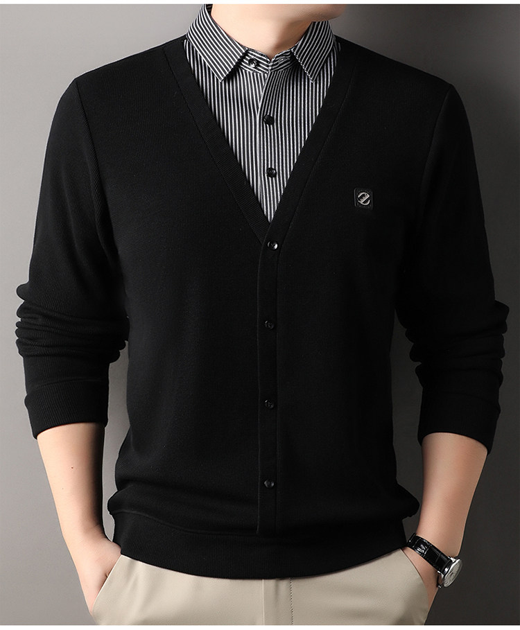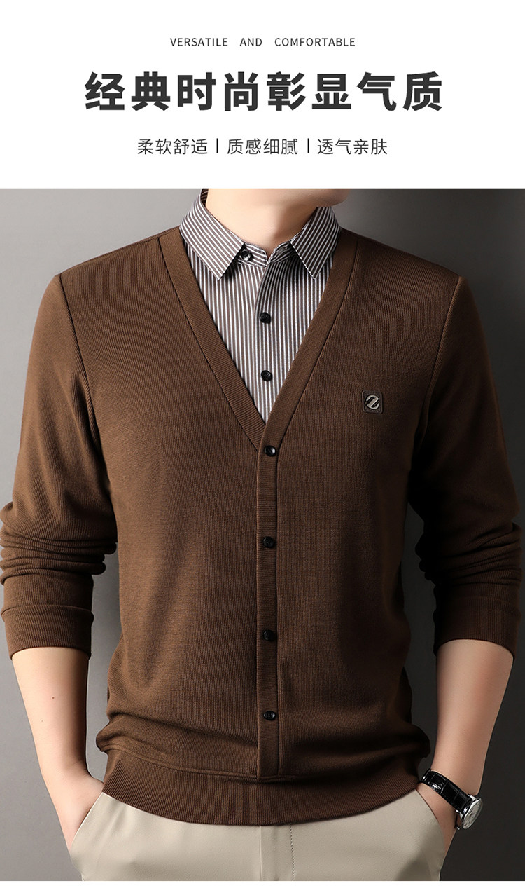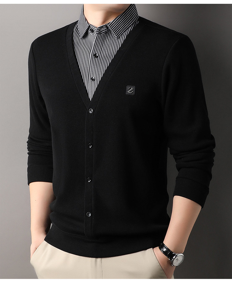 羅矇假兩件針織衫男襯衫領春秋季2025新款中年爸爸秋裝套頭上衣