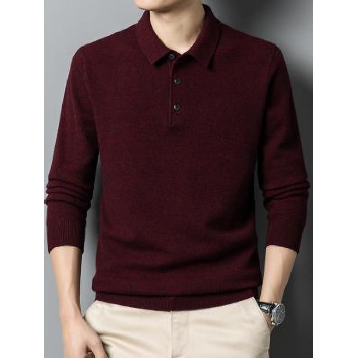 男士加厚保暖100%純色毛衫冬季新款翻領長袖寬松休閒毛衣男針織衫