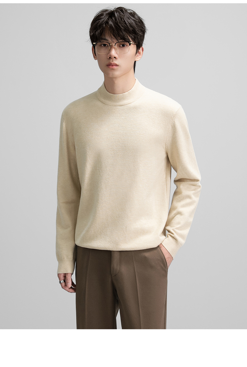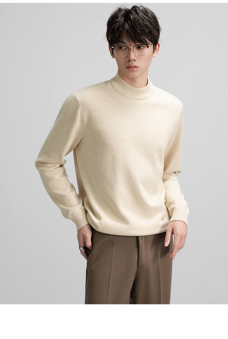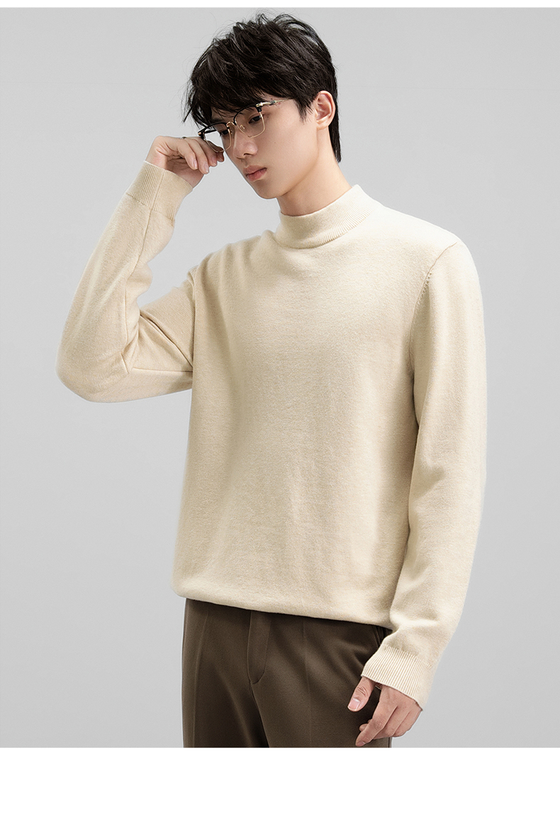 OWNR杏色中領修身內搭毛衣男2025秋季新款保暖半高領含羊毛打底衫