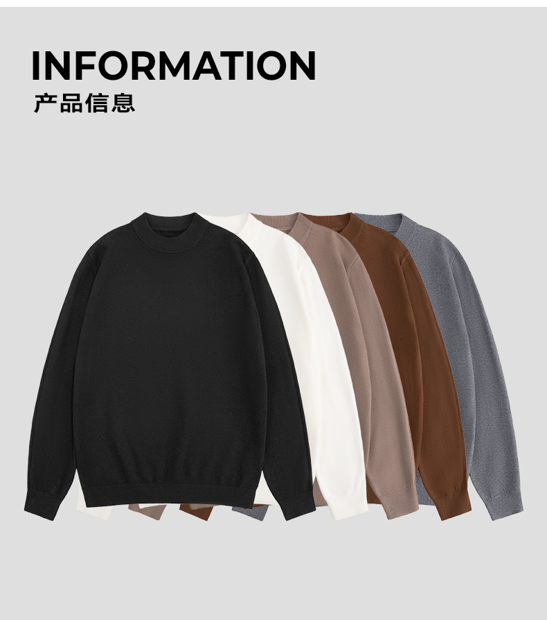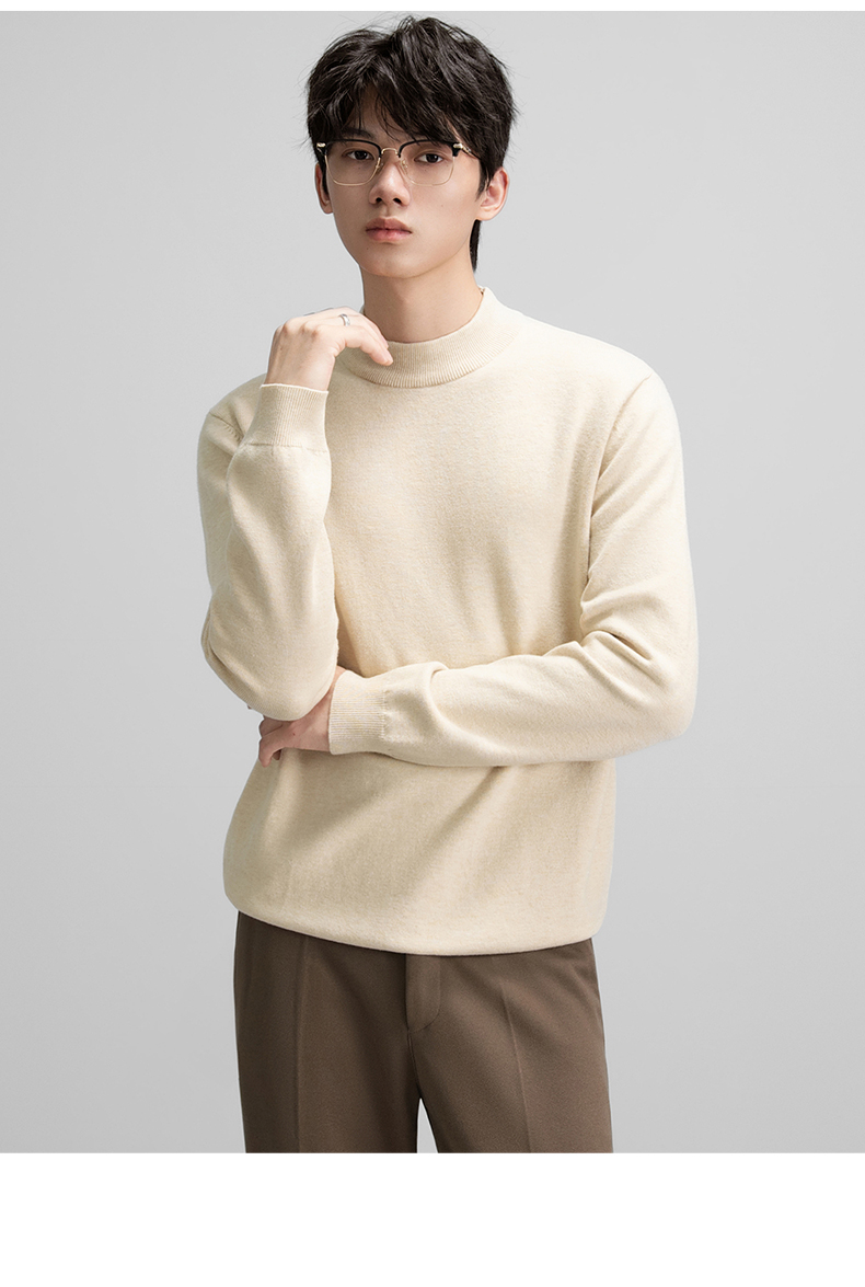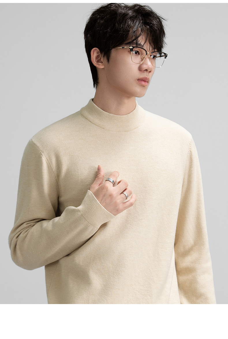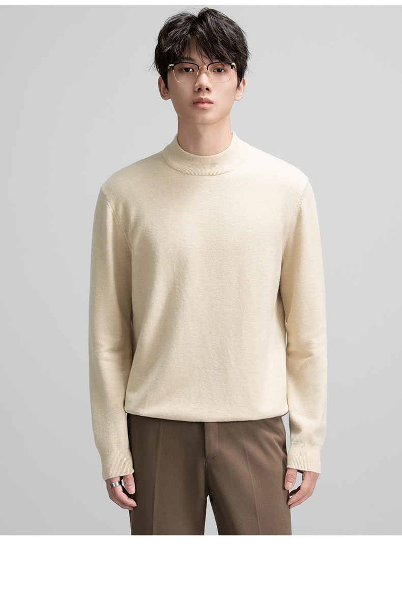 OWNR杏色中領修身內搭毛衣男2025秋季新款保暖半高領含羊毛打底衫