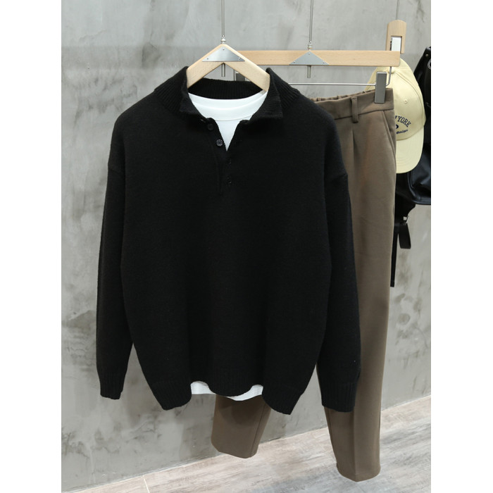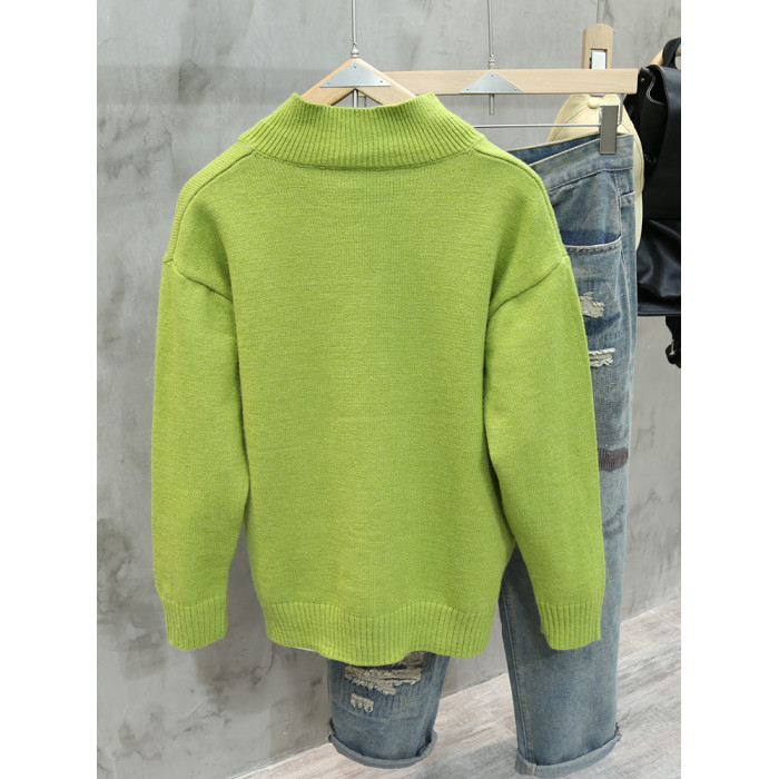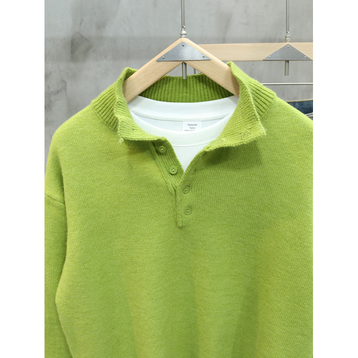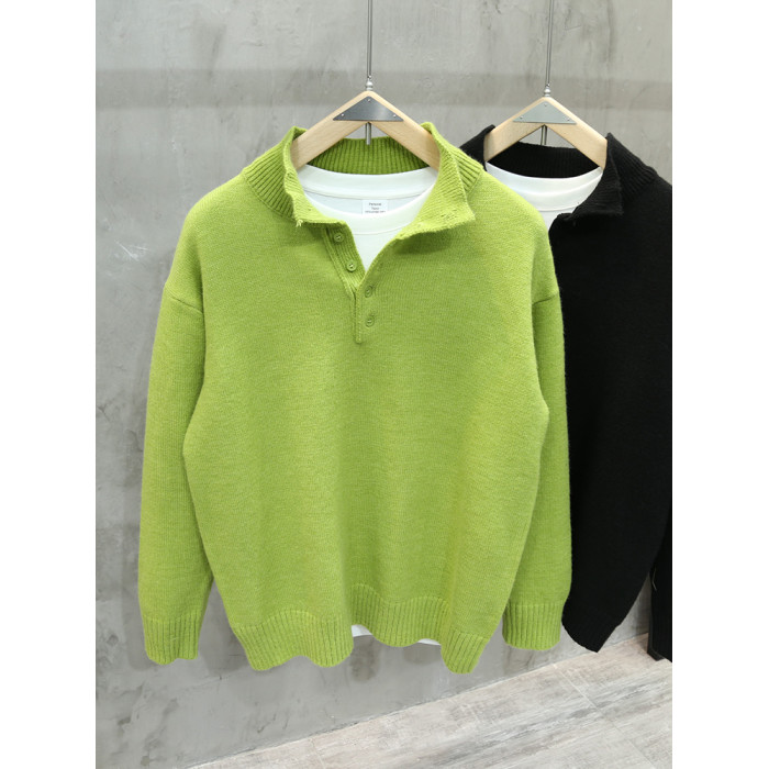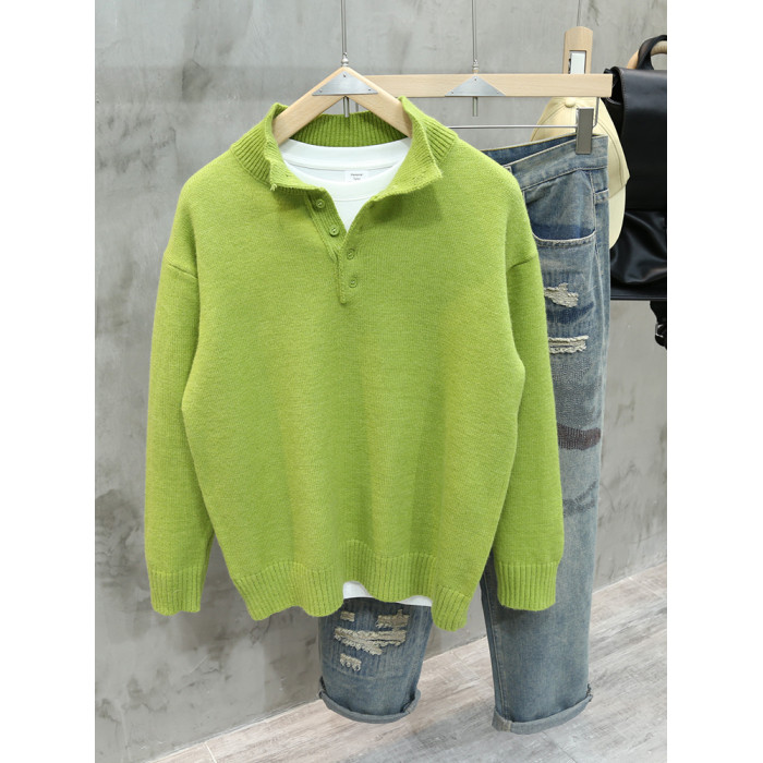 秋冬款復古美式亨利領綠色毛衣男裝韓版潮流寬松慵懶風針織衫外套