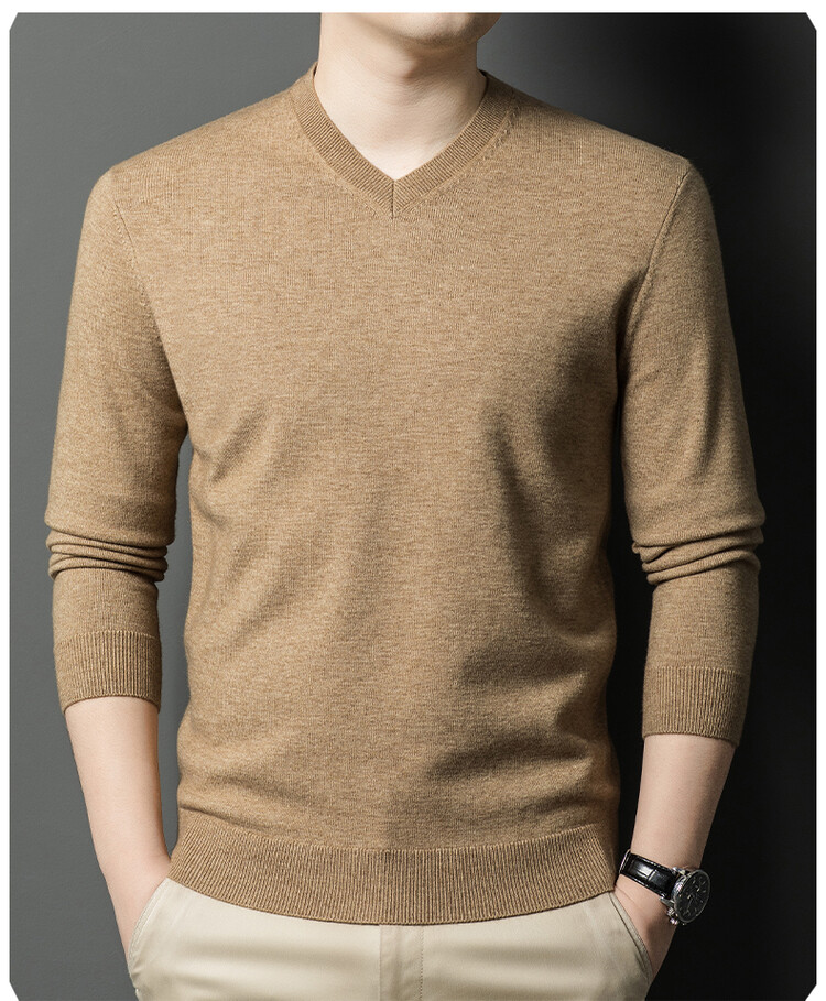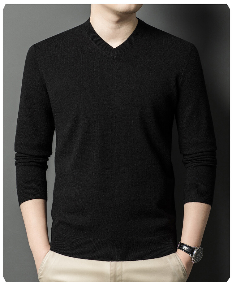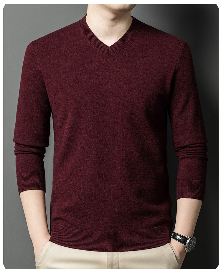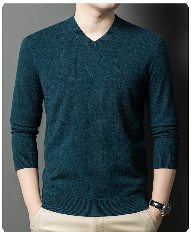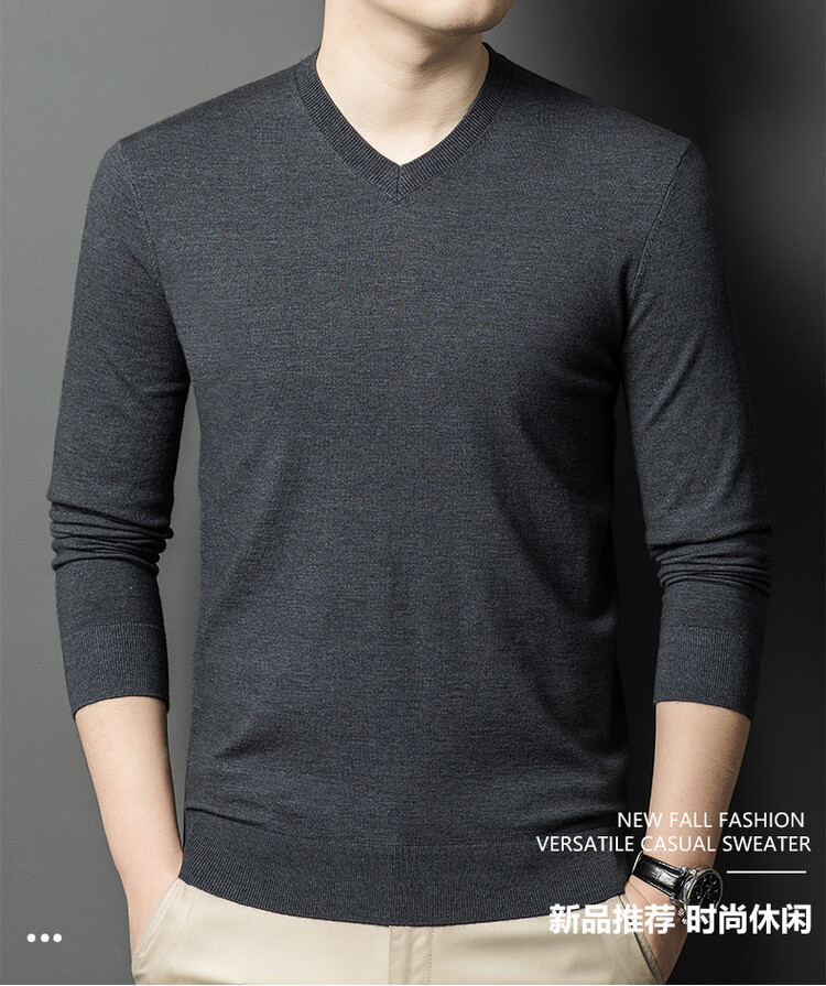 春秋季薄款羊毛衫男士V領薄款打底衫秋冬季中年毛衣雞心領羊毛衫