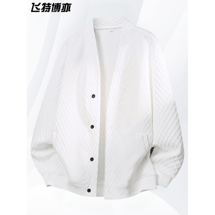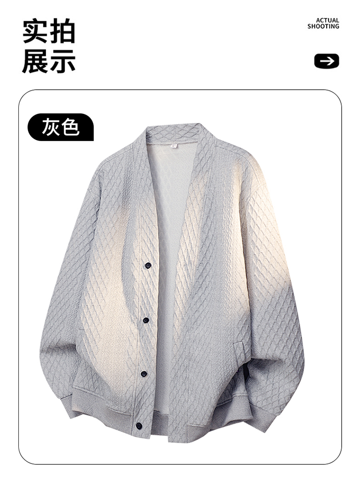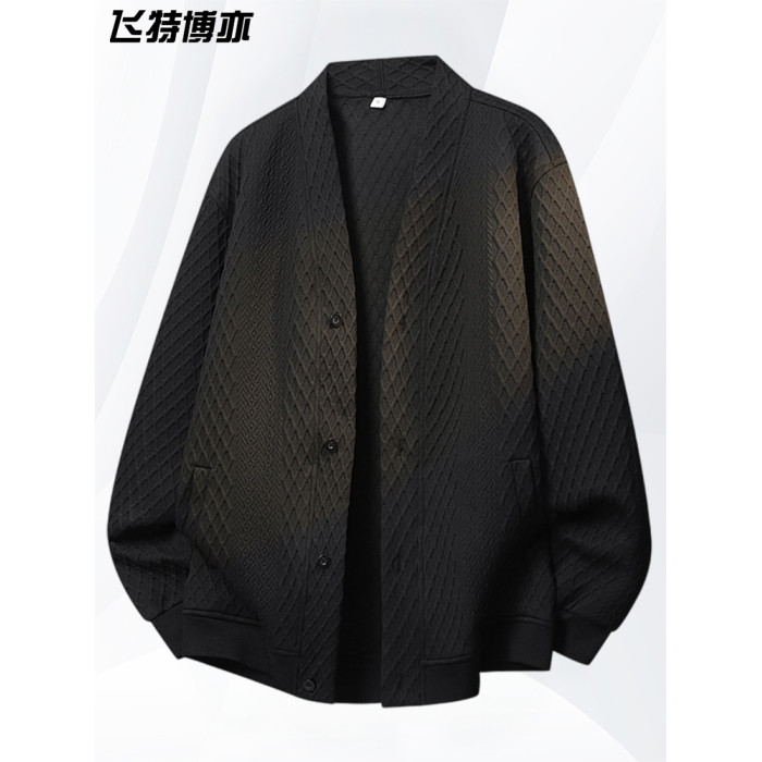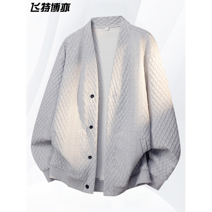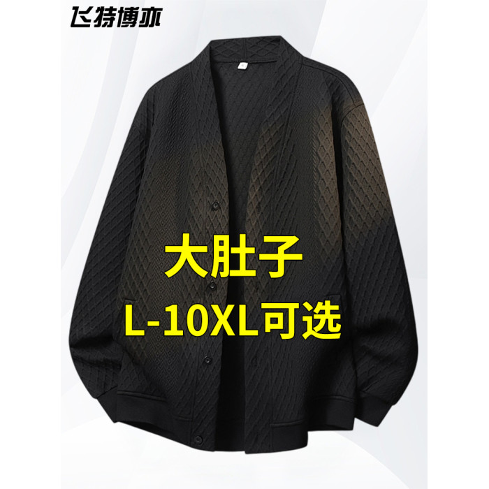 大碼提花開衫針織衫男士外套春秋季潮流休閒衛衣加肥加大胖子男裝