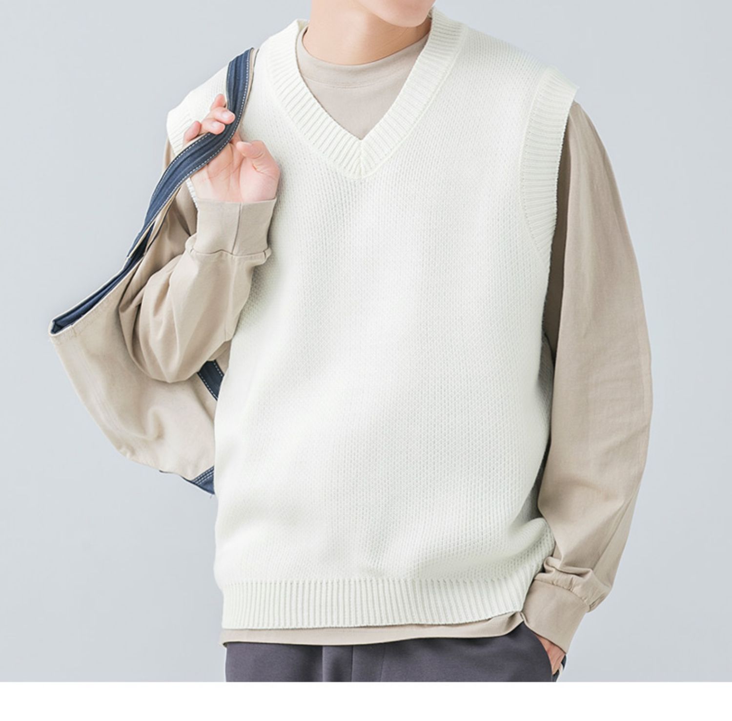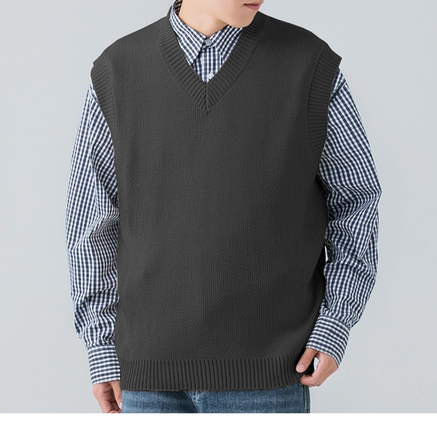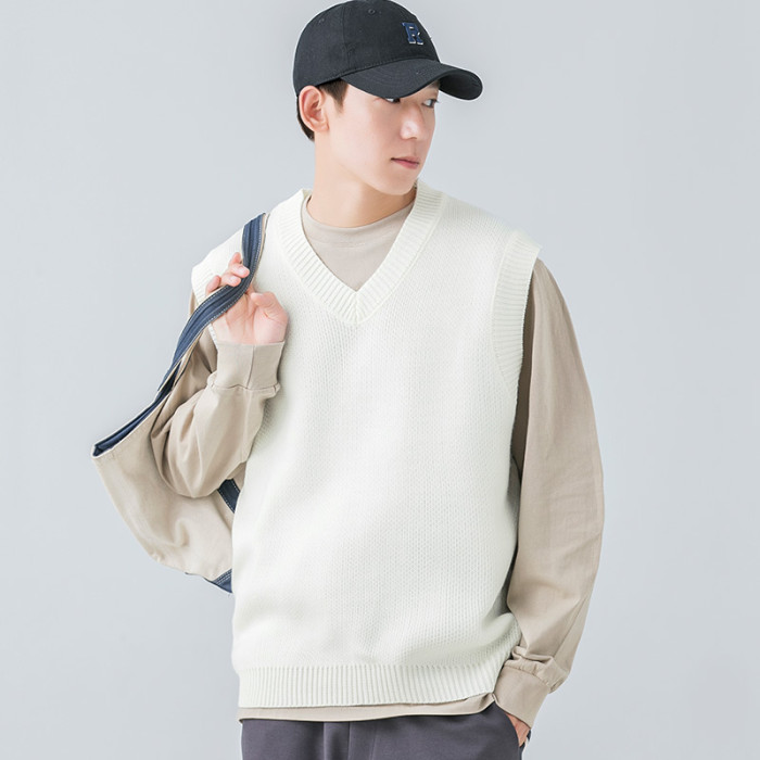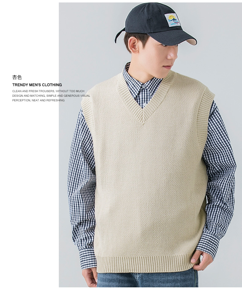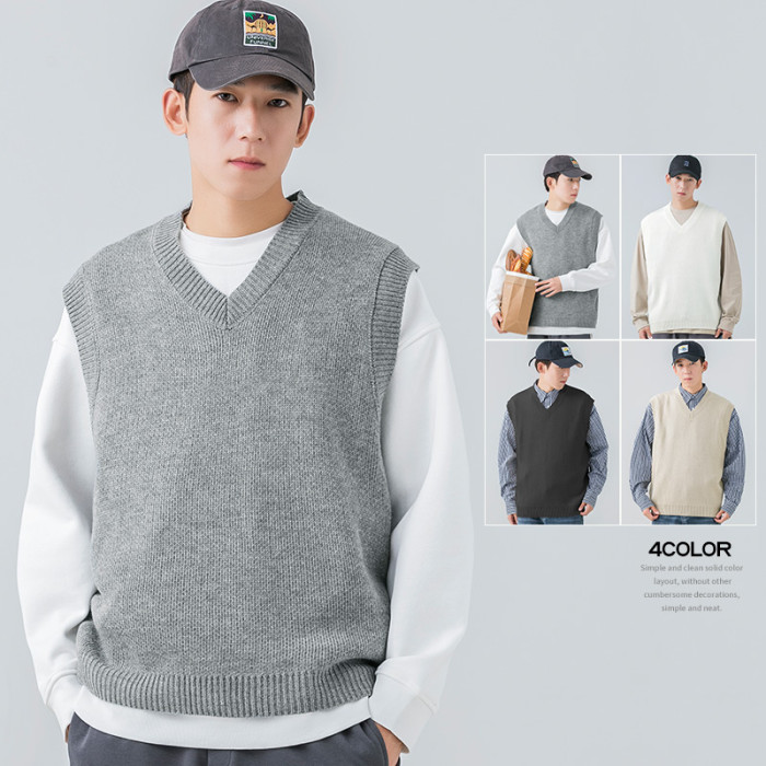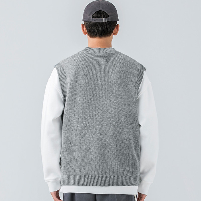 WOODSOON自髮熱毛衣馬甲秋冬季休閒純色針織衫寬松背心男內搭上衣